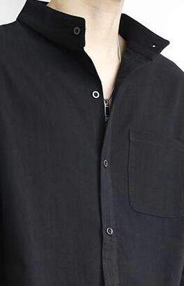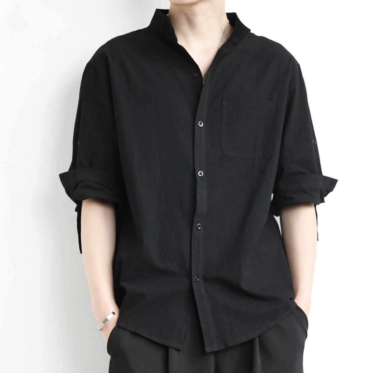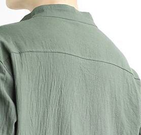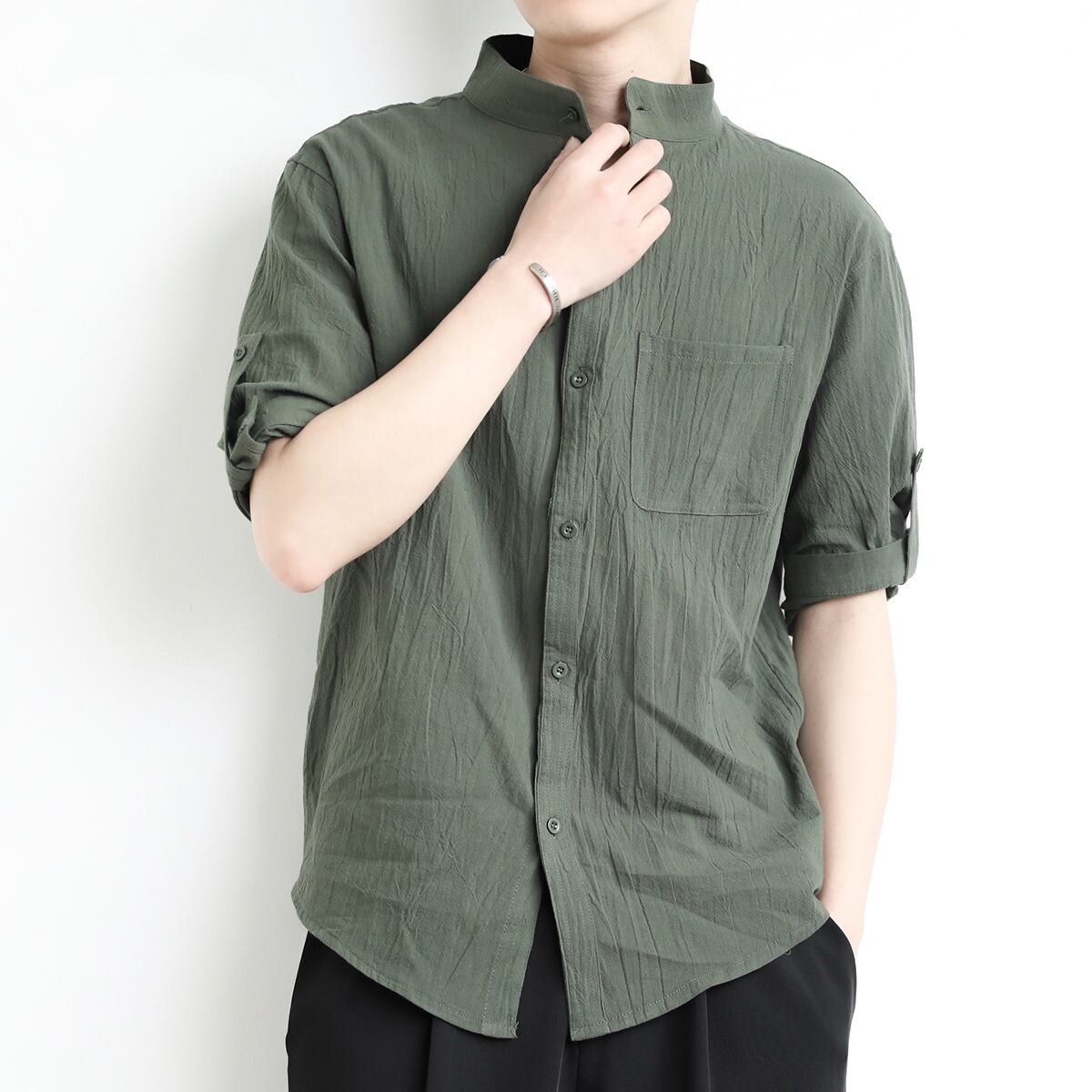 Stand collar three quarter sleeve retro linen shirt ( 3color )