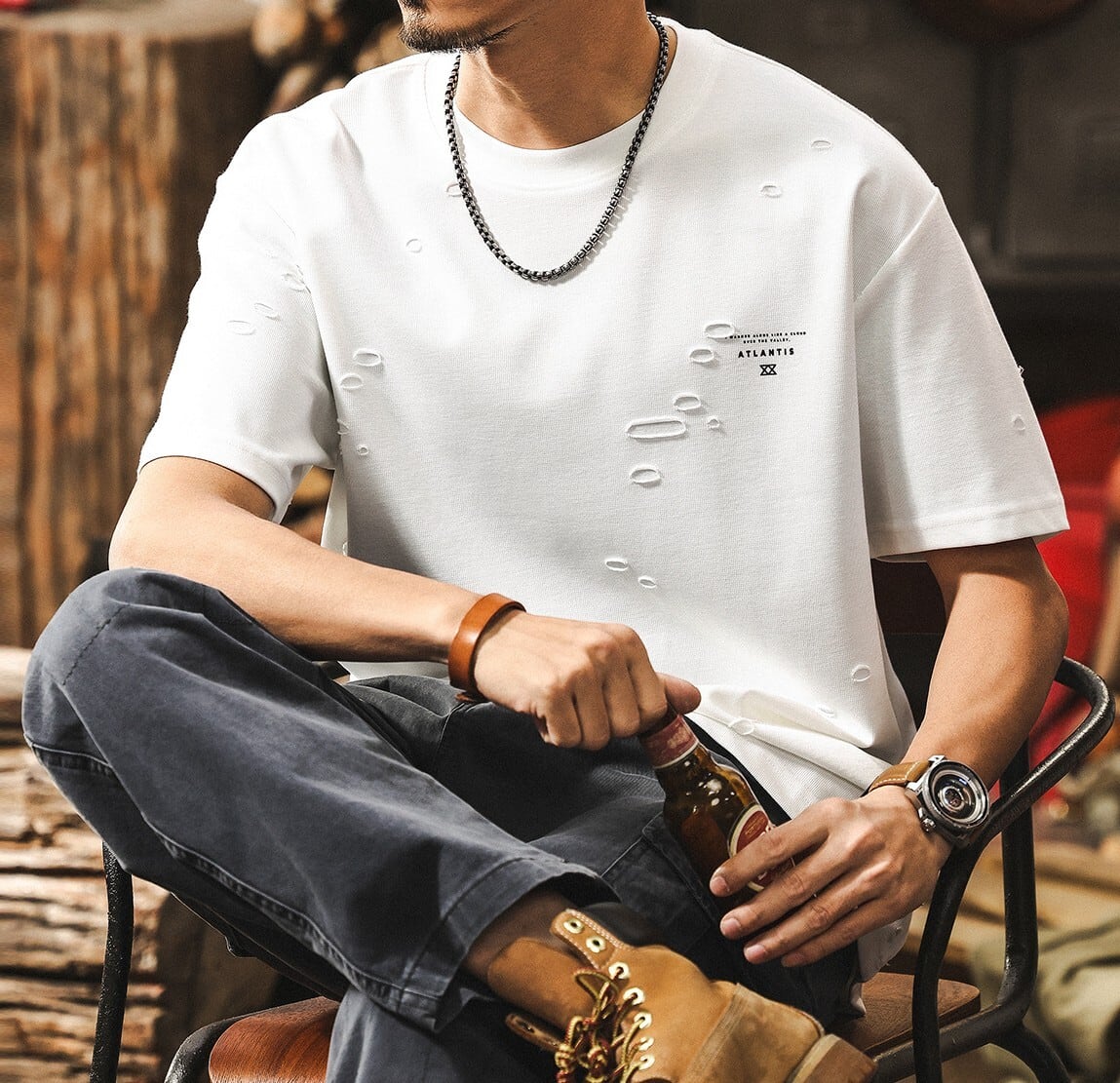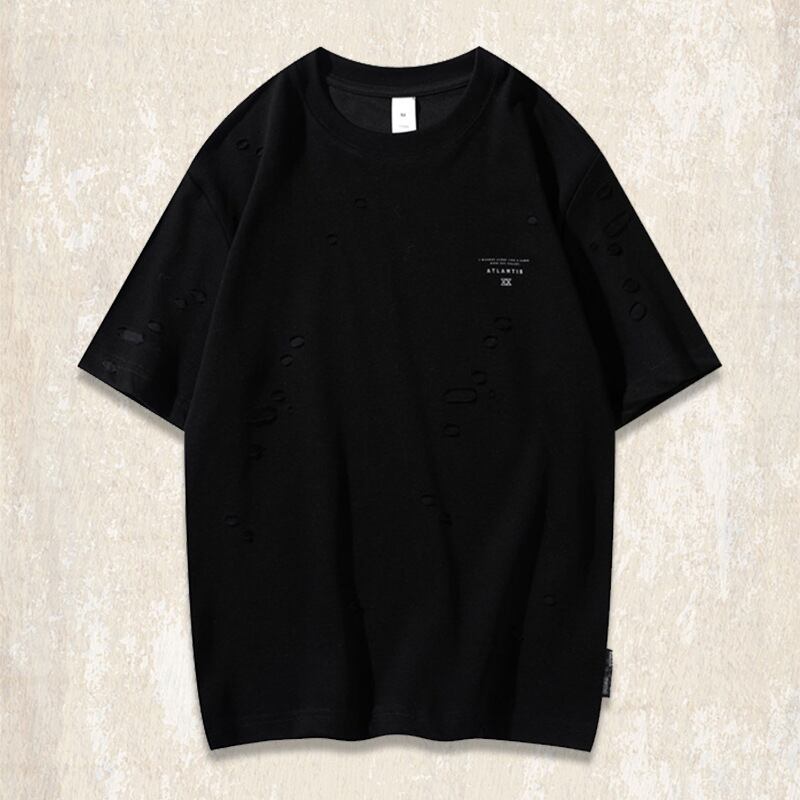 Chest logo retro damage t shirt ( 2color )