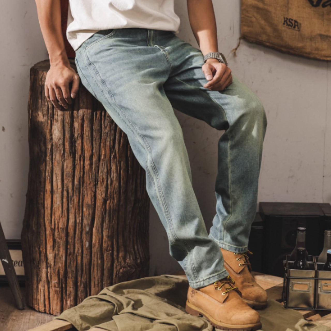 Vintage wash tapered denim ( 2color )