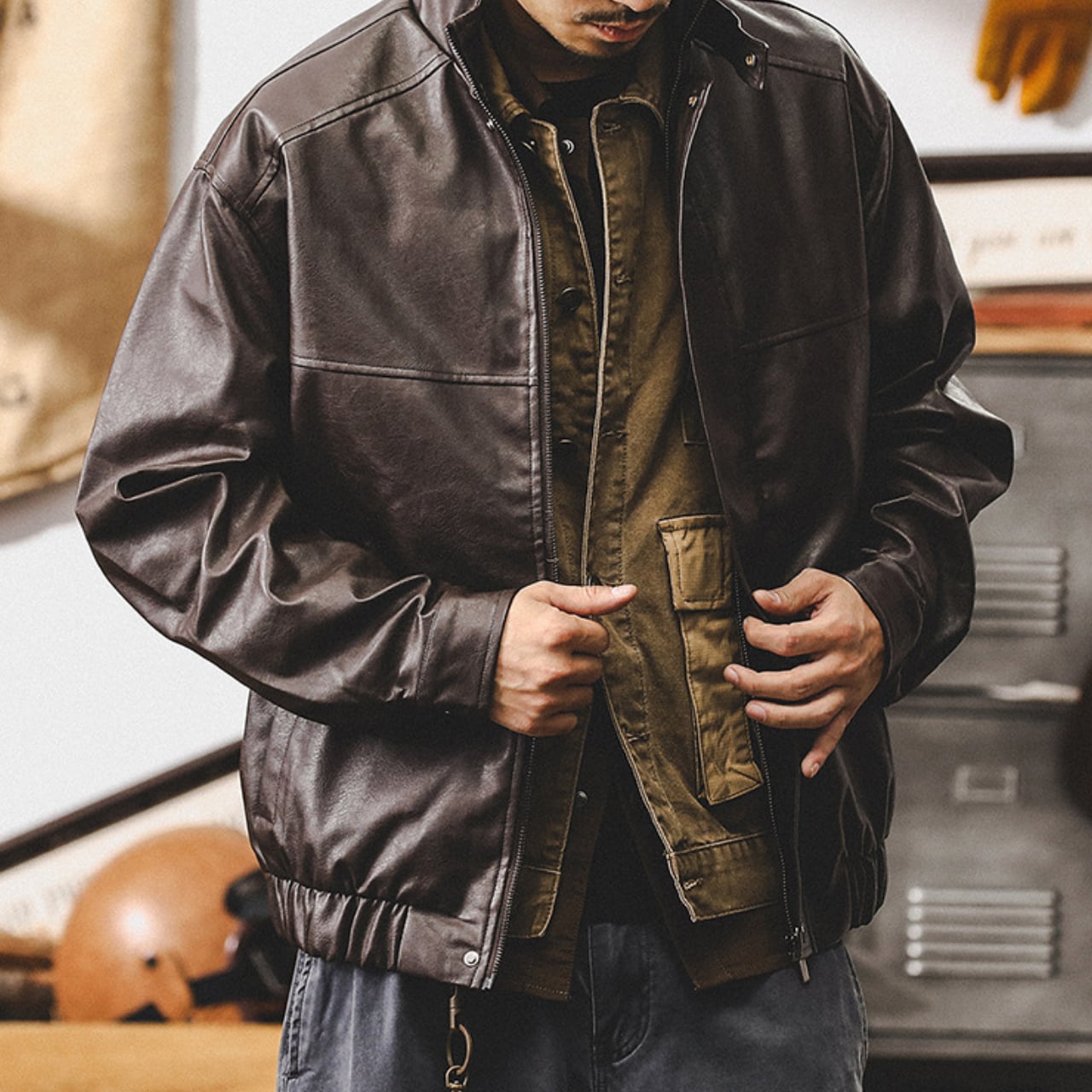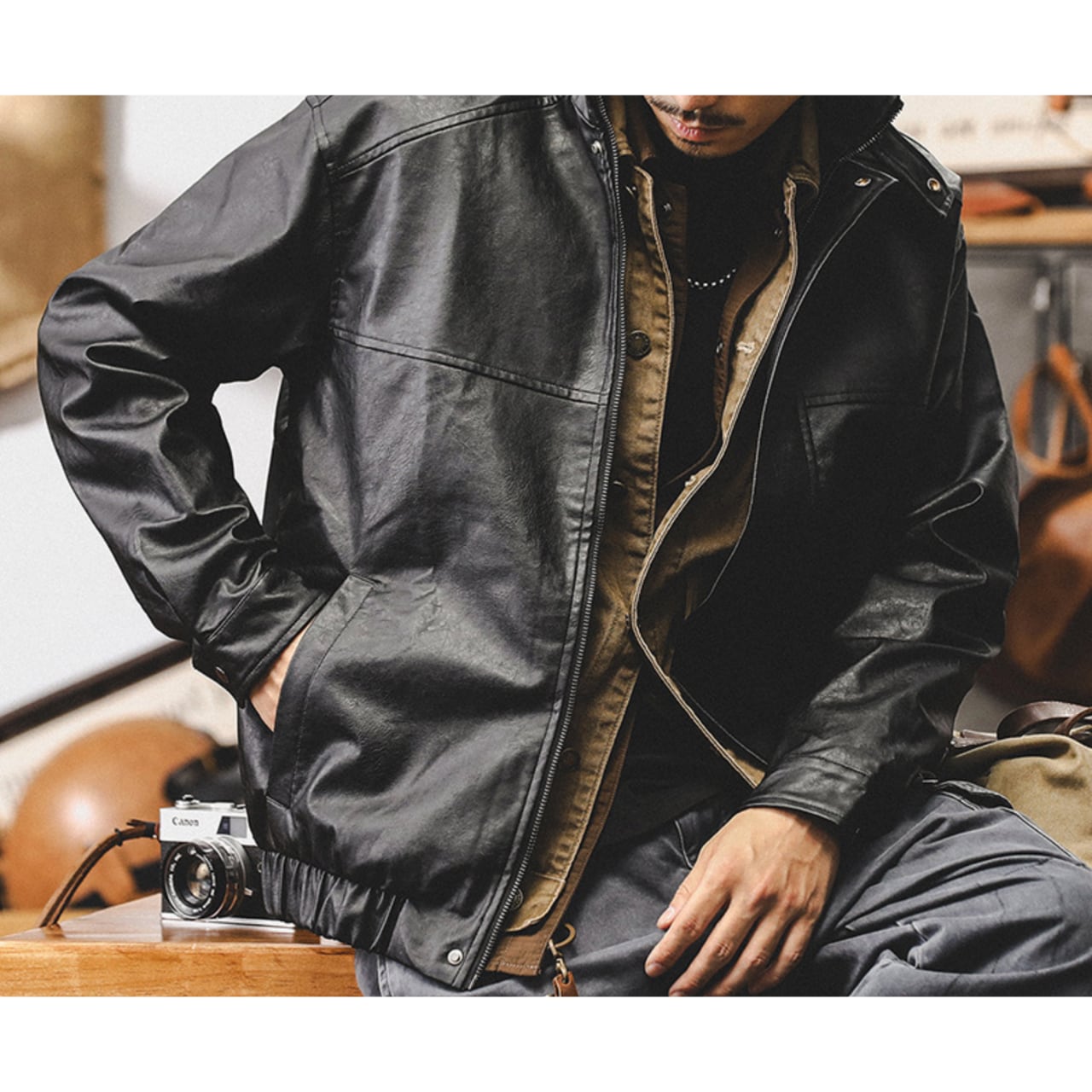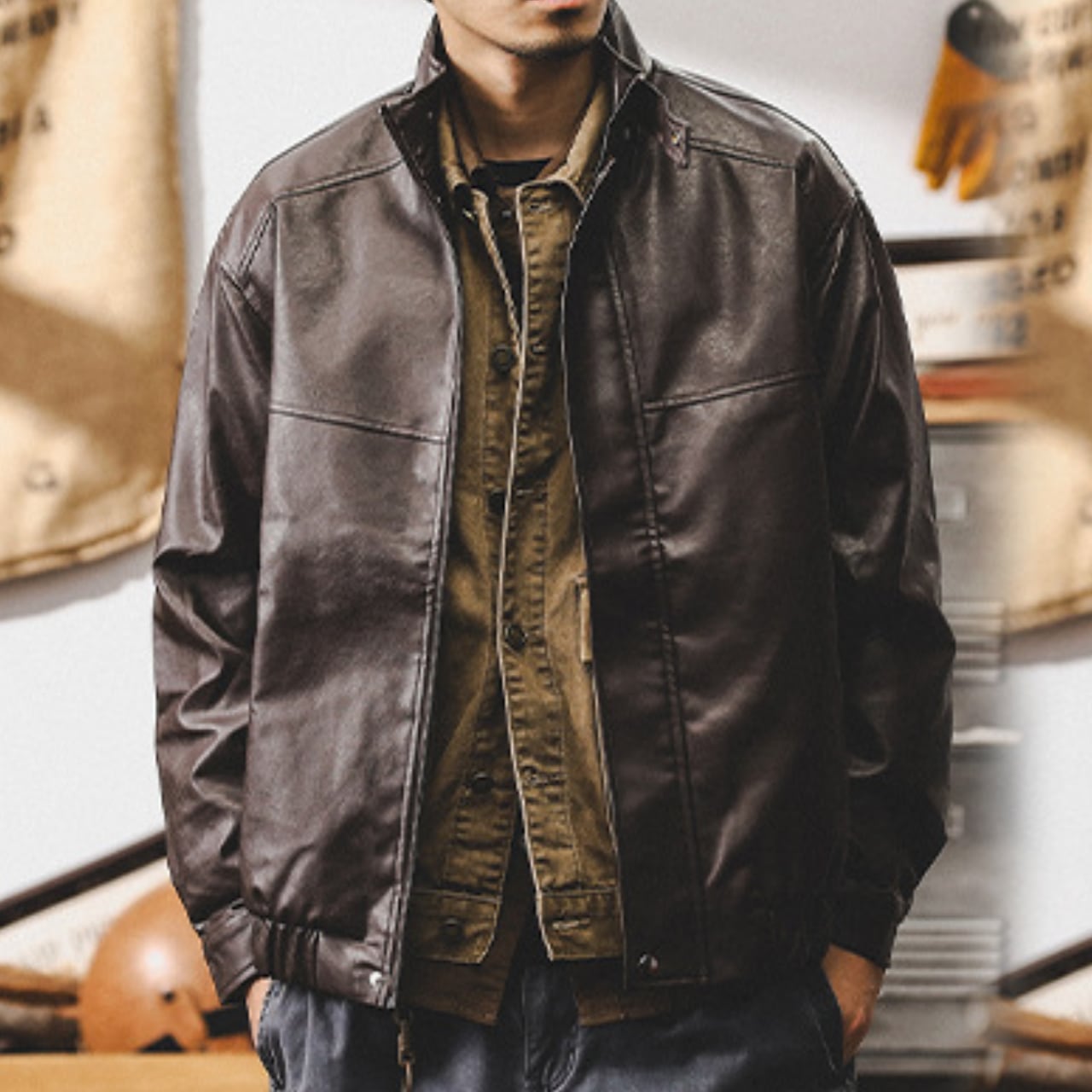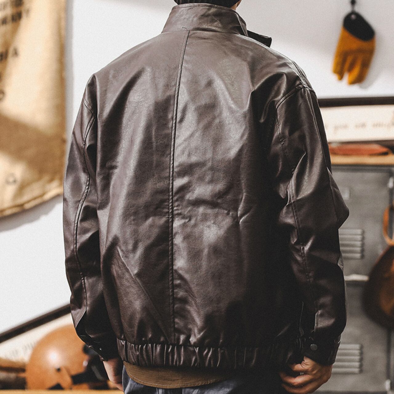 Stand collar retro pu leather jacket ( 2color )