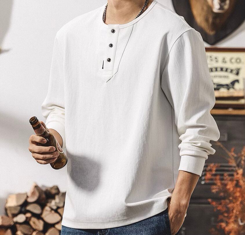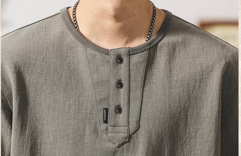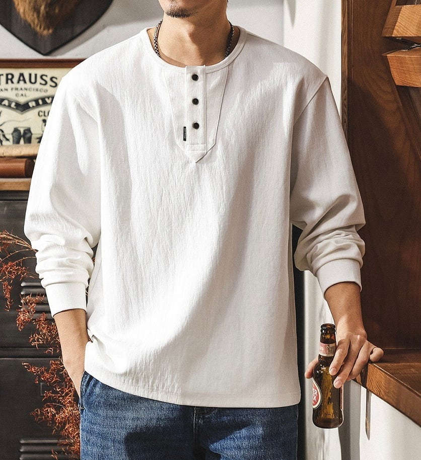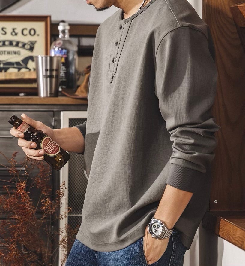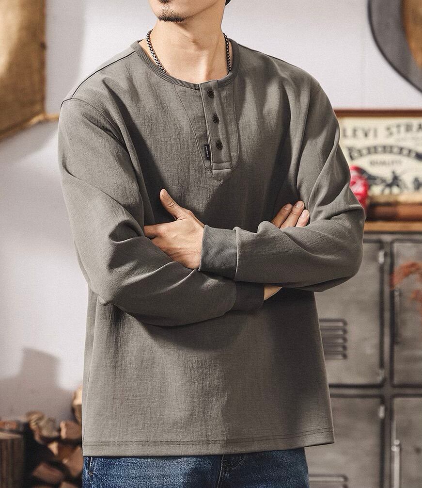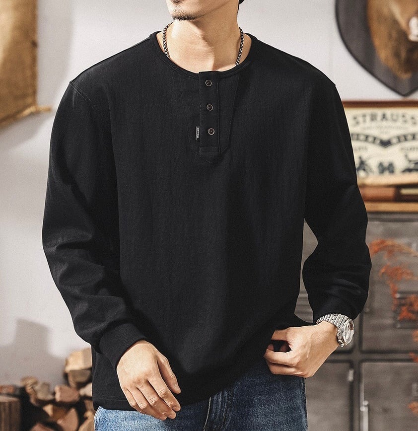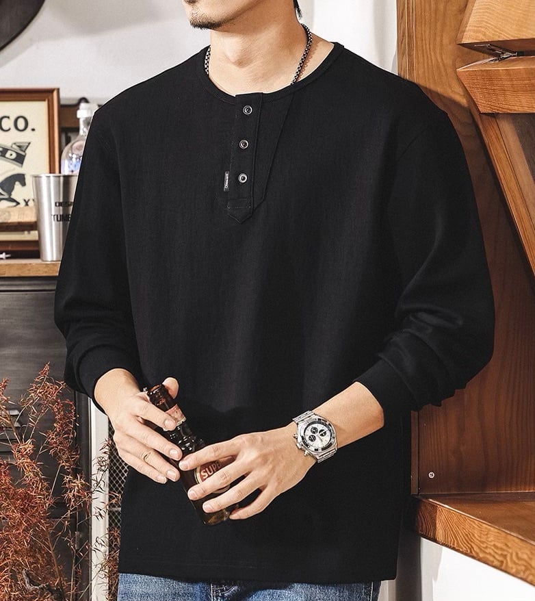 Henley neck heavy long t shirt ( 3color )