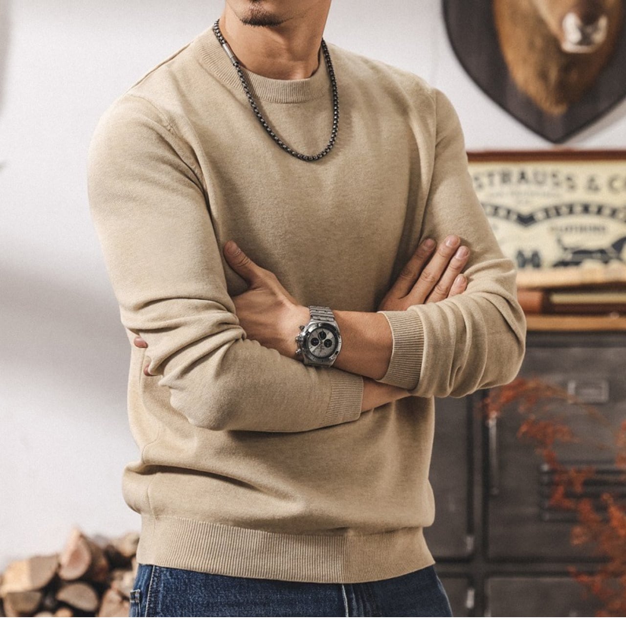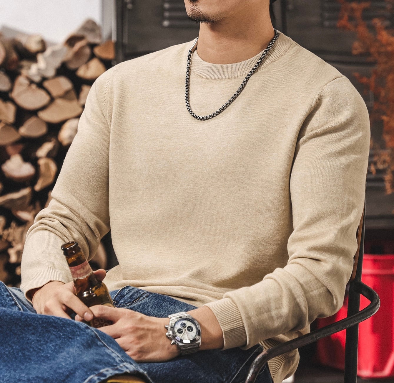 Round neck retro slim knit ( 4color )
