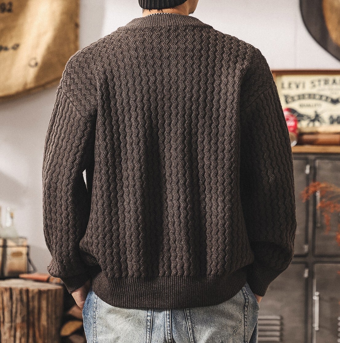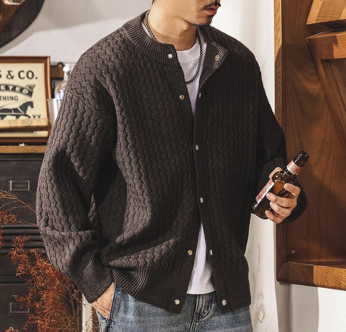 Single breast vintage cable knit cardigan ( 3color )