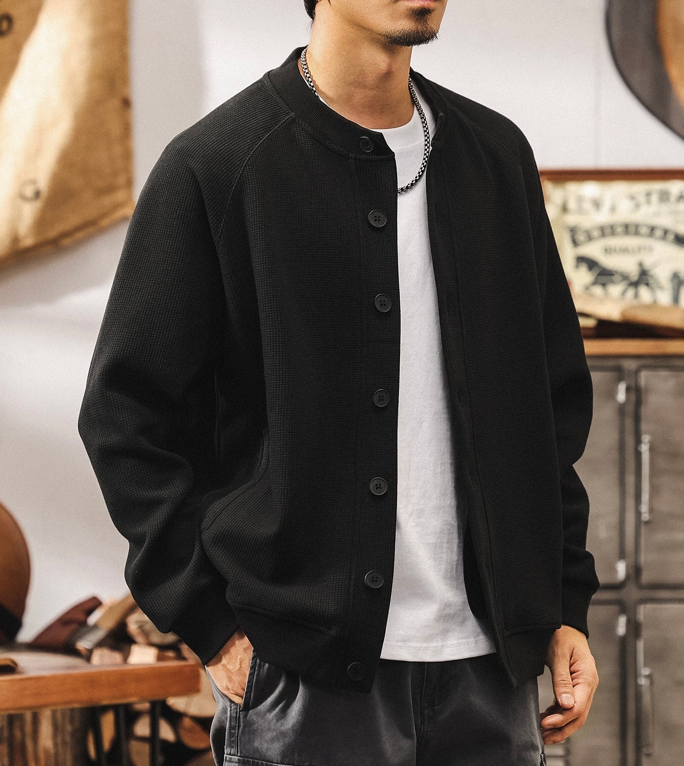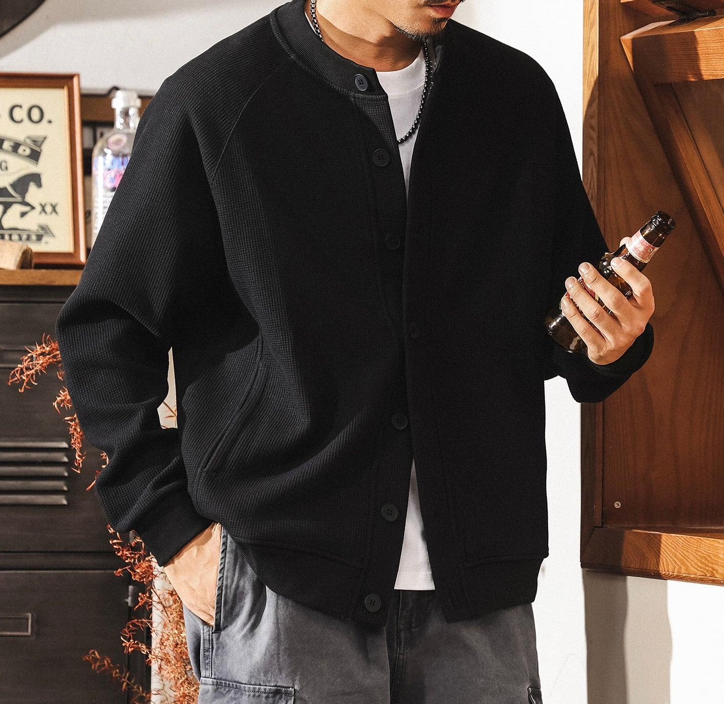 Single breast waffle sweat cardigan ( 3color )