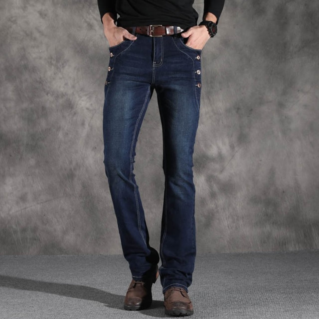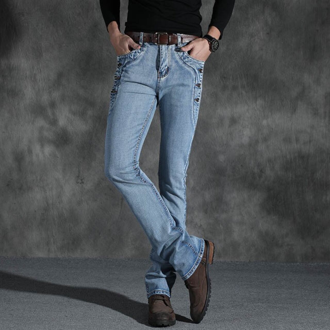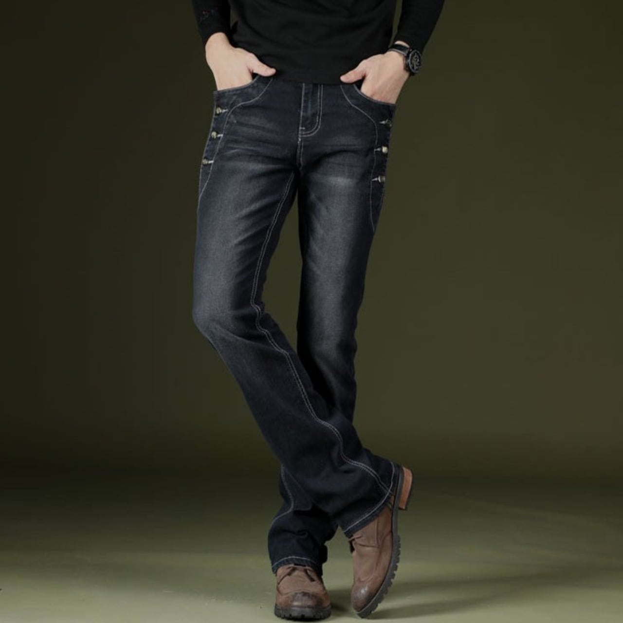 Side button vintage straight flare pants ( 4color )