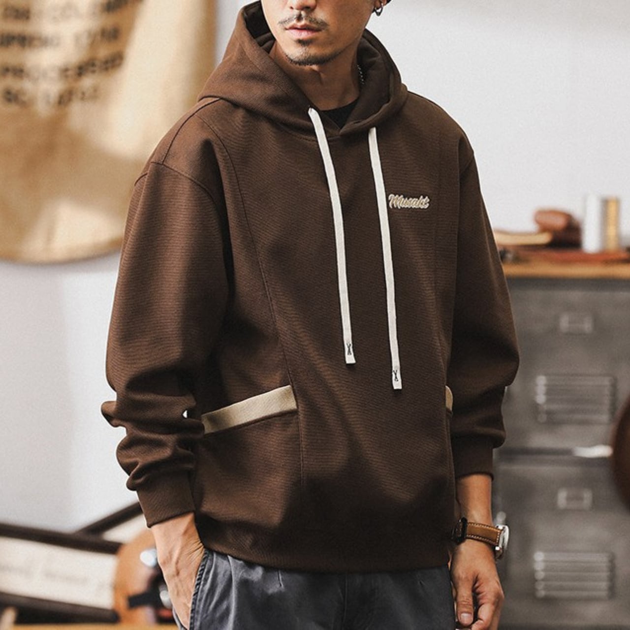 Chest logo retro hoodie ( 3color )