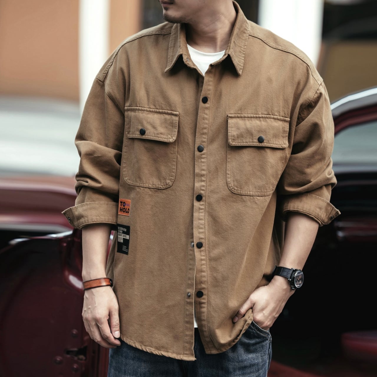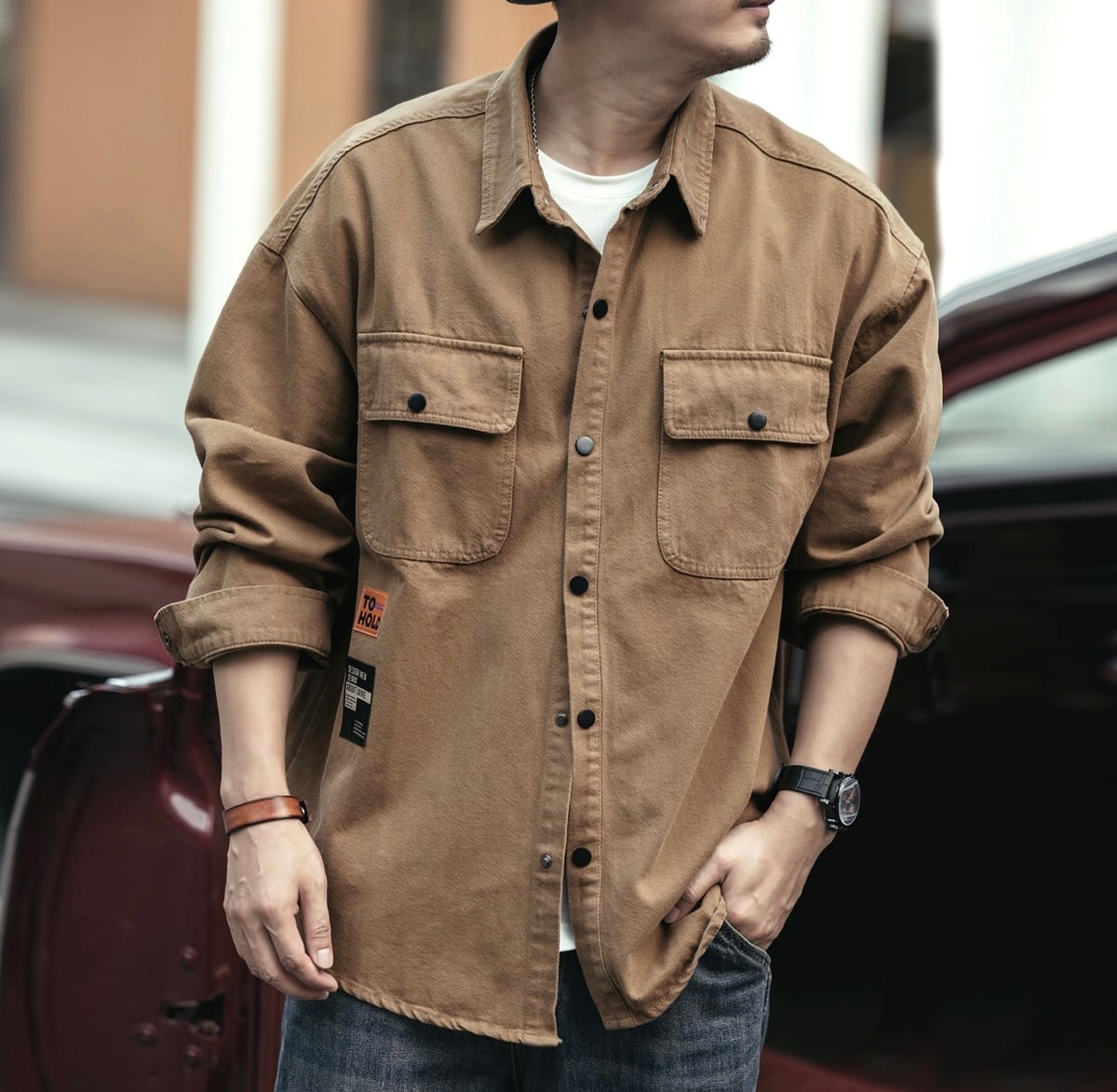 Double pocket retro cargo shirt ( 3color )