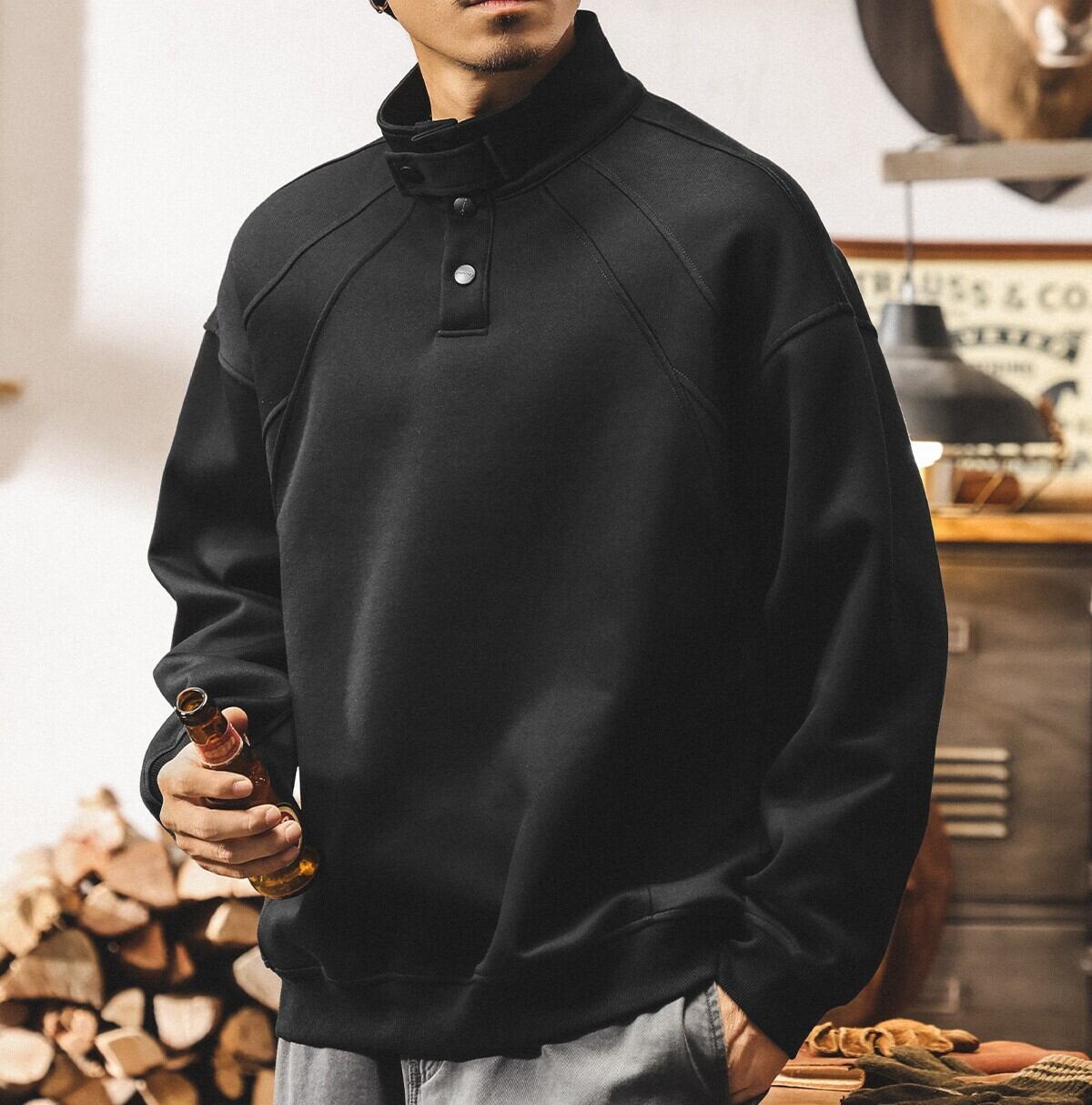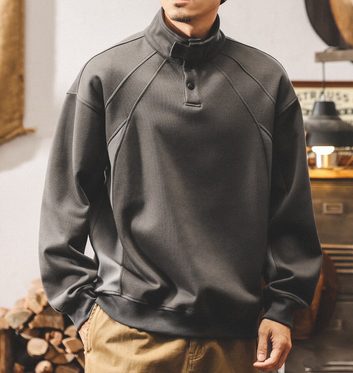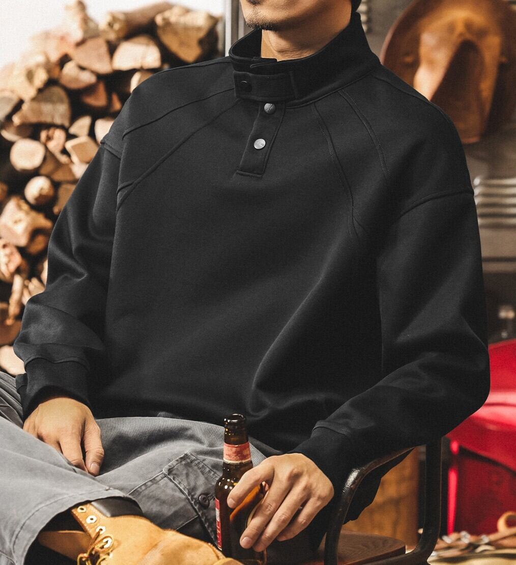 Henley high neck heavy sweat ( 3color )
