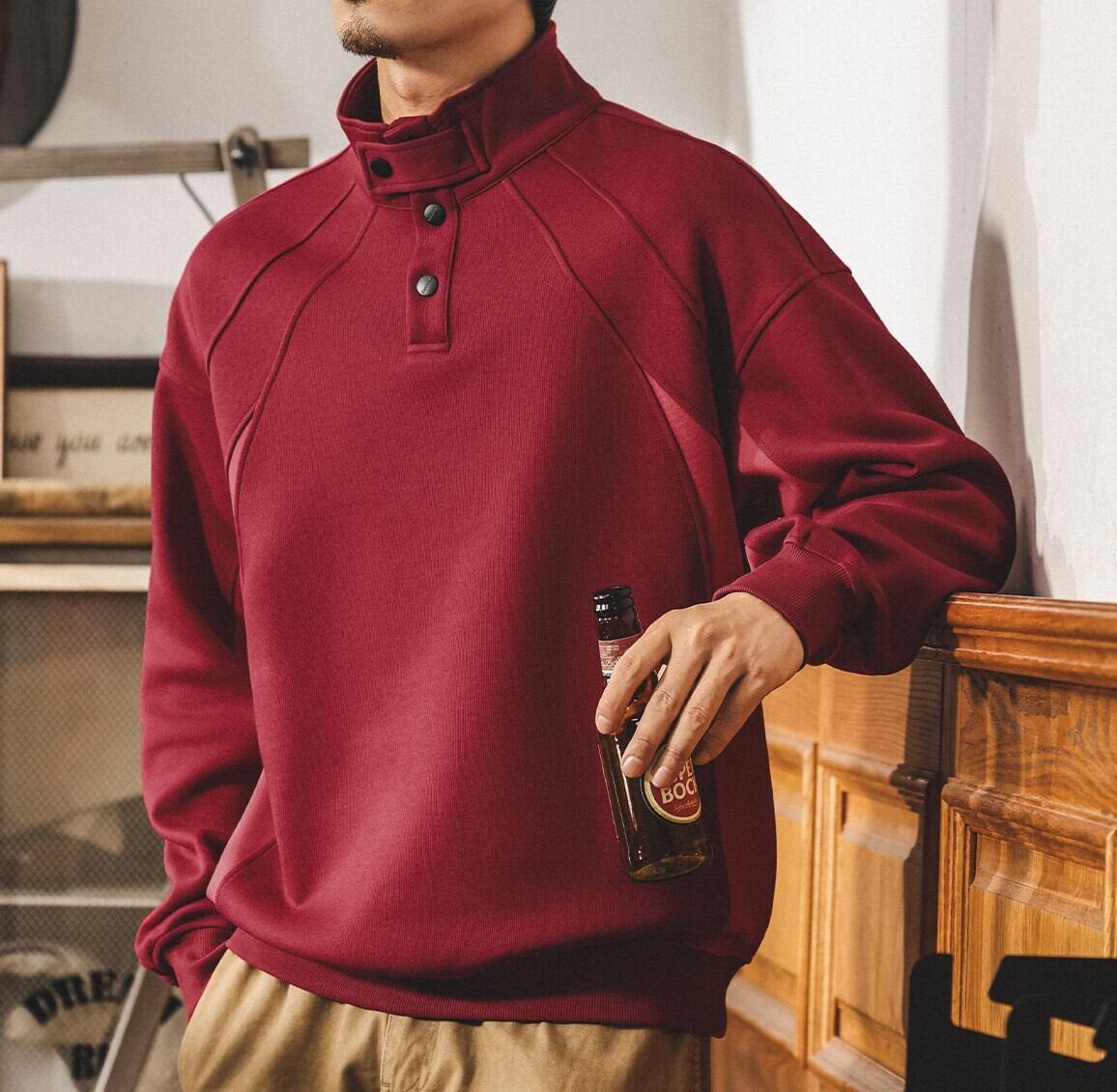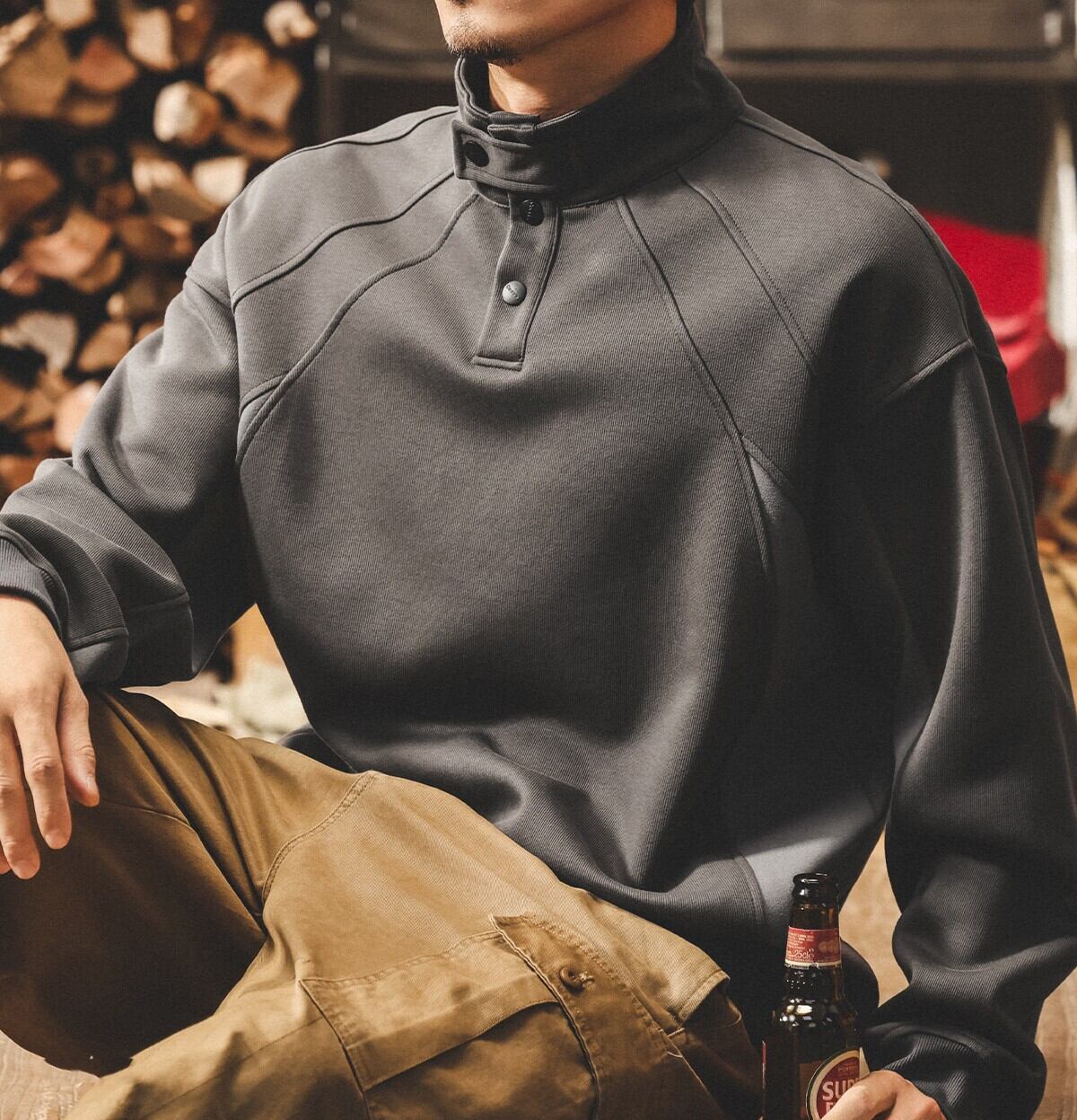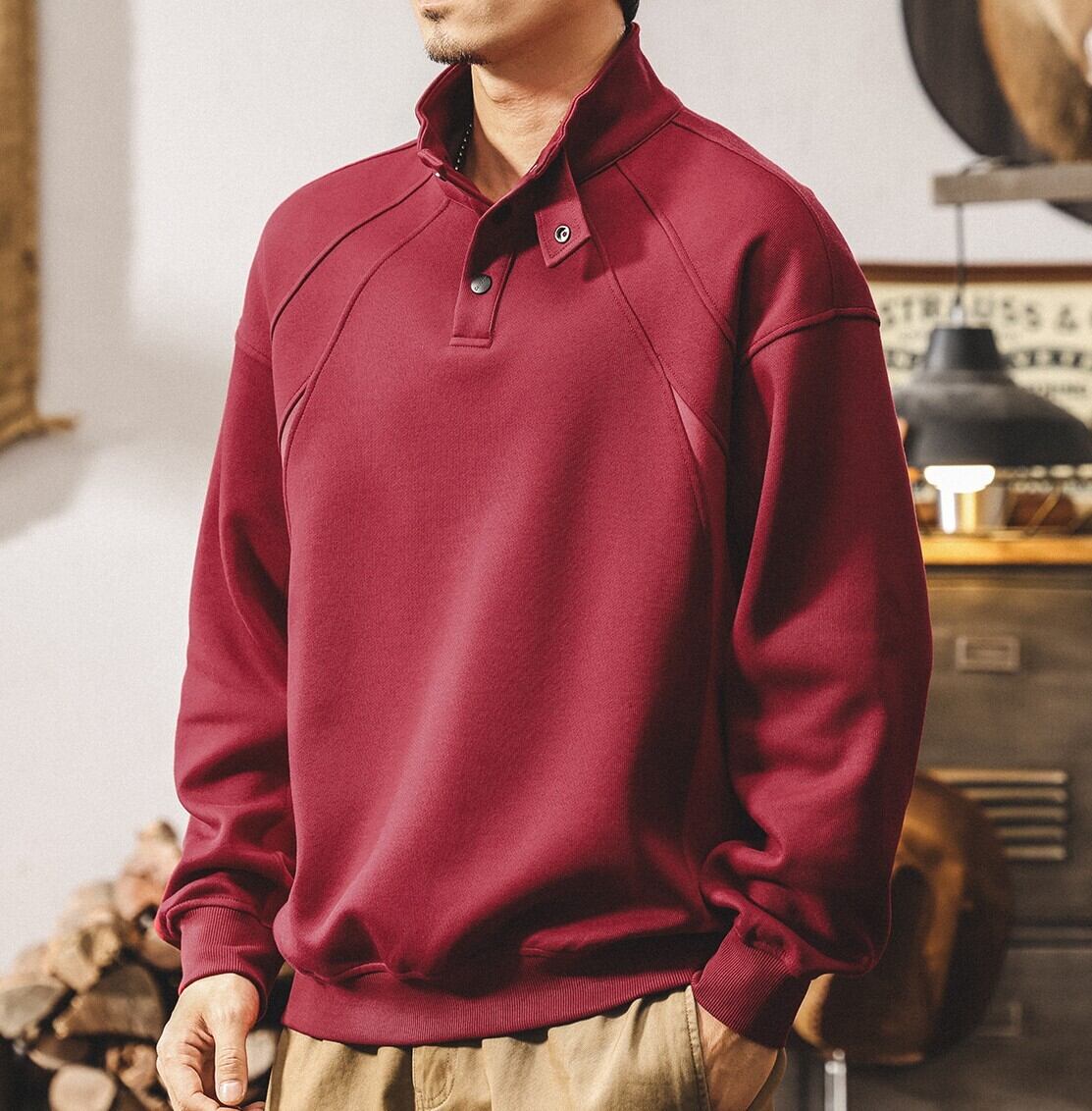 Henley high neck heavy sweat ( 3color )