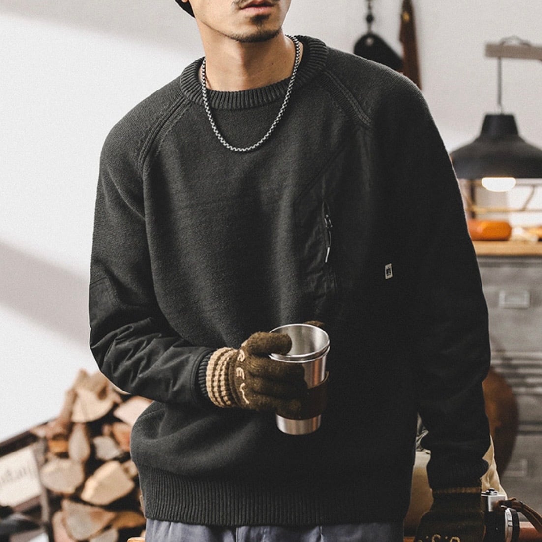 Chest zip vintage knit ( 3color )