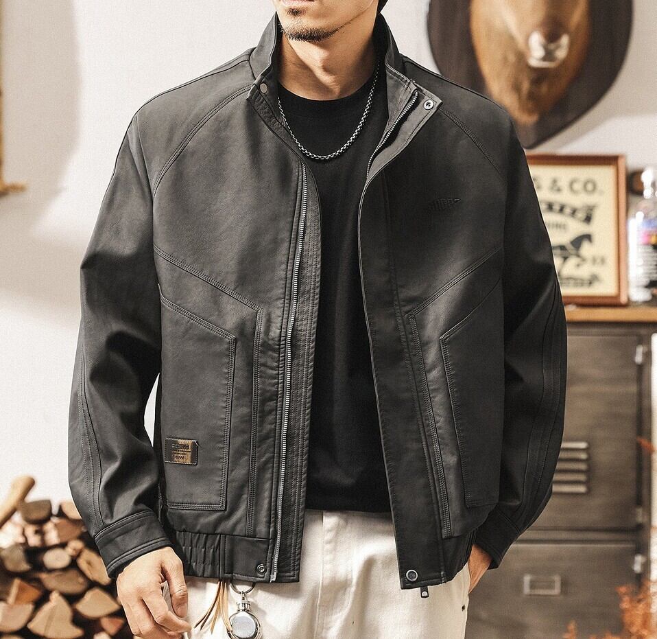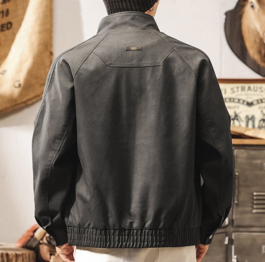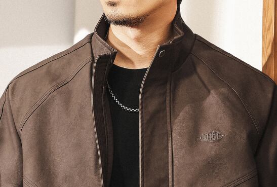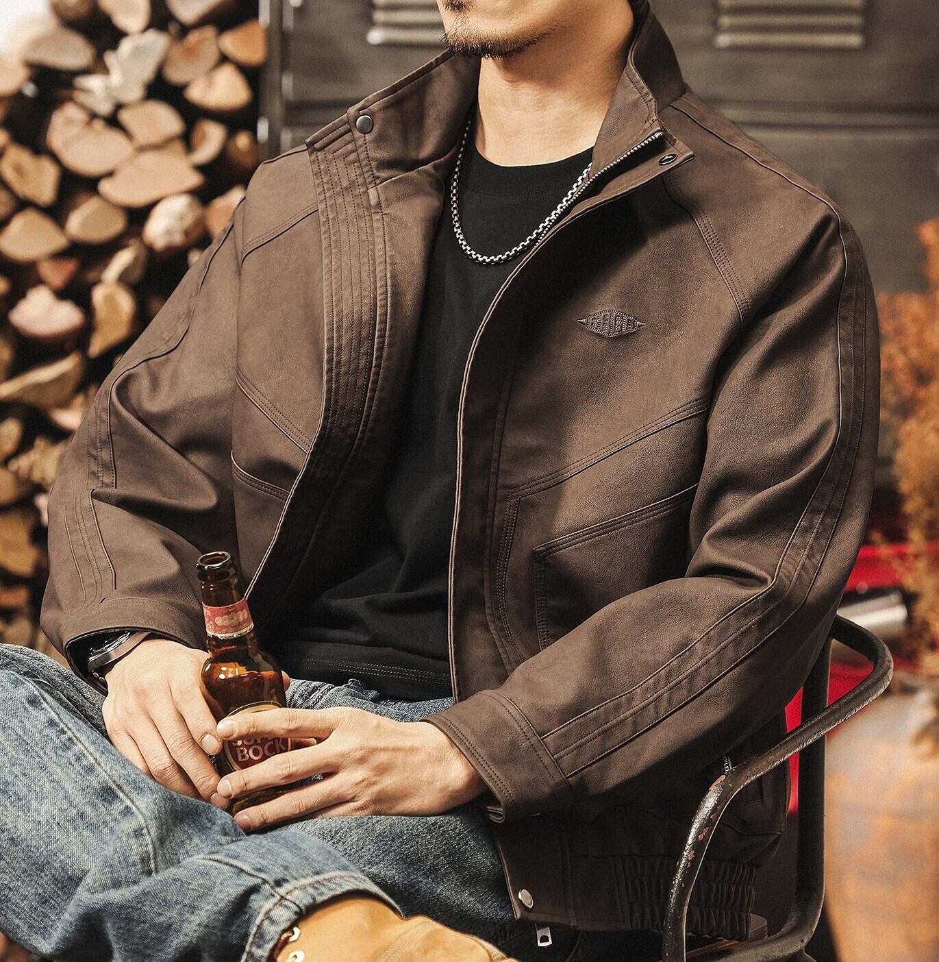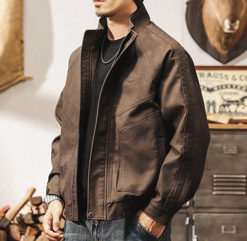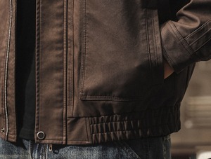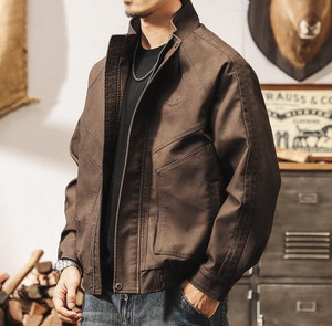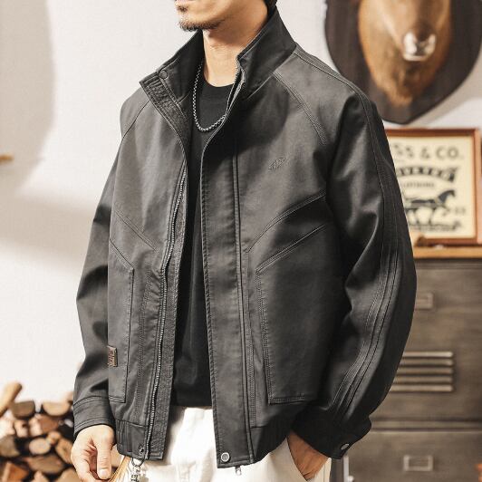 Stand collar retro leather jacket ( 2color )