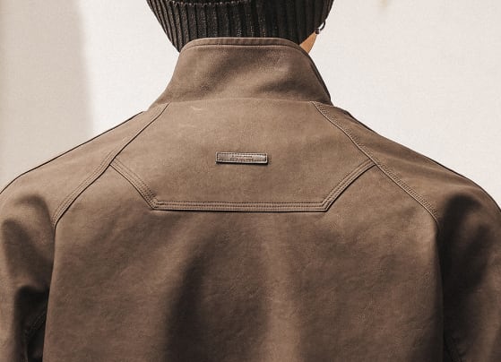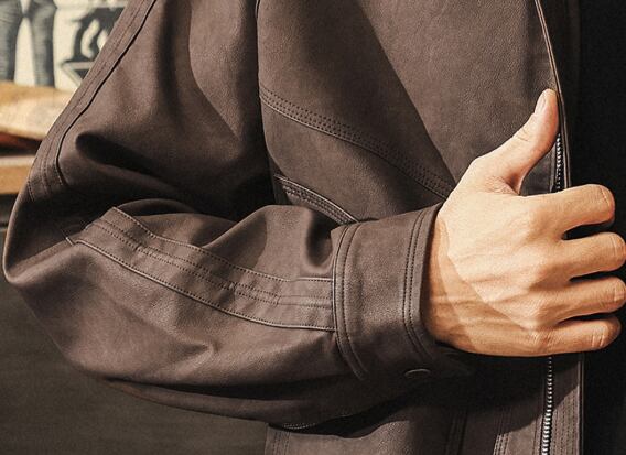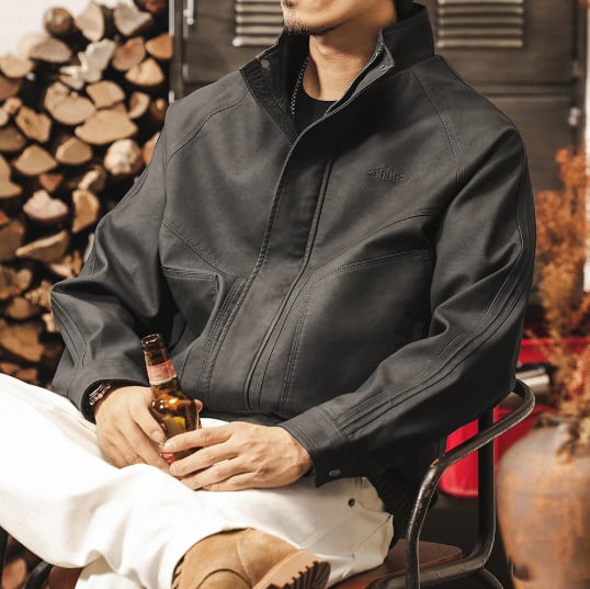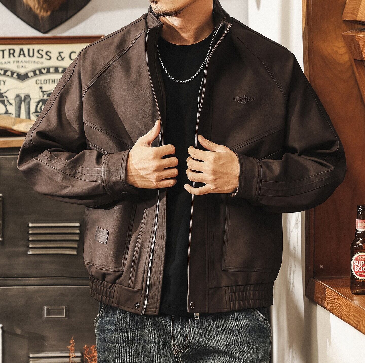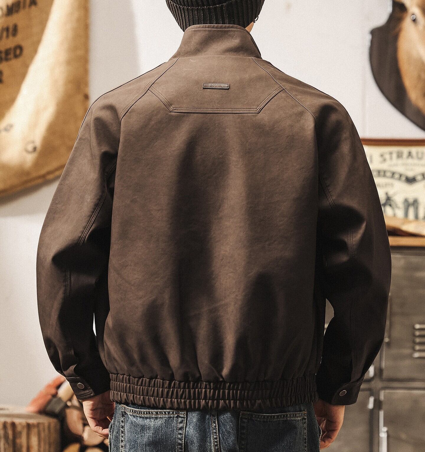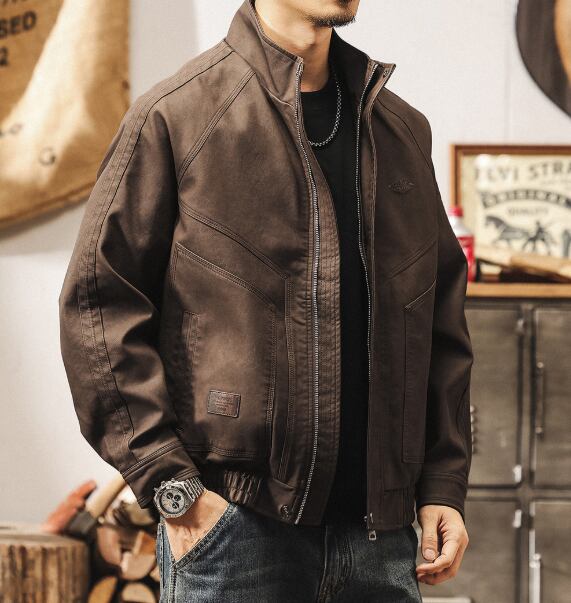 Stand collar retro leather jacket ( 2color )