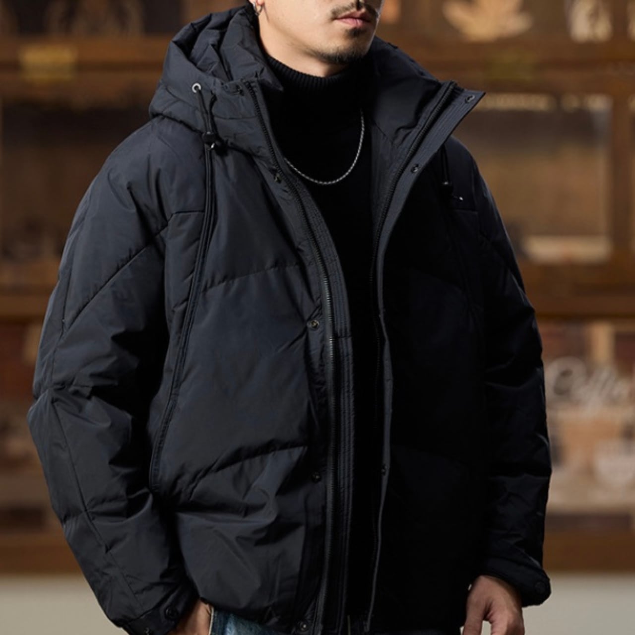 Stand collar hood short down jacket ( 3color )