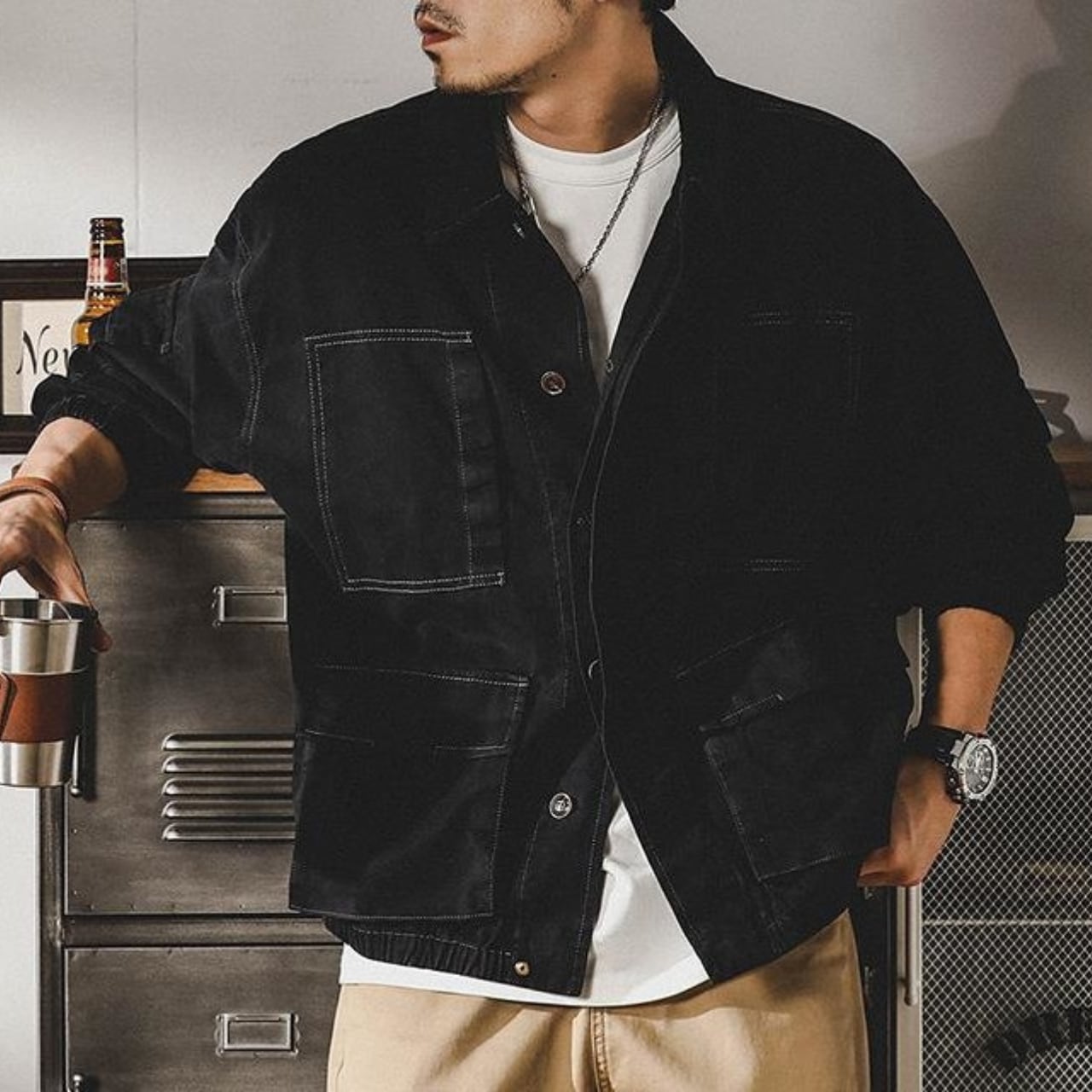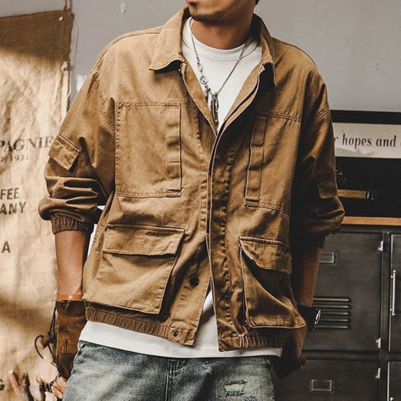 Double pocket vintage cargo jacket ( 2color )