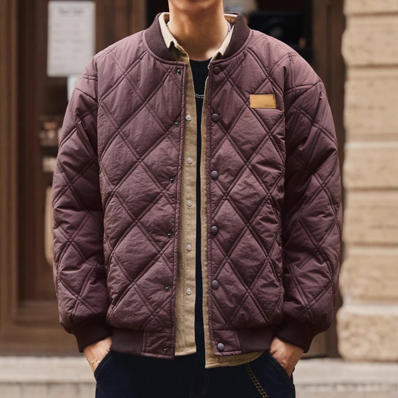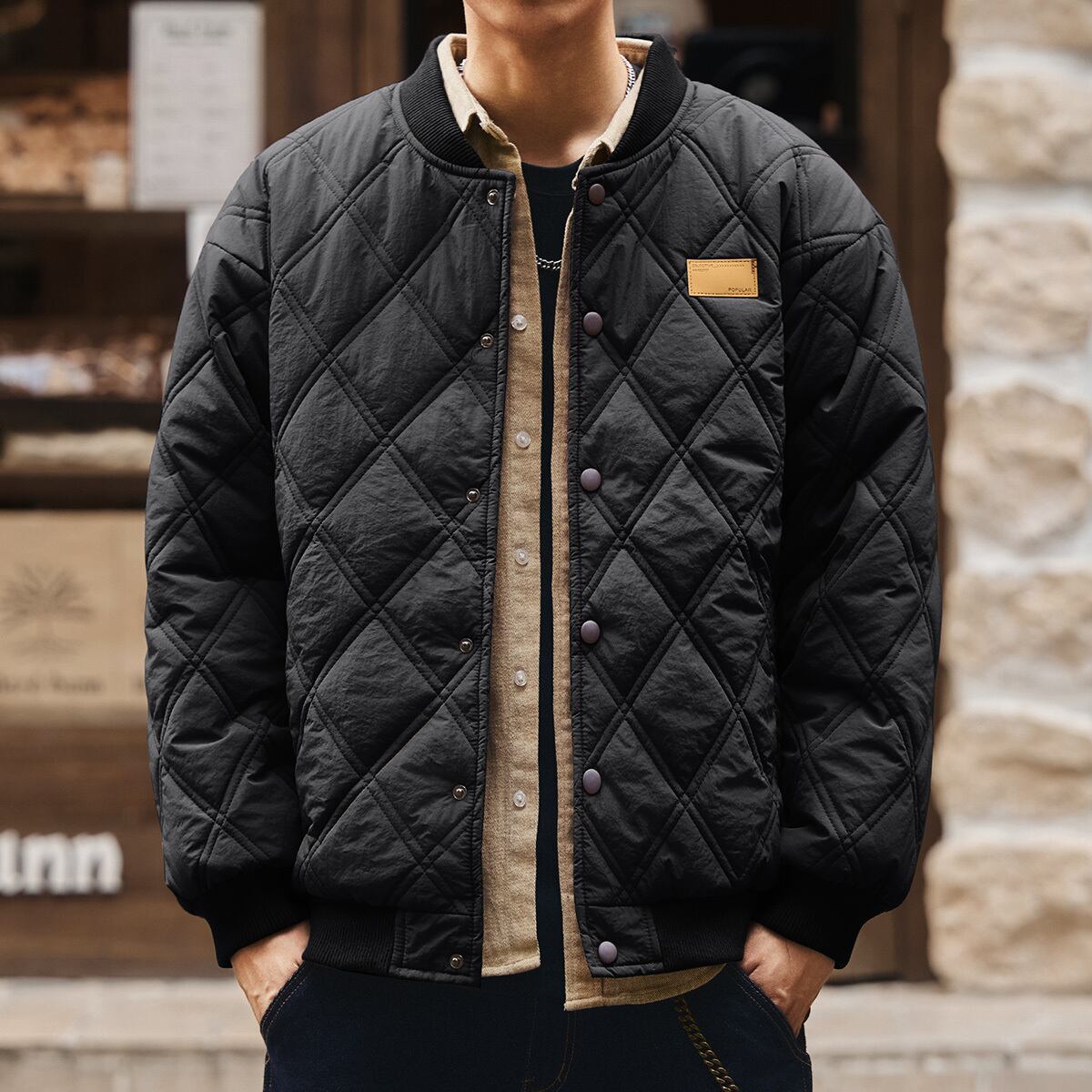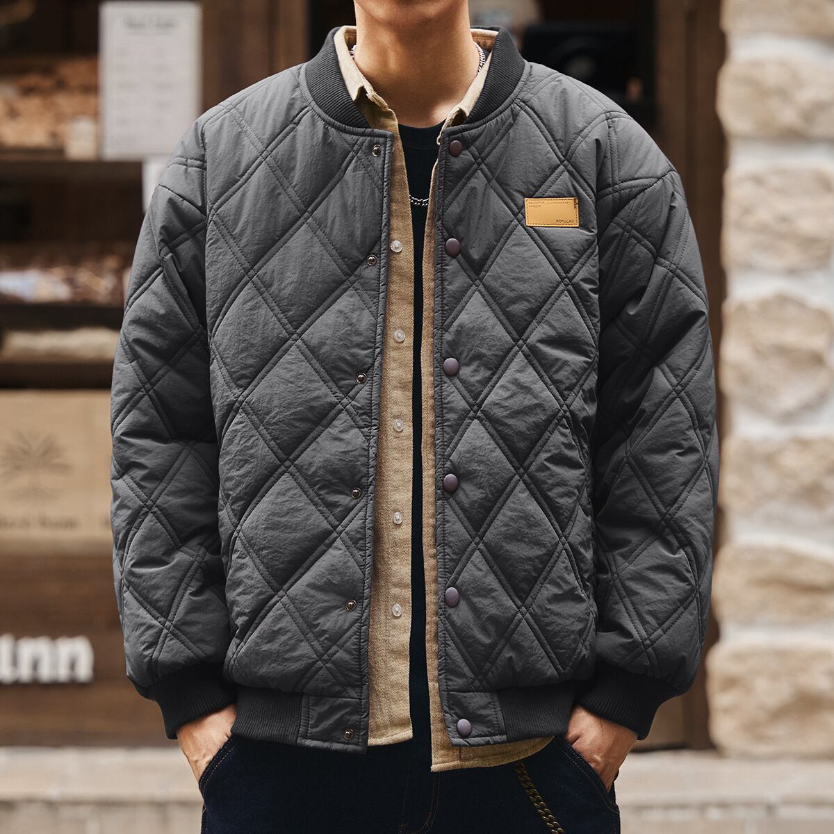 Vintage texture quilted jacket ( 4color )