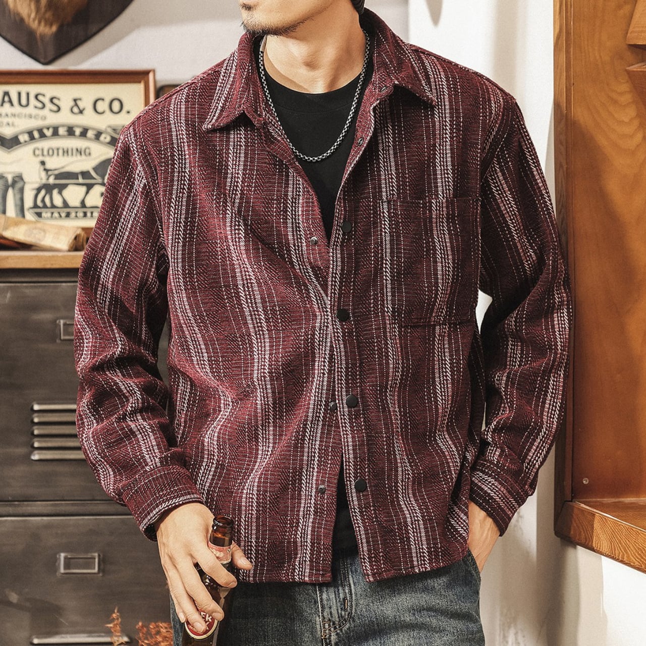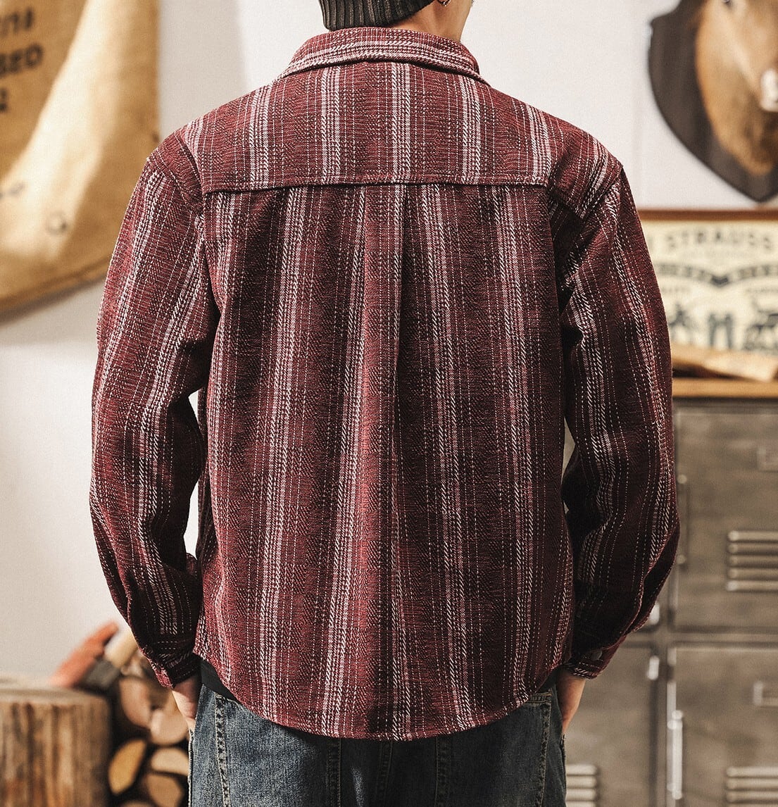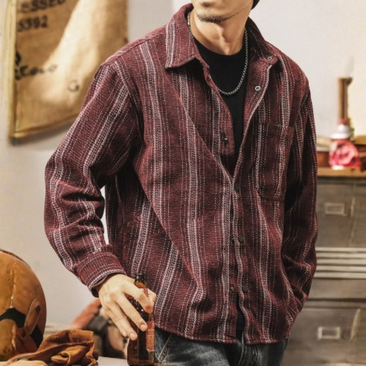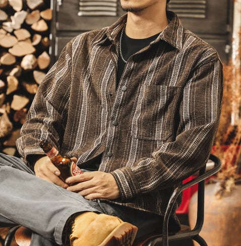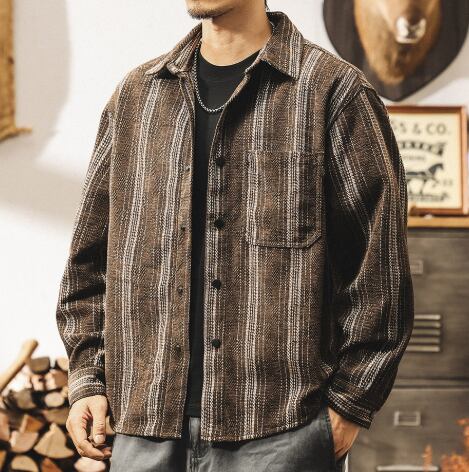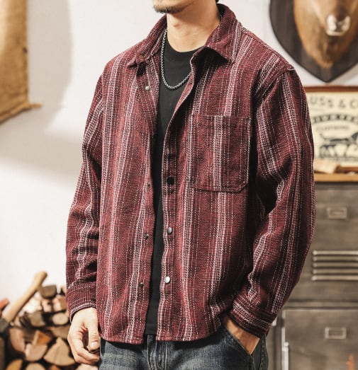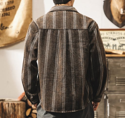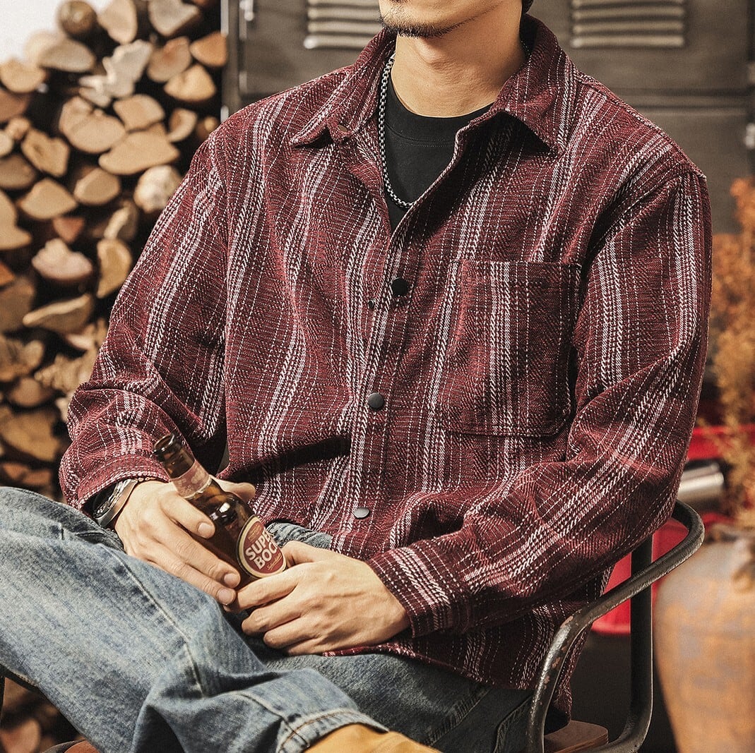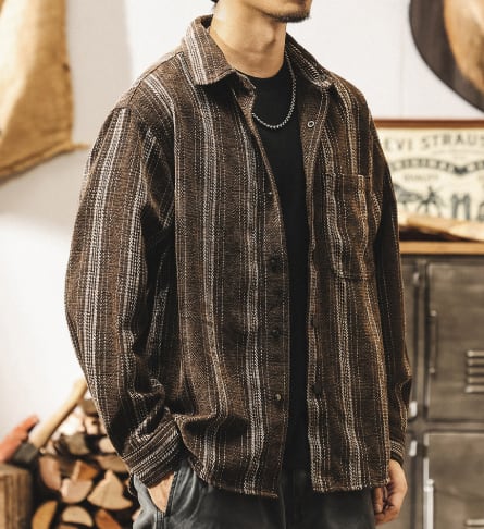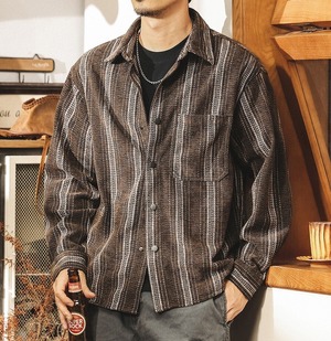 Single pocket vintage jacquard stripe shirt ( 2color )