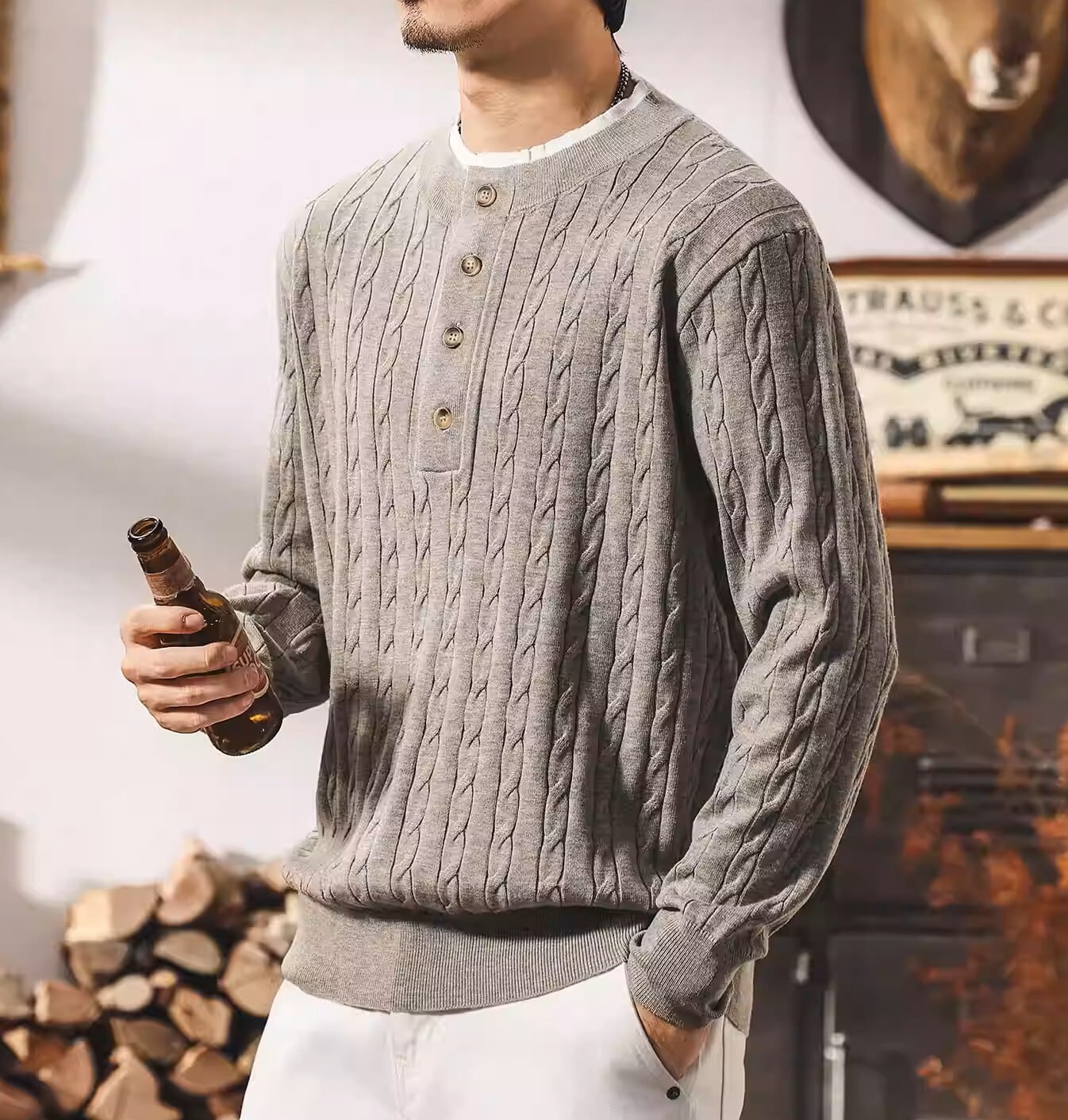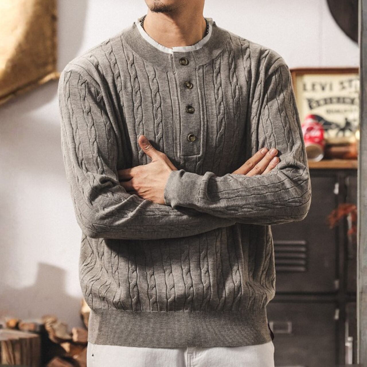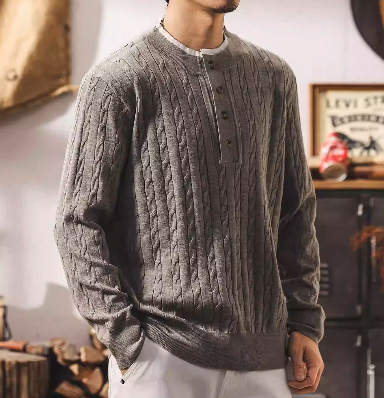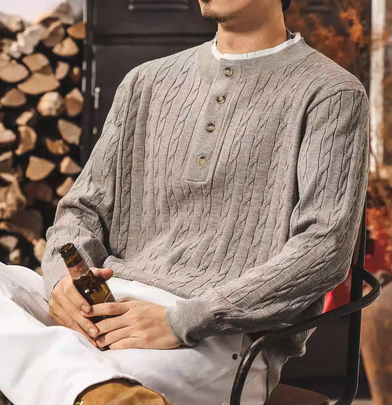 Collar stitch vintage cable knit ( 2color )