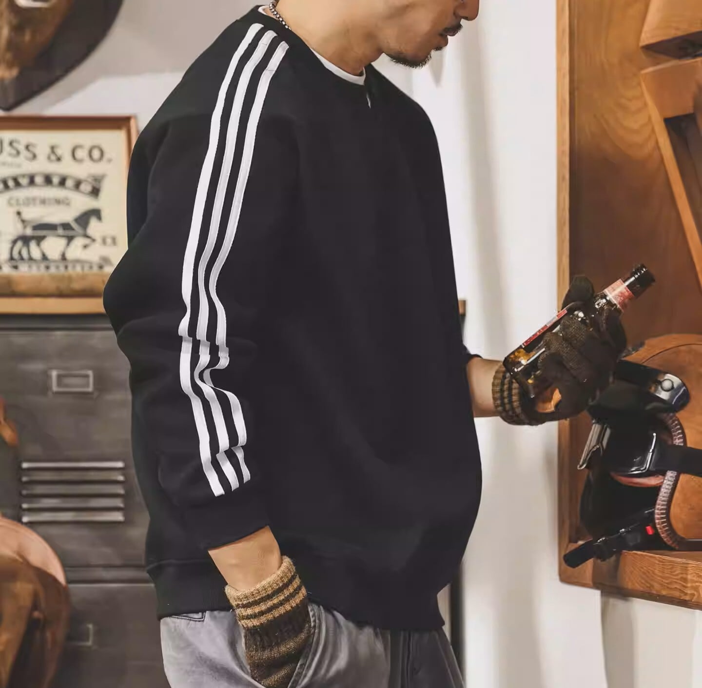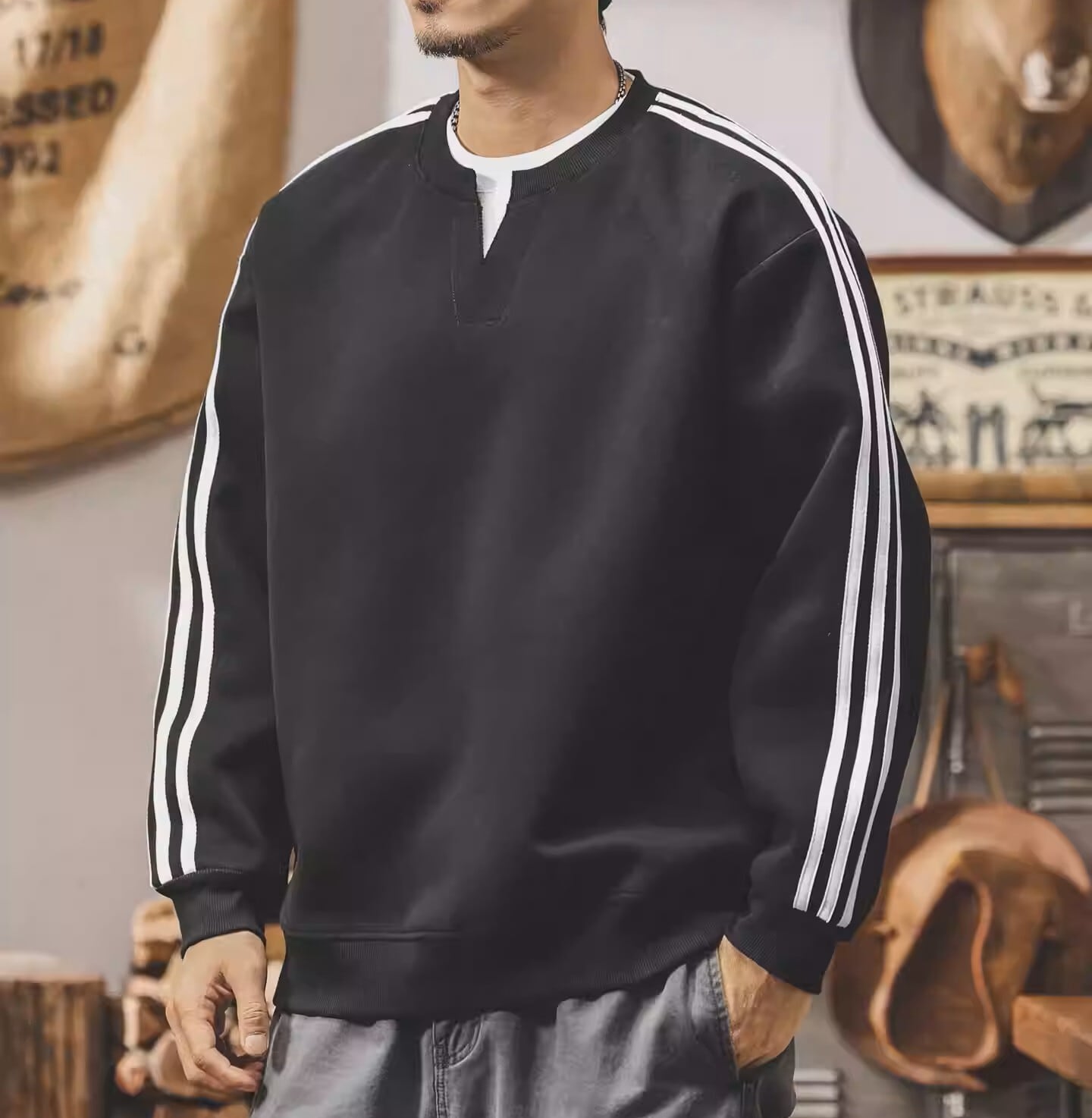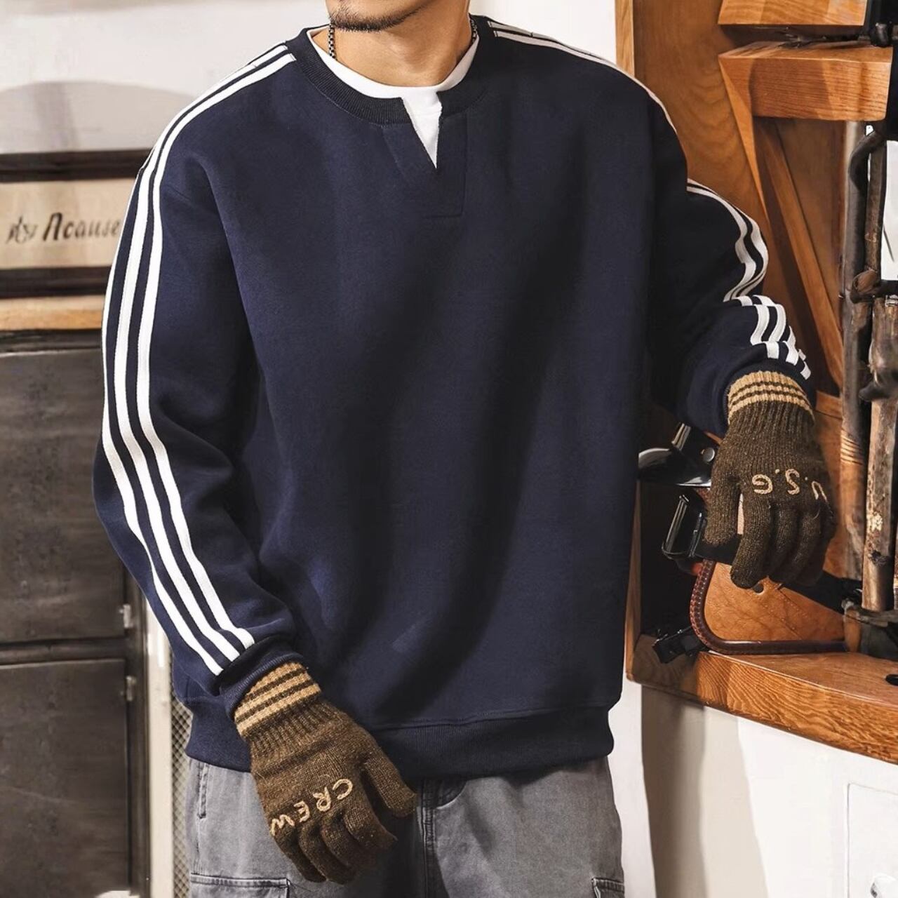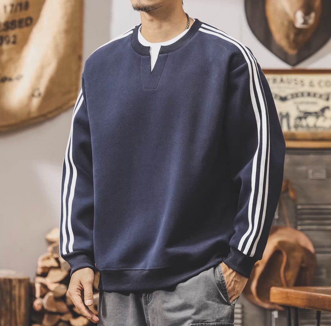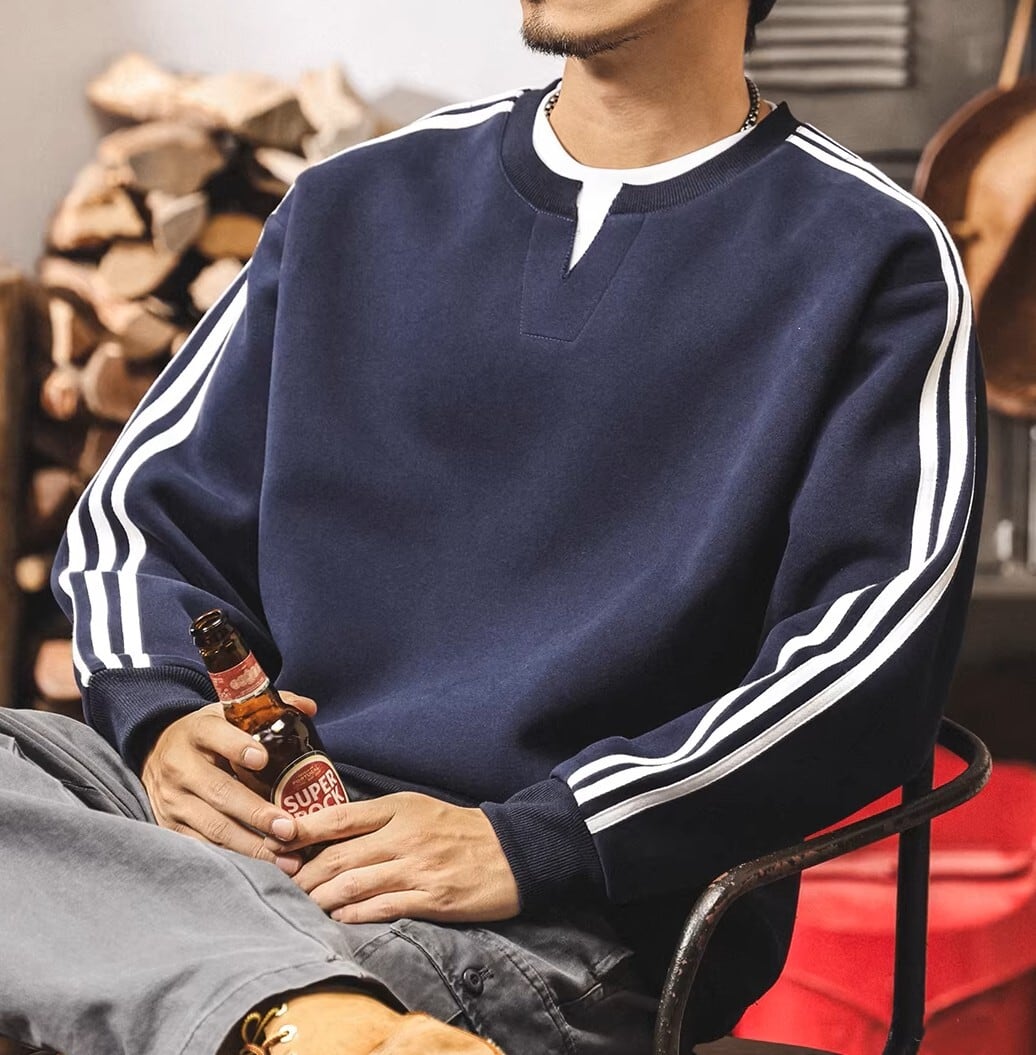 Two piece retro sleeve line heavy sweat ( 3color )