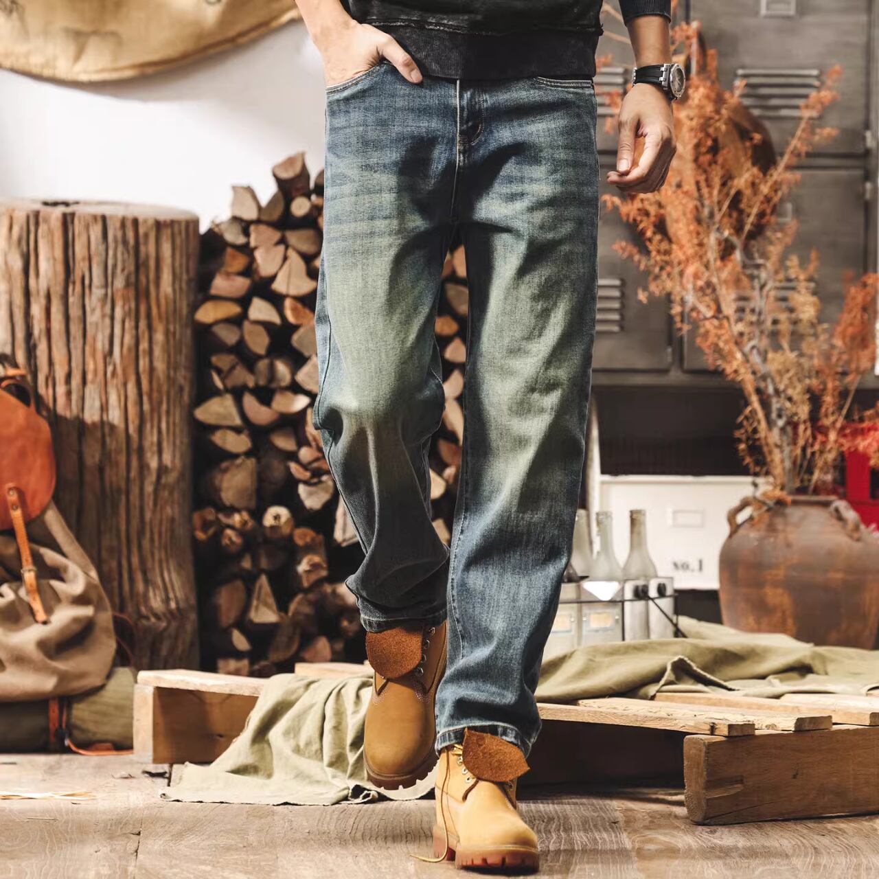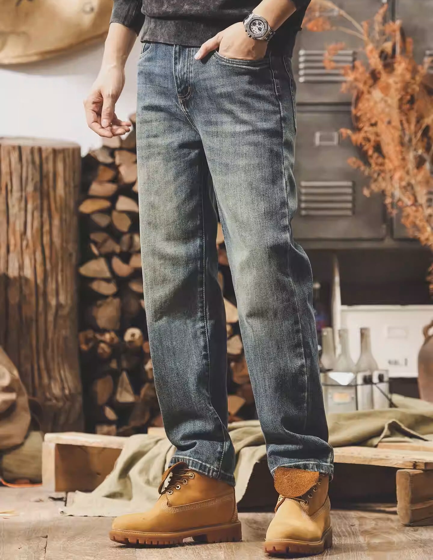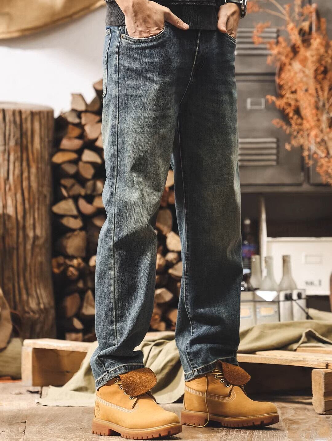 Vintage wash classic straight denim