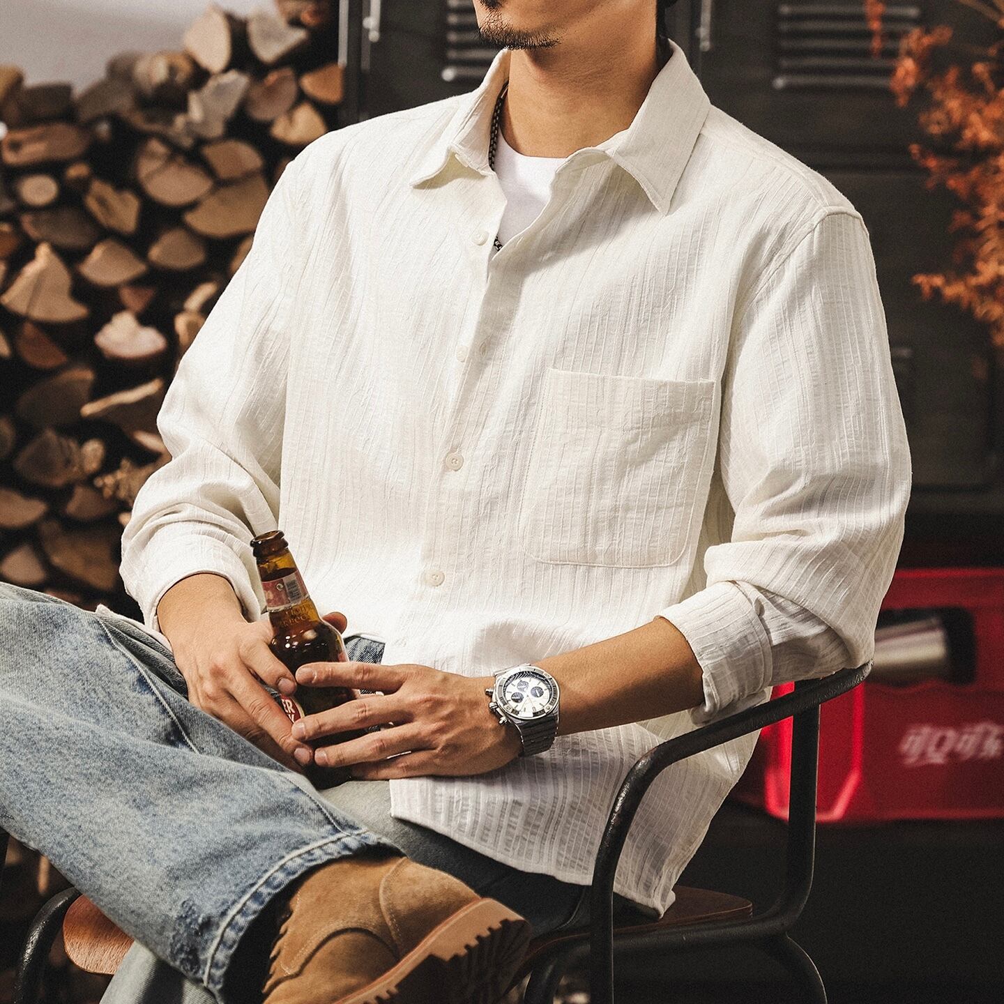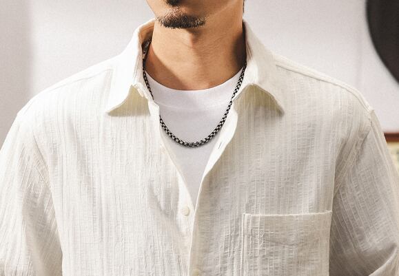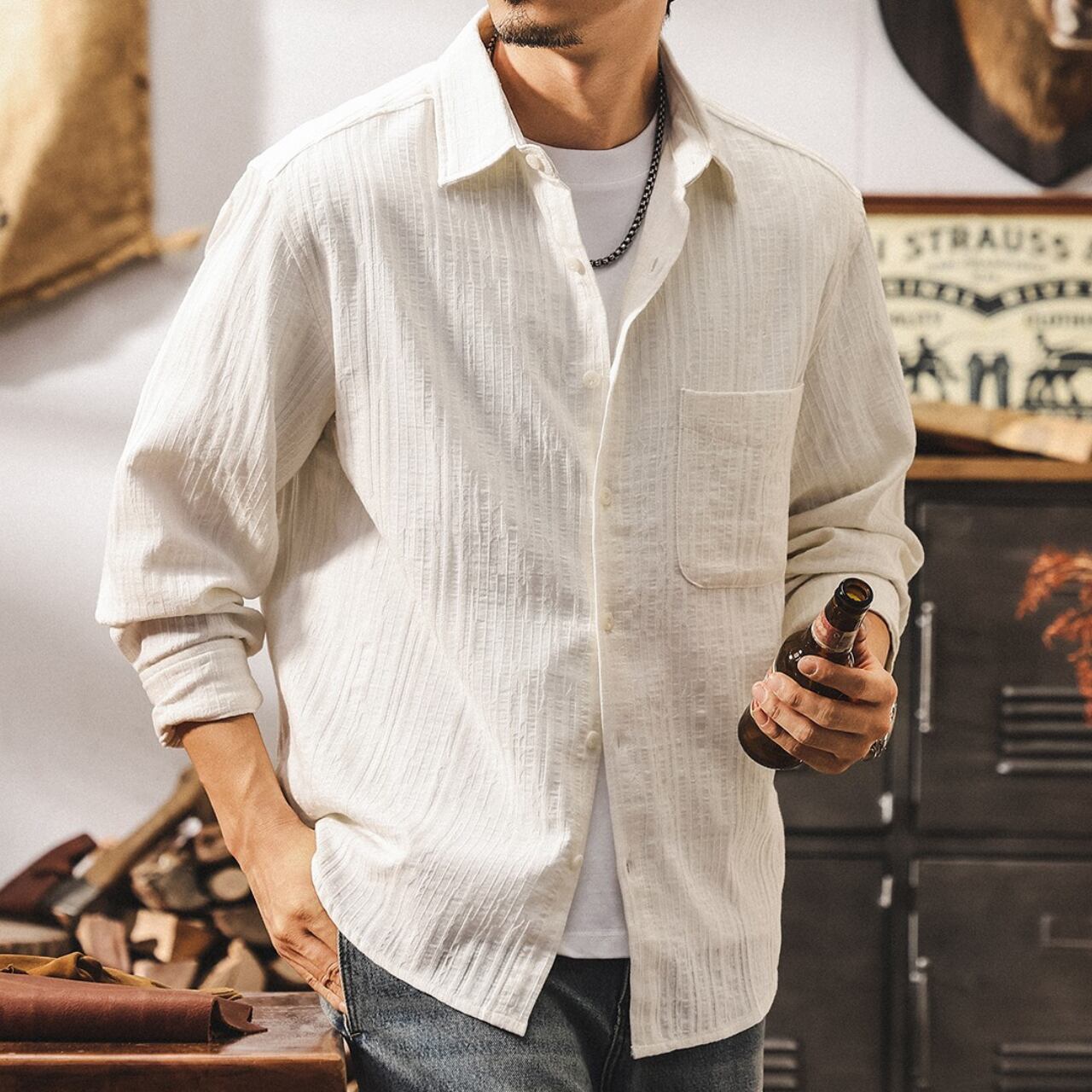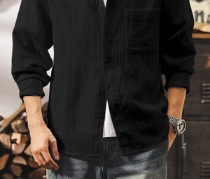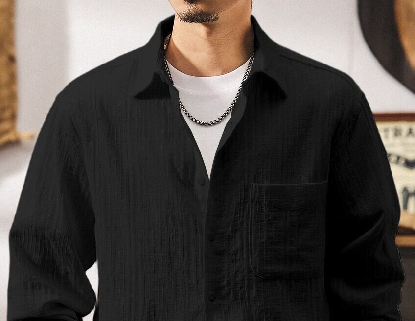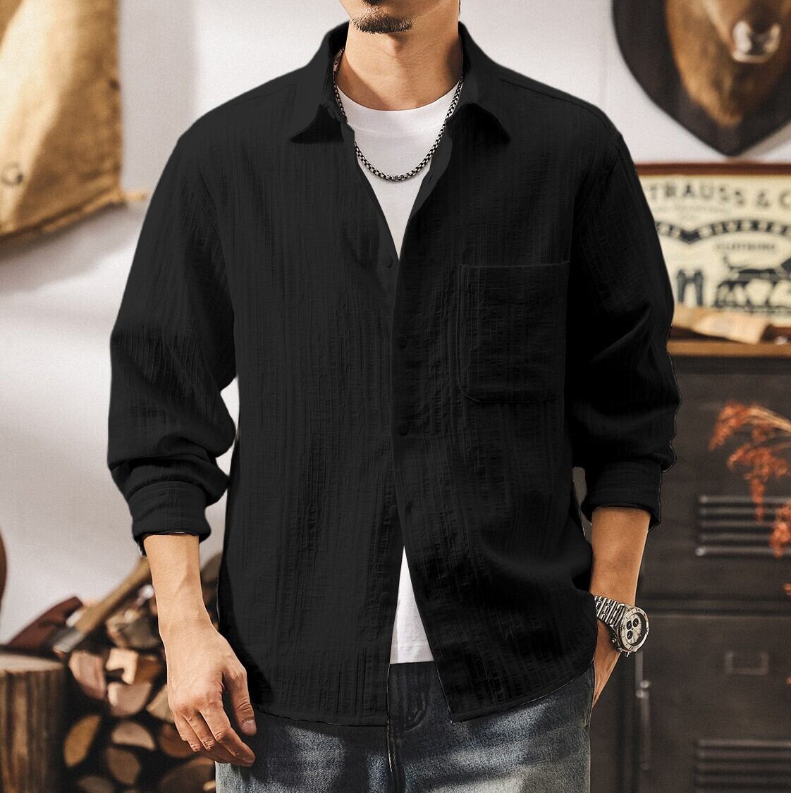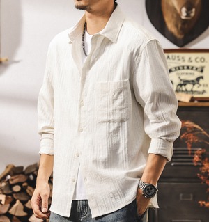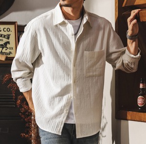 Single pocket vintage jacquard shirt ( 2color )