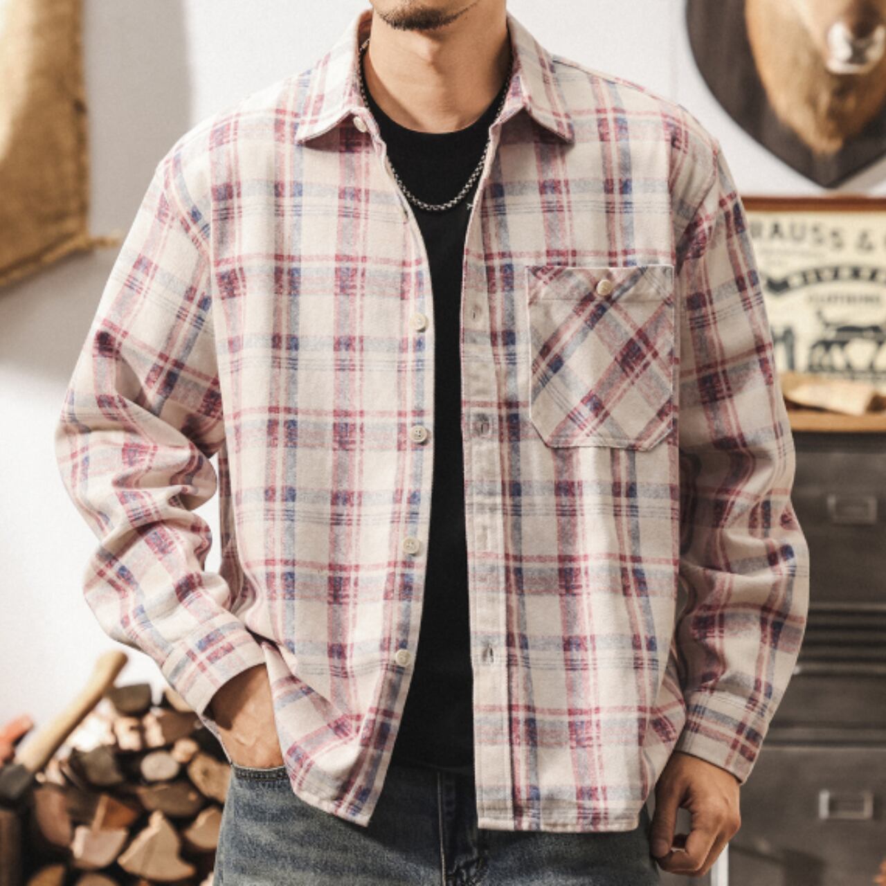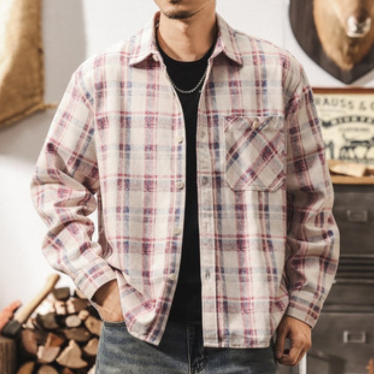 Single pocket vintage check shirt