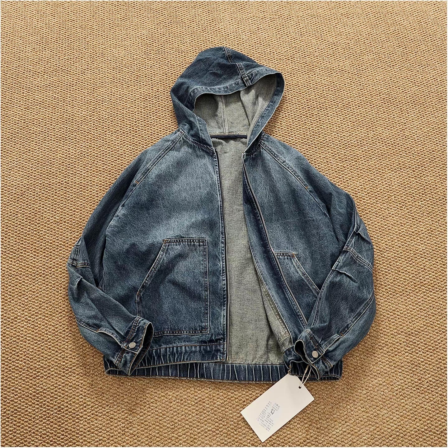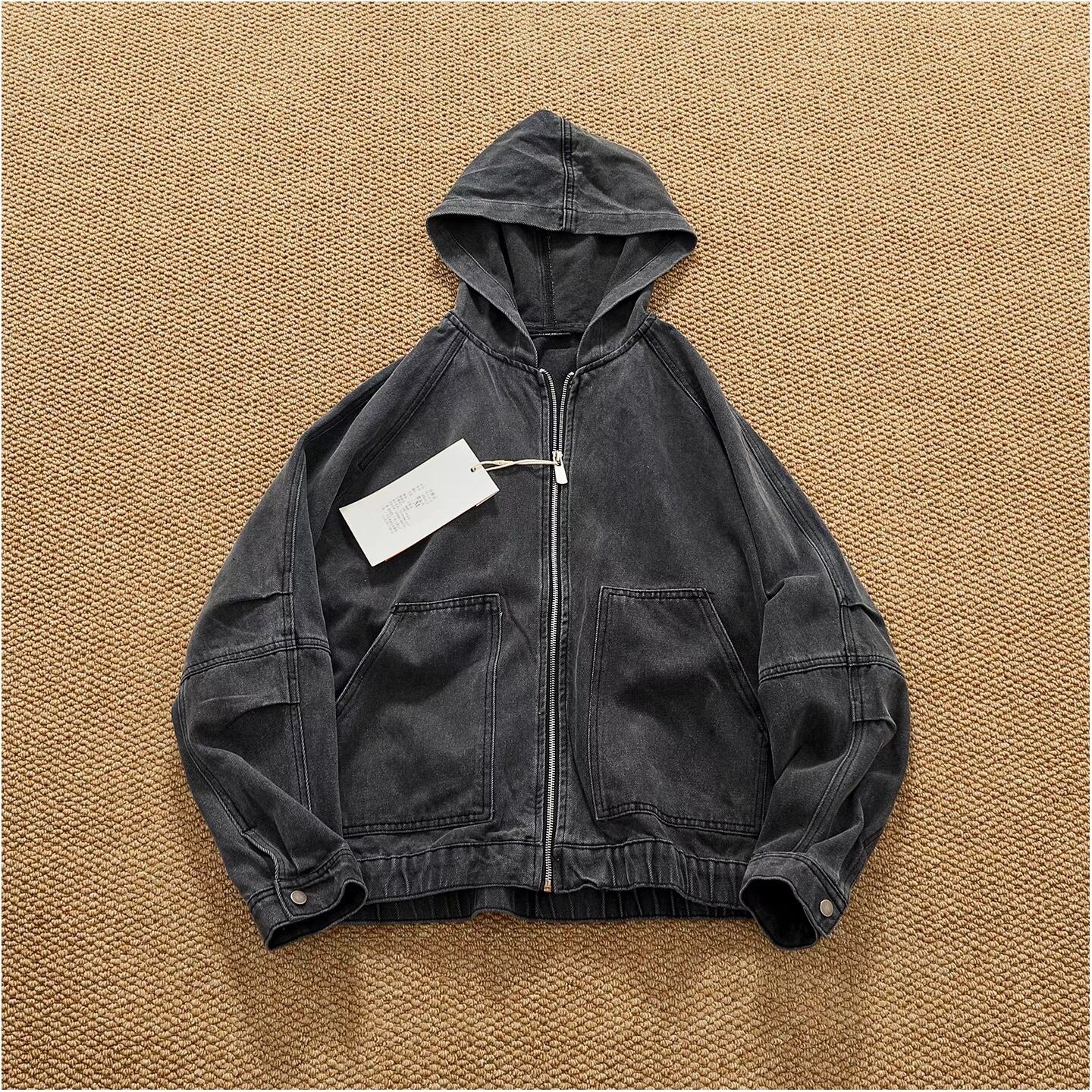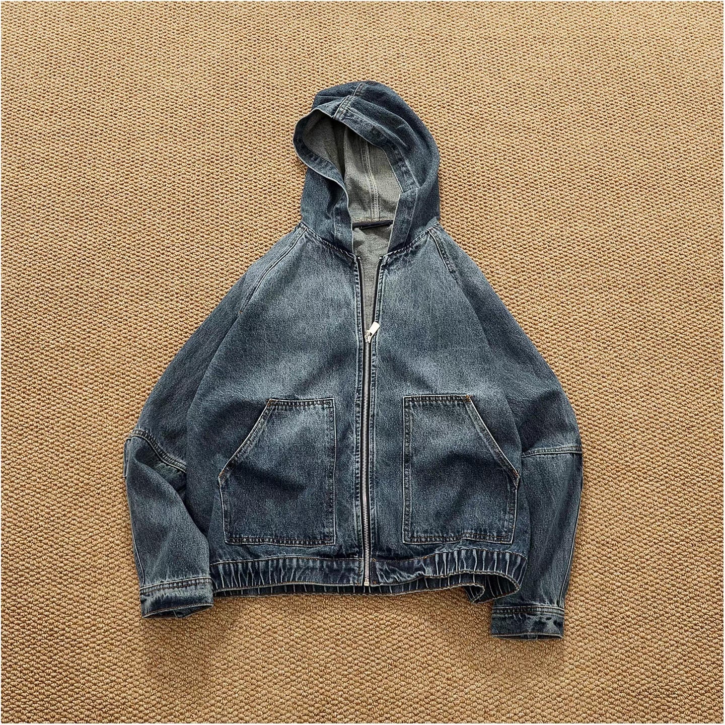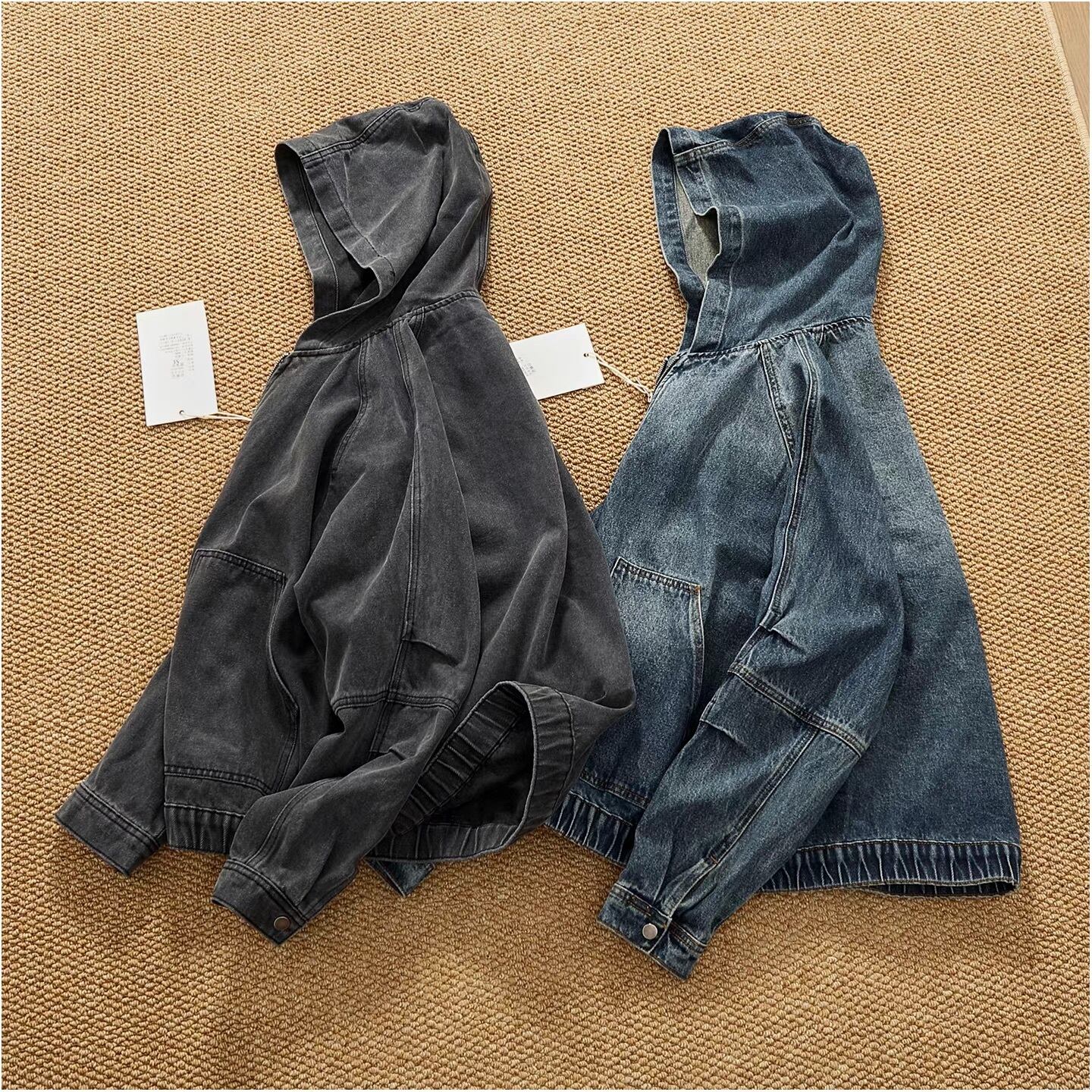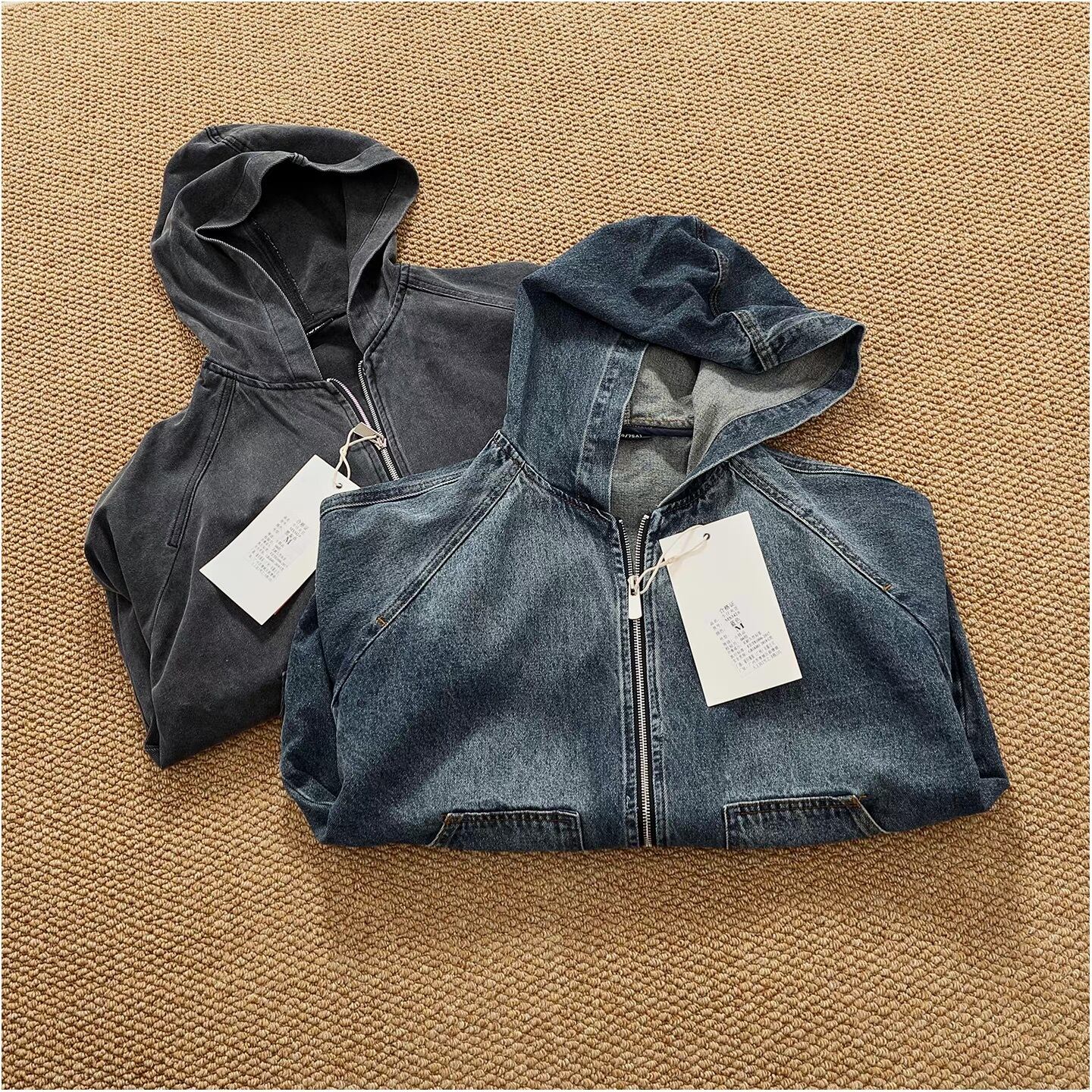 Vintage wash denim hoodie ( 2color )