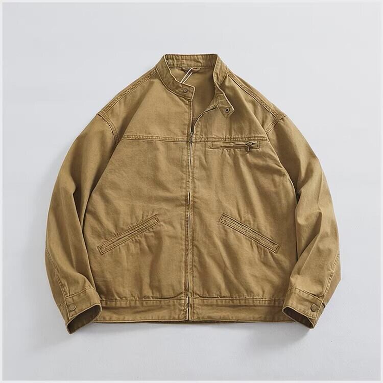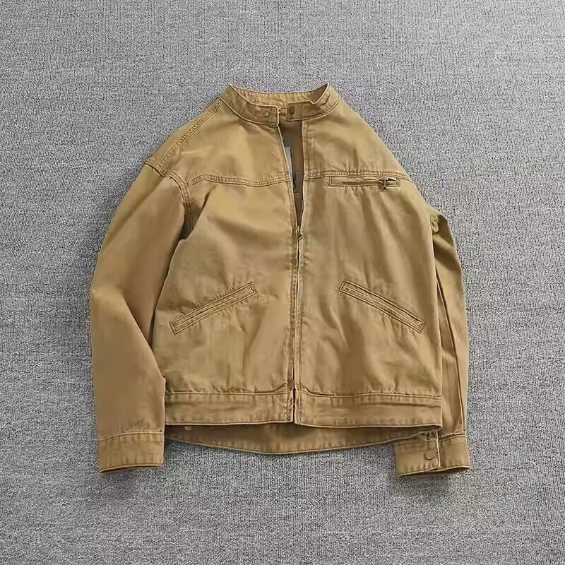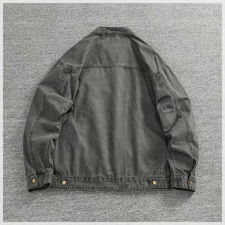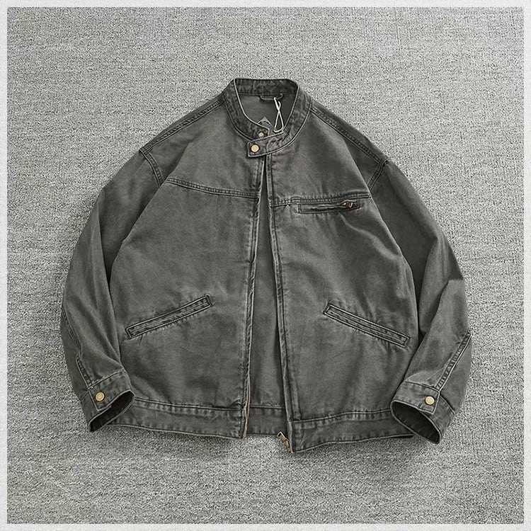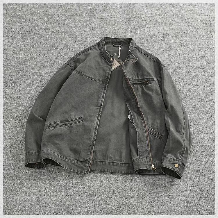 Stand collar vintage wash denim single rider's jacket ( 2color )
