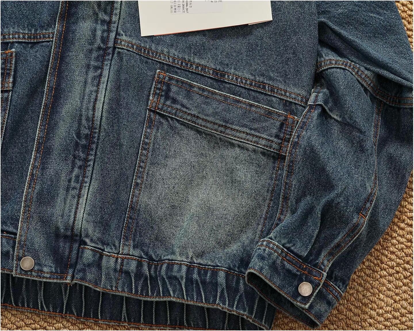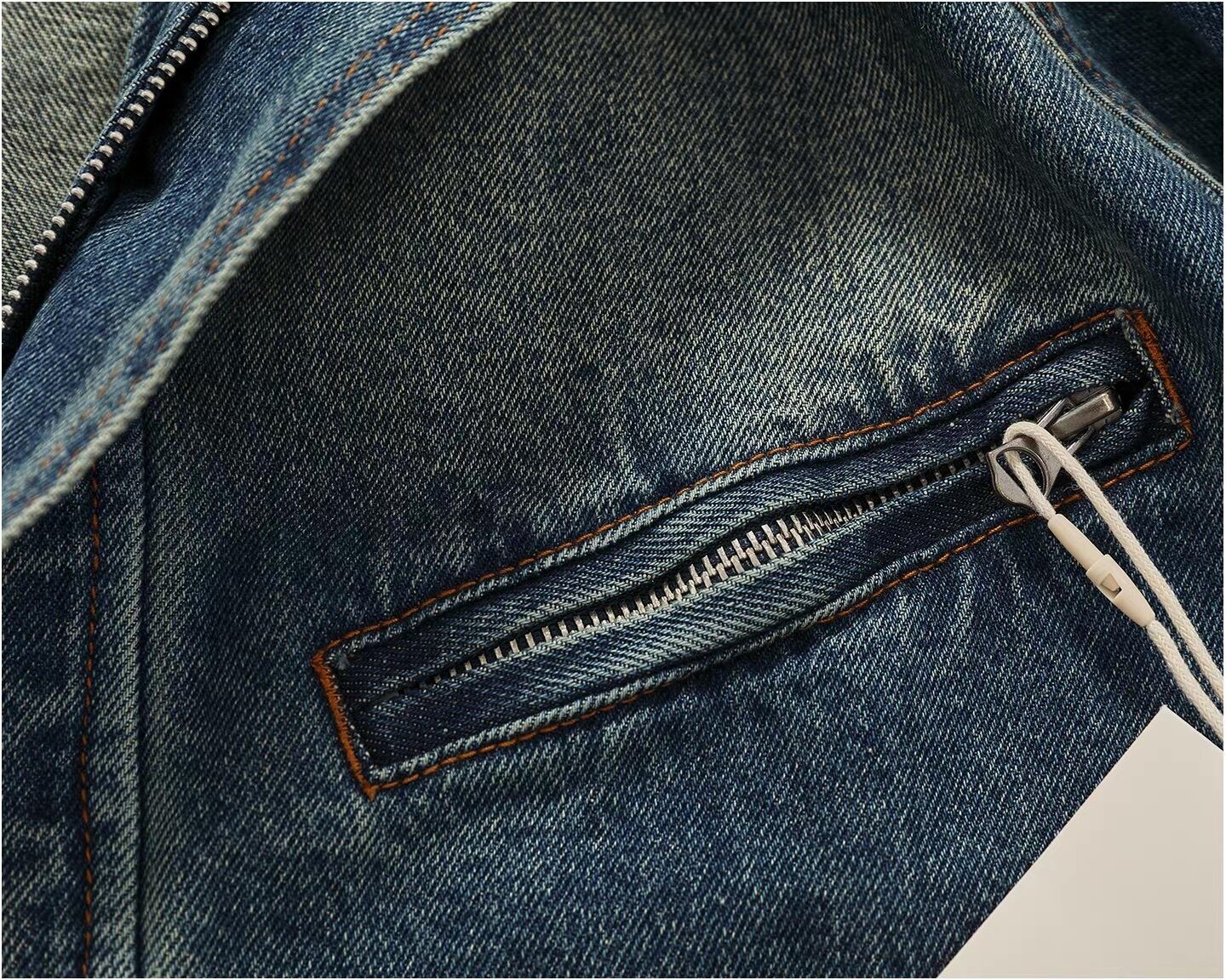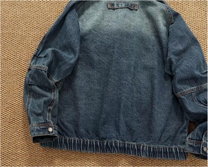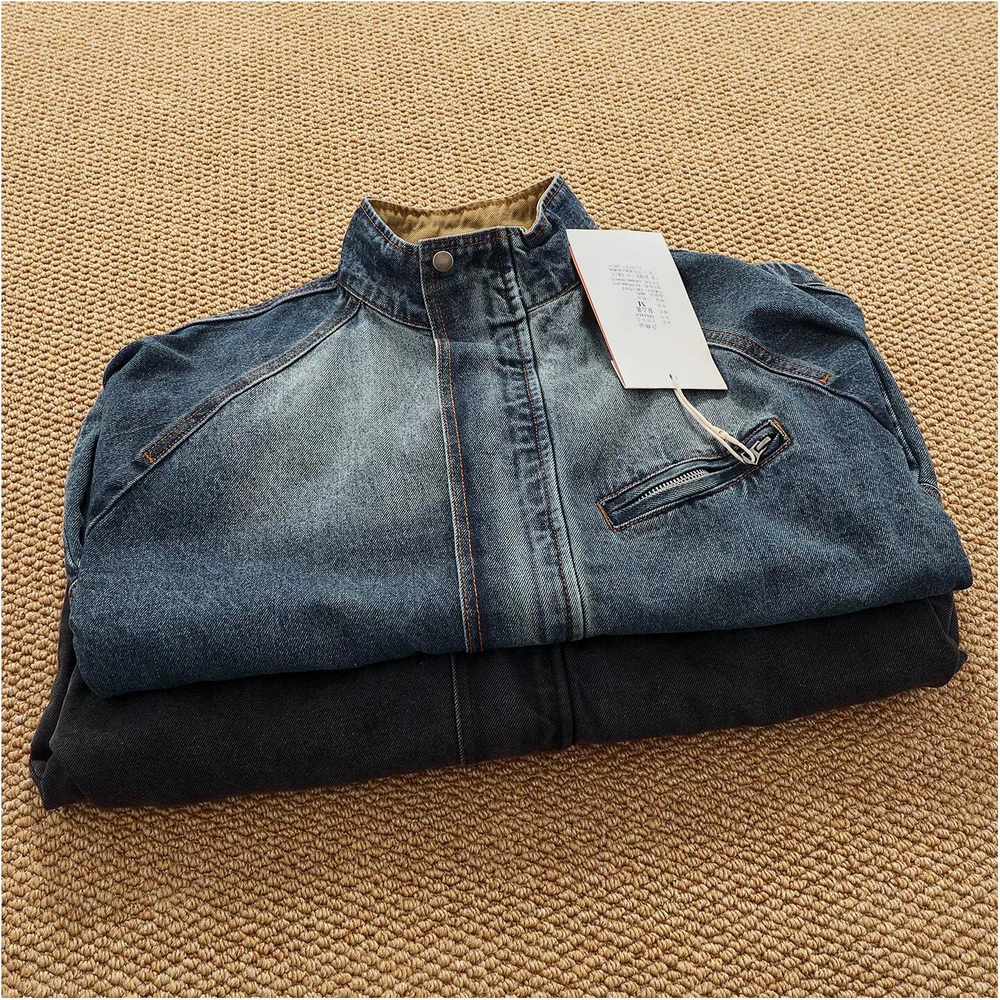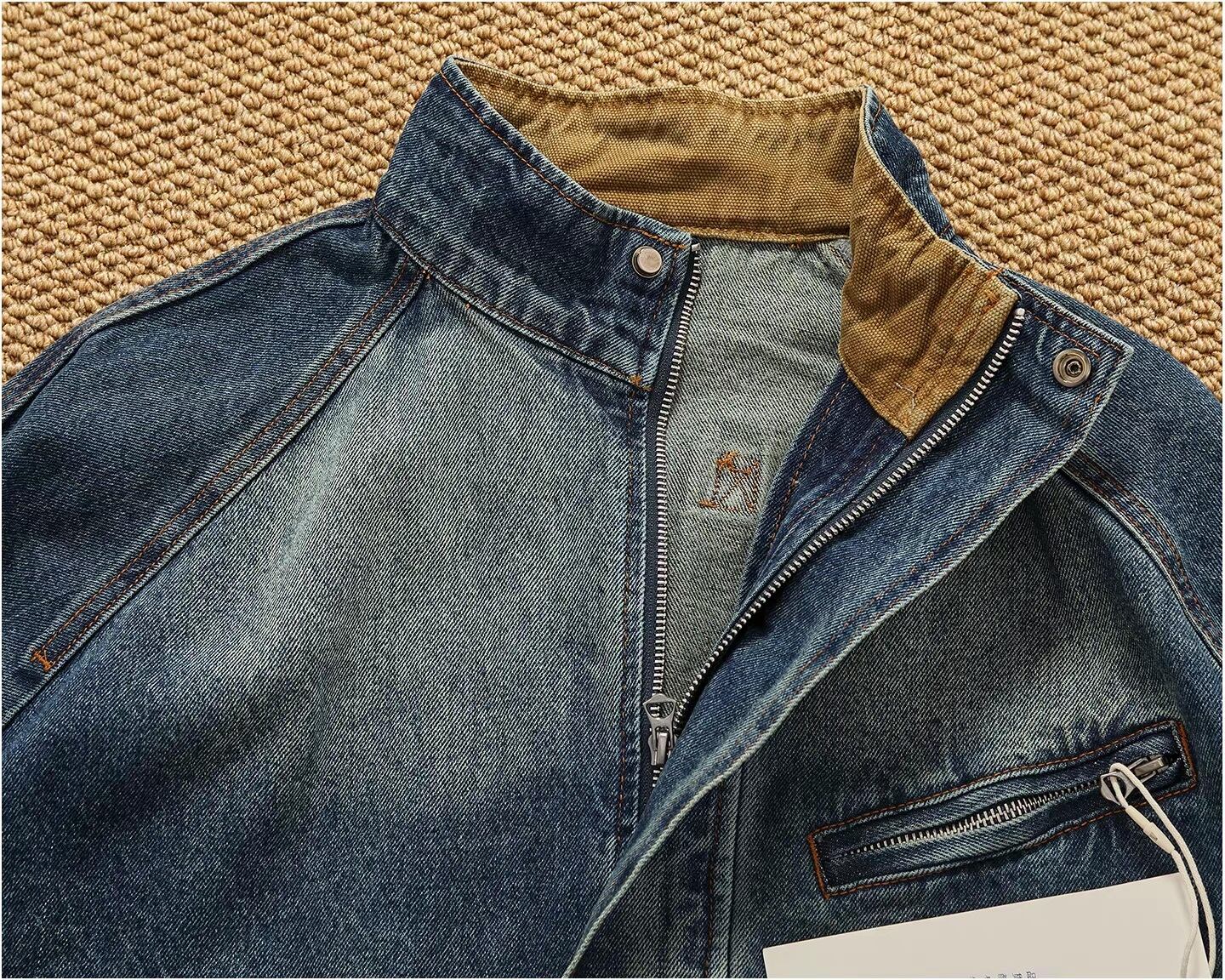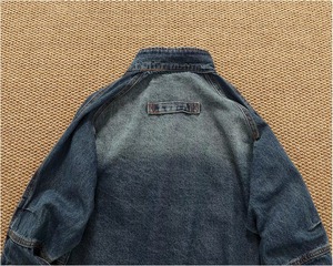 Stand collar vintage wash double pocket denim jacket ( 2color )