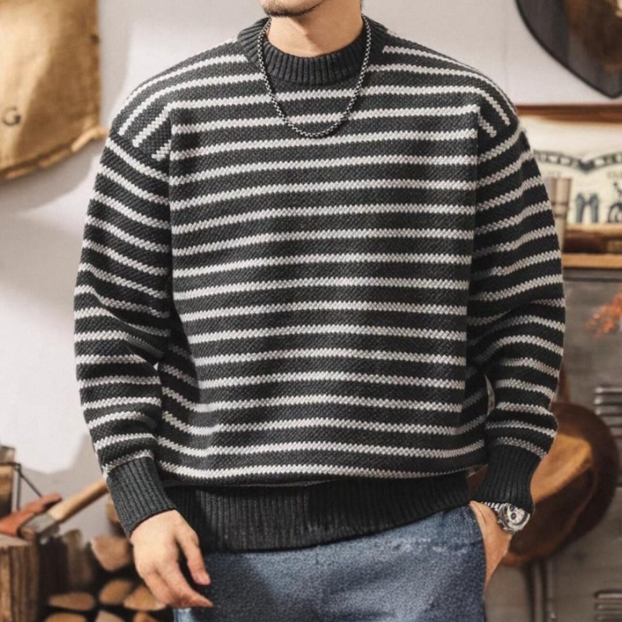 Vintage contrast border knit ( 3color )