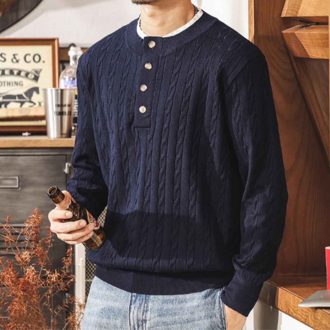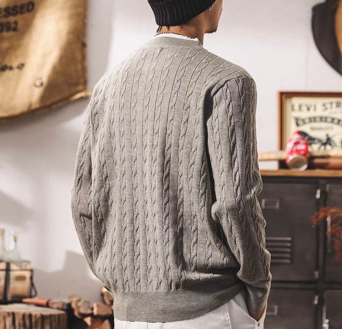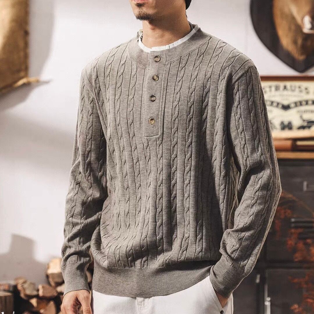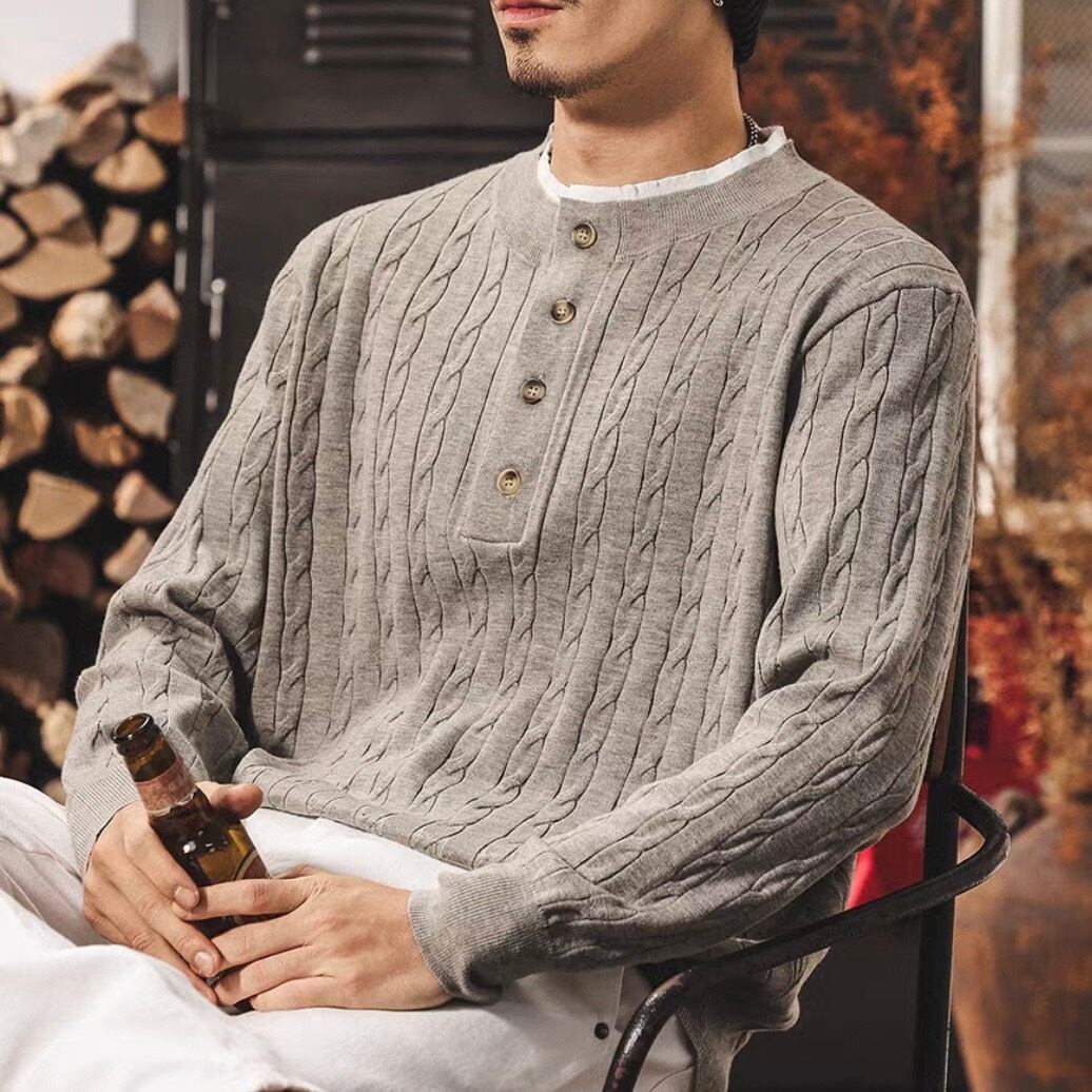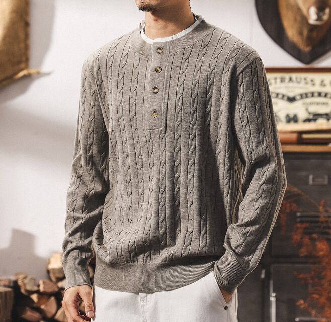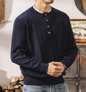 Collar stitch retro cable knit ( 2color )