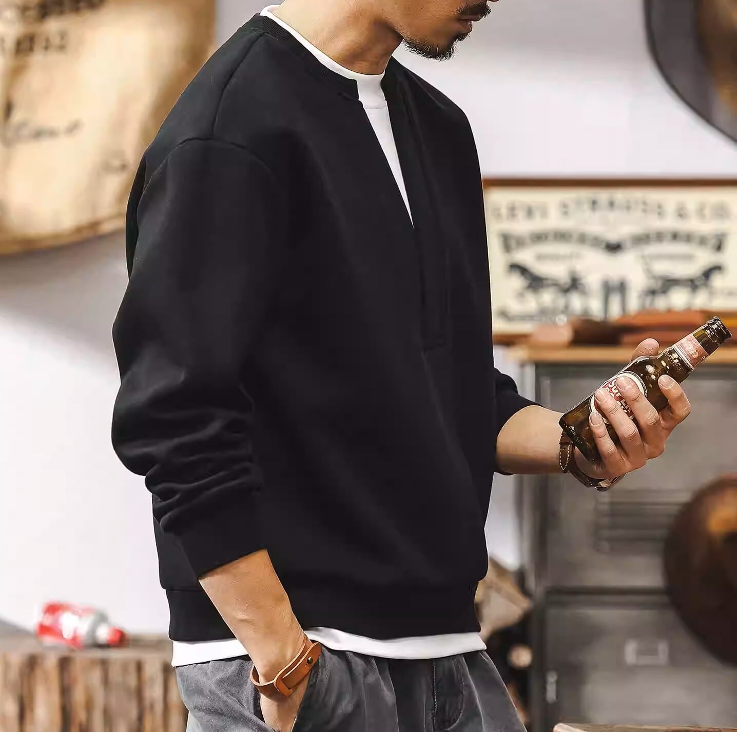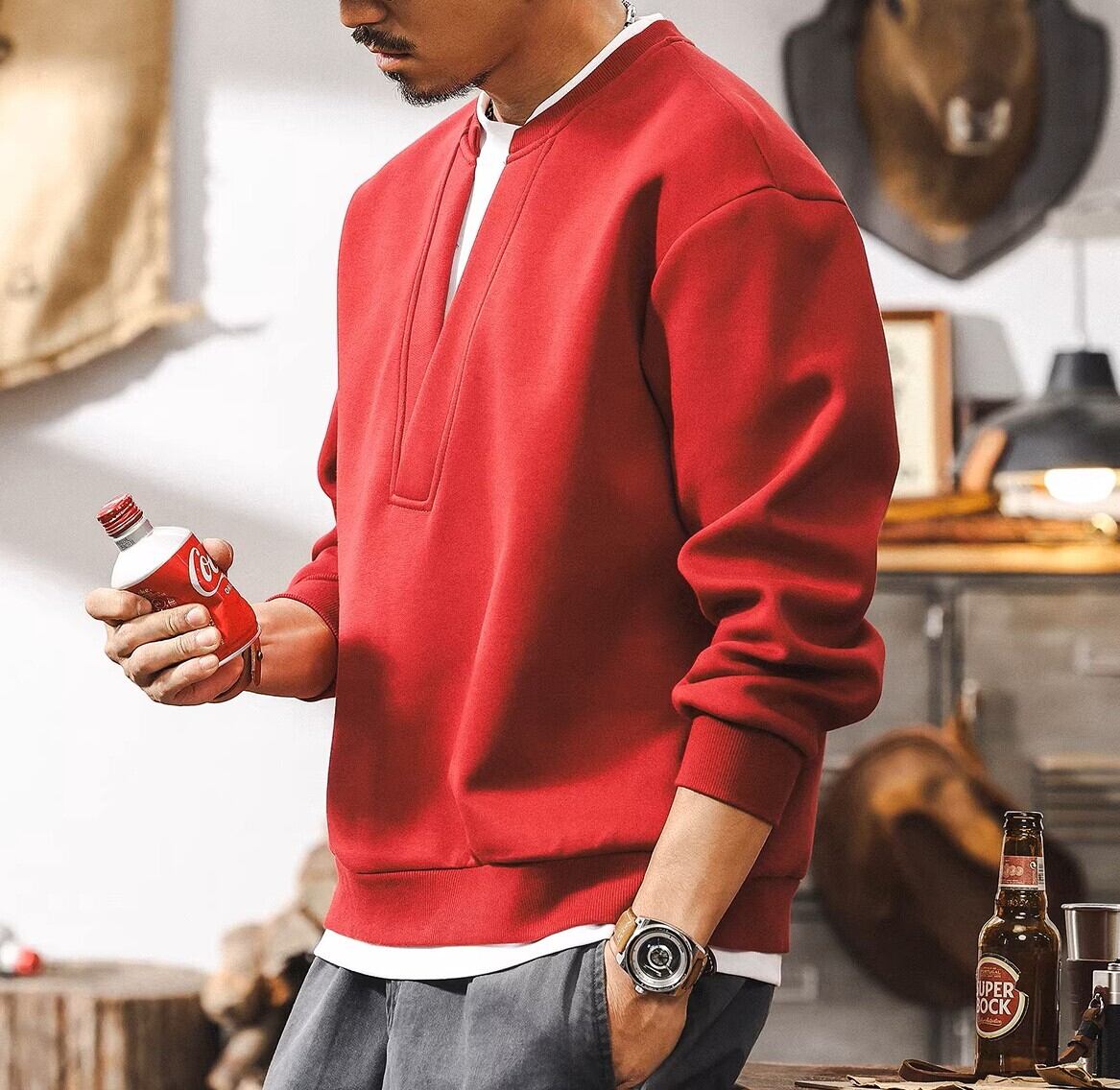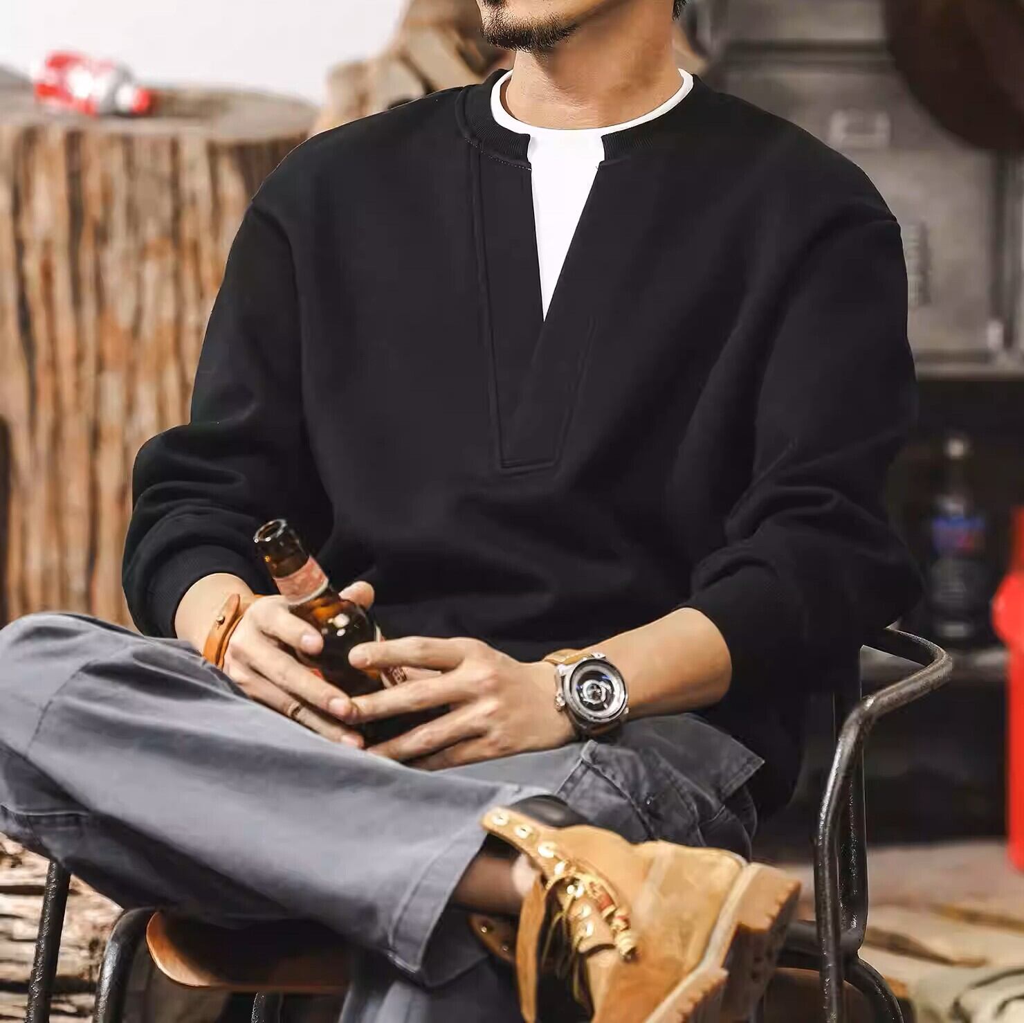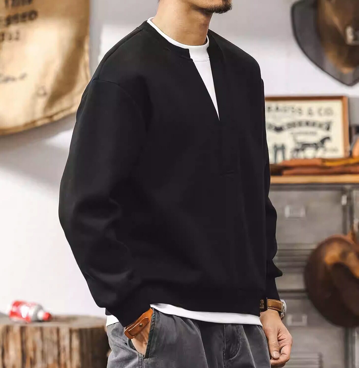 Deep v neck two piece retro sweat ( 3color )