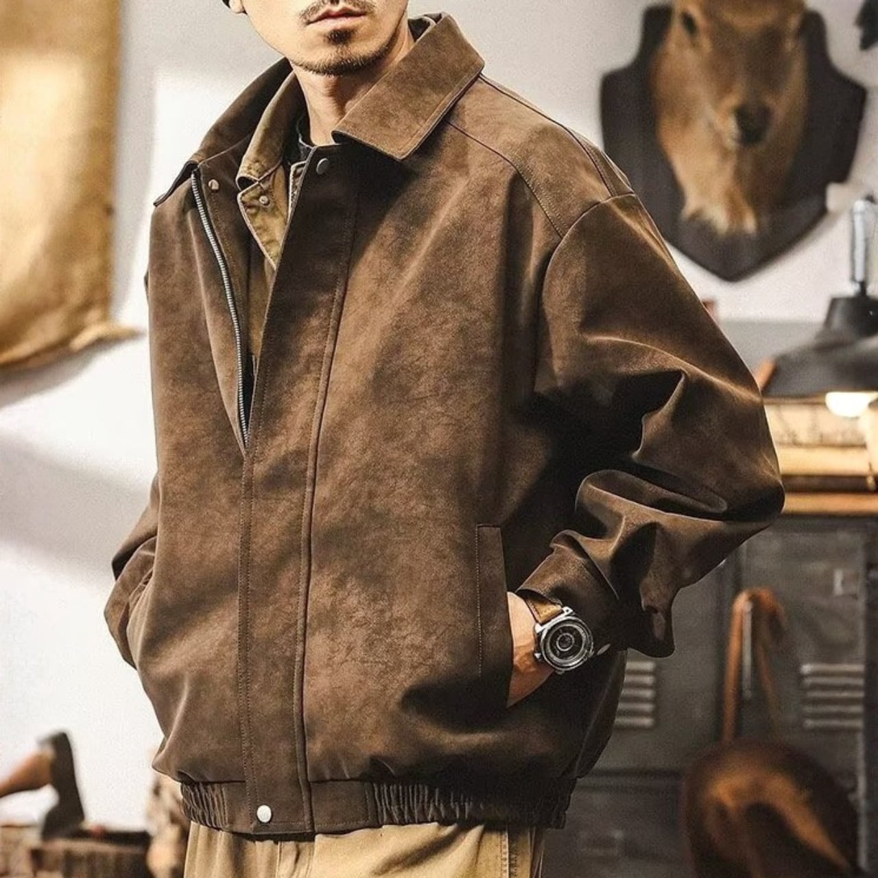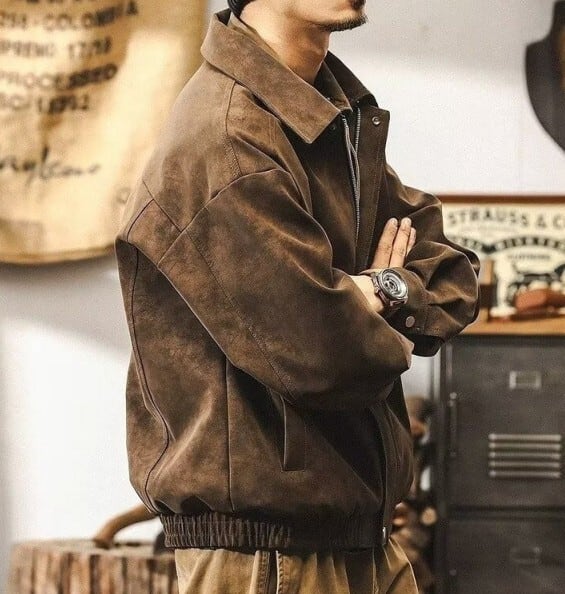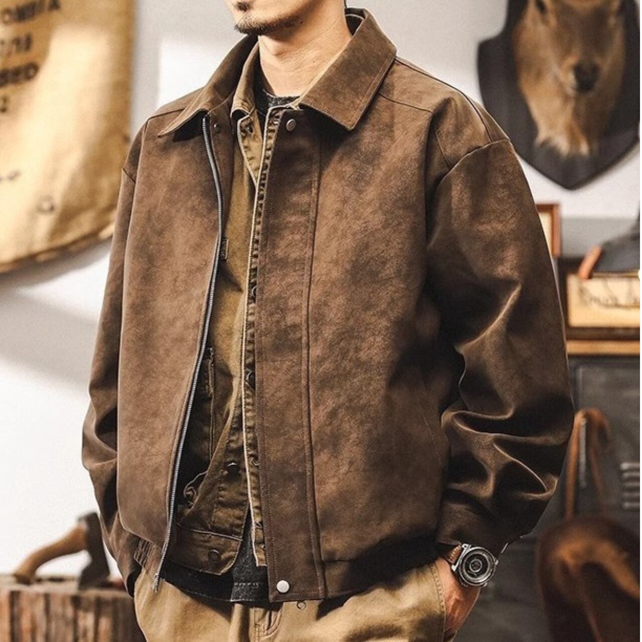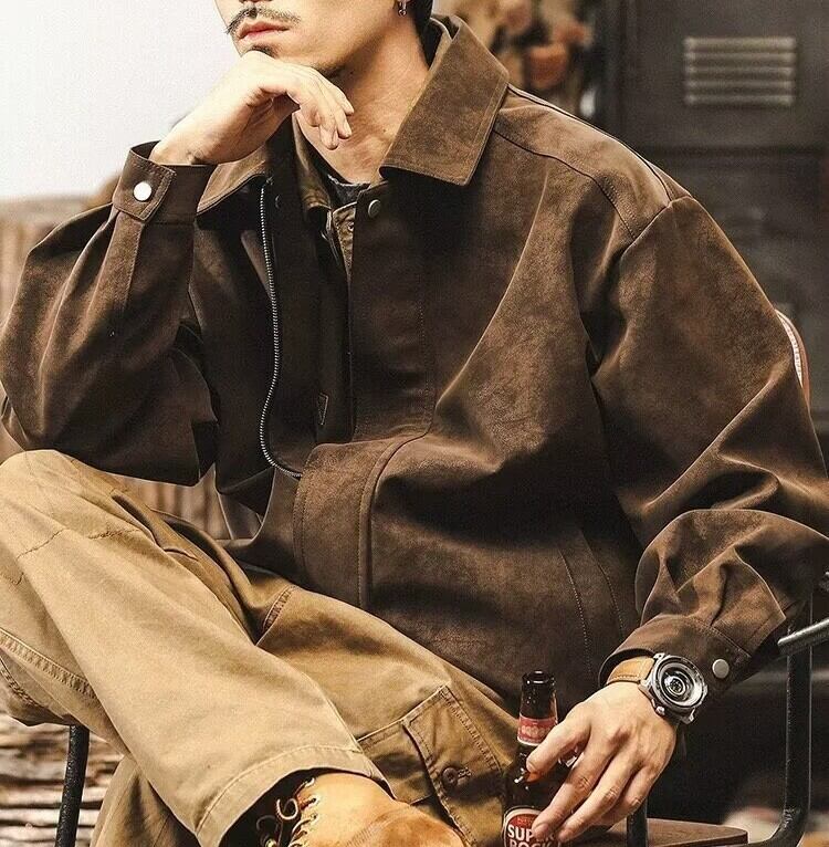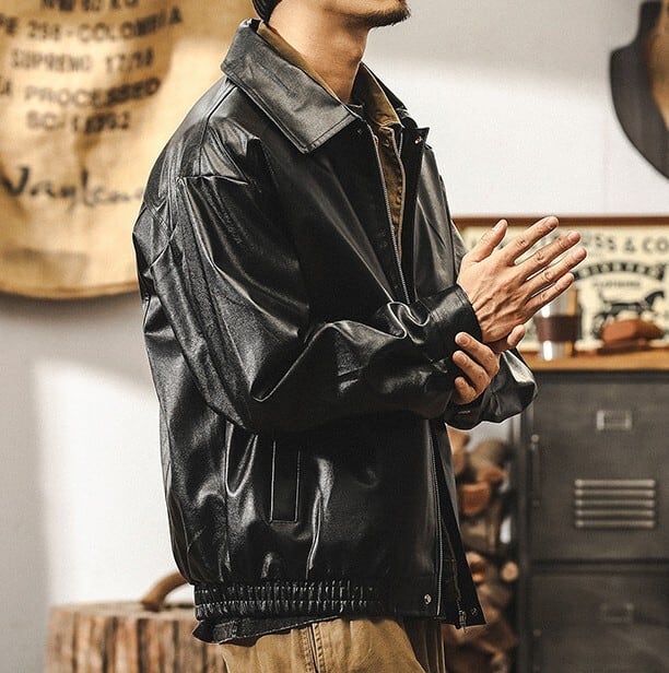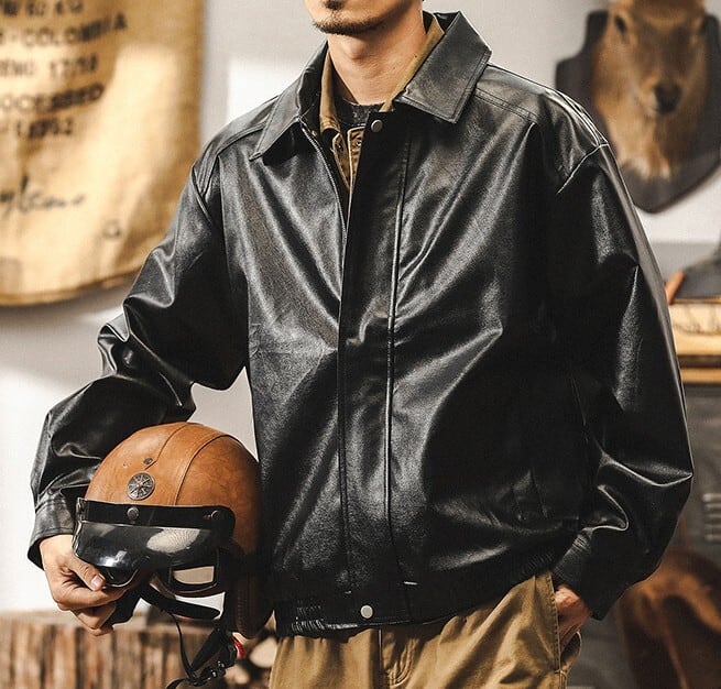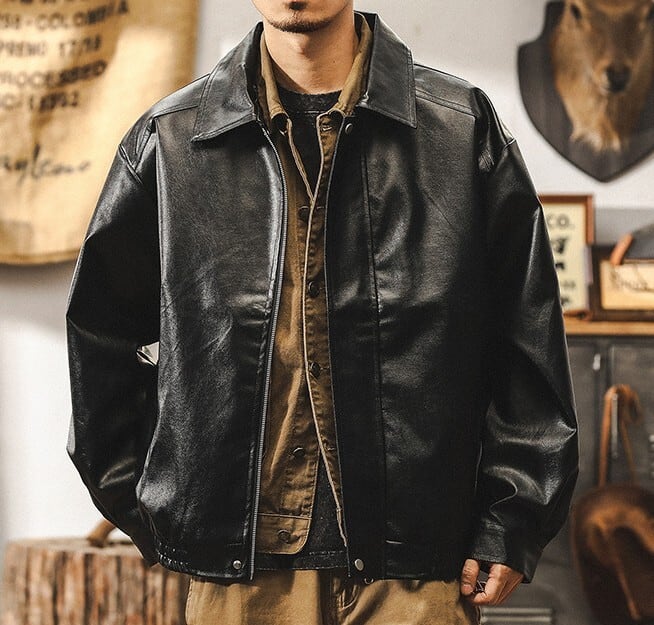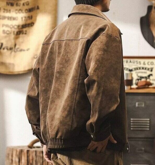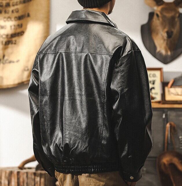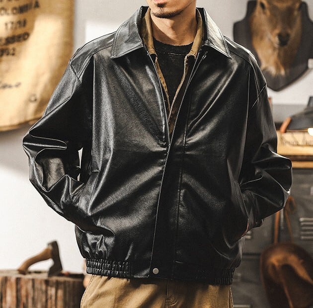 Lapel collar vintage pu leather jacket ( 4color )