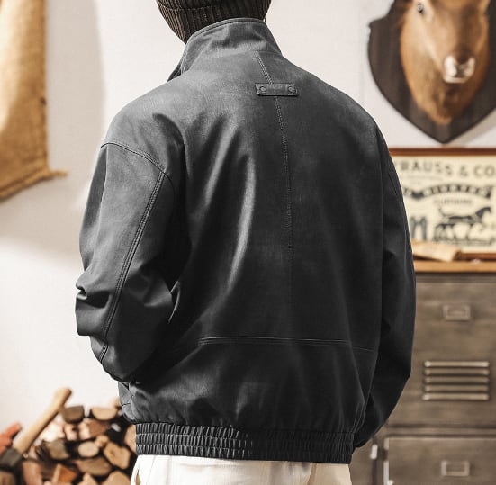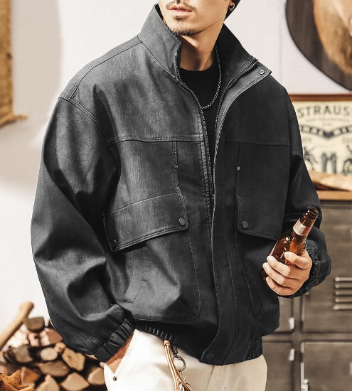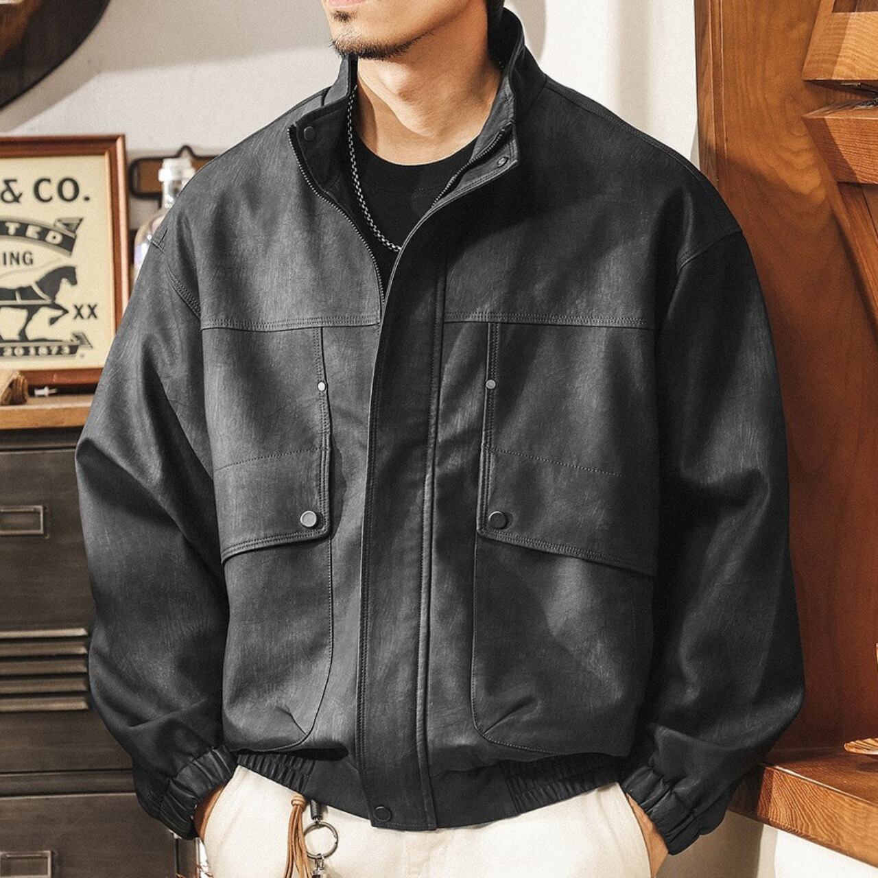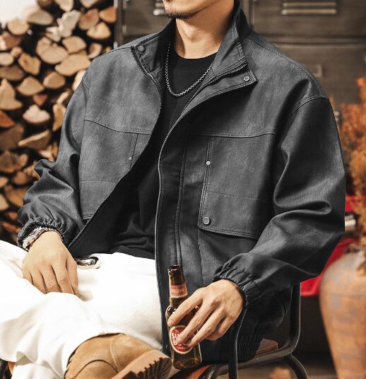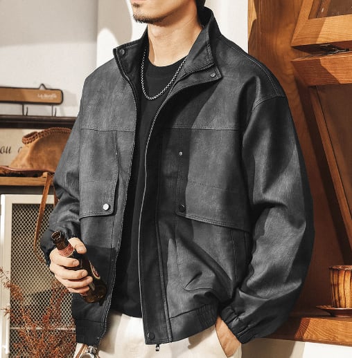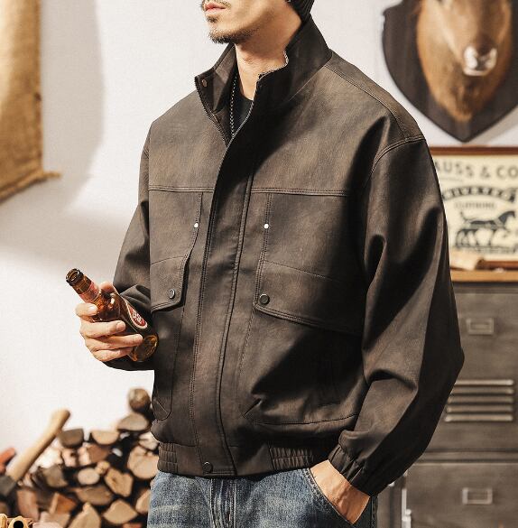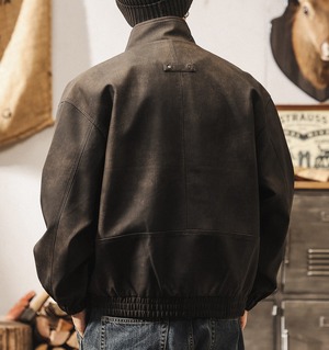Stand collar matte pu leather vintage jacket ( 2color )