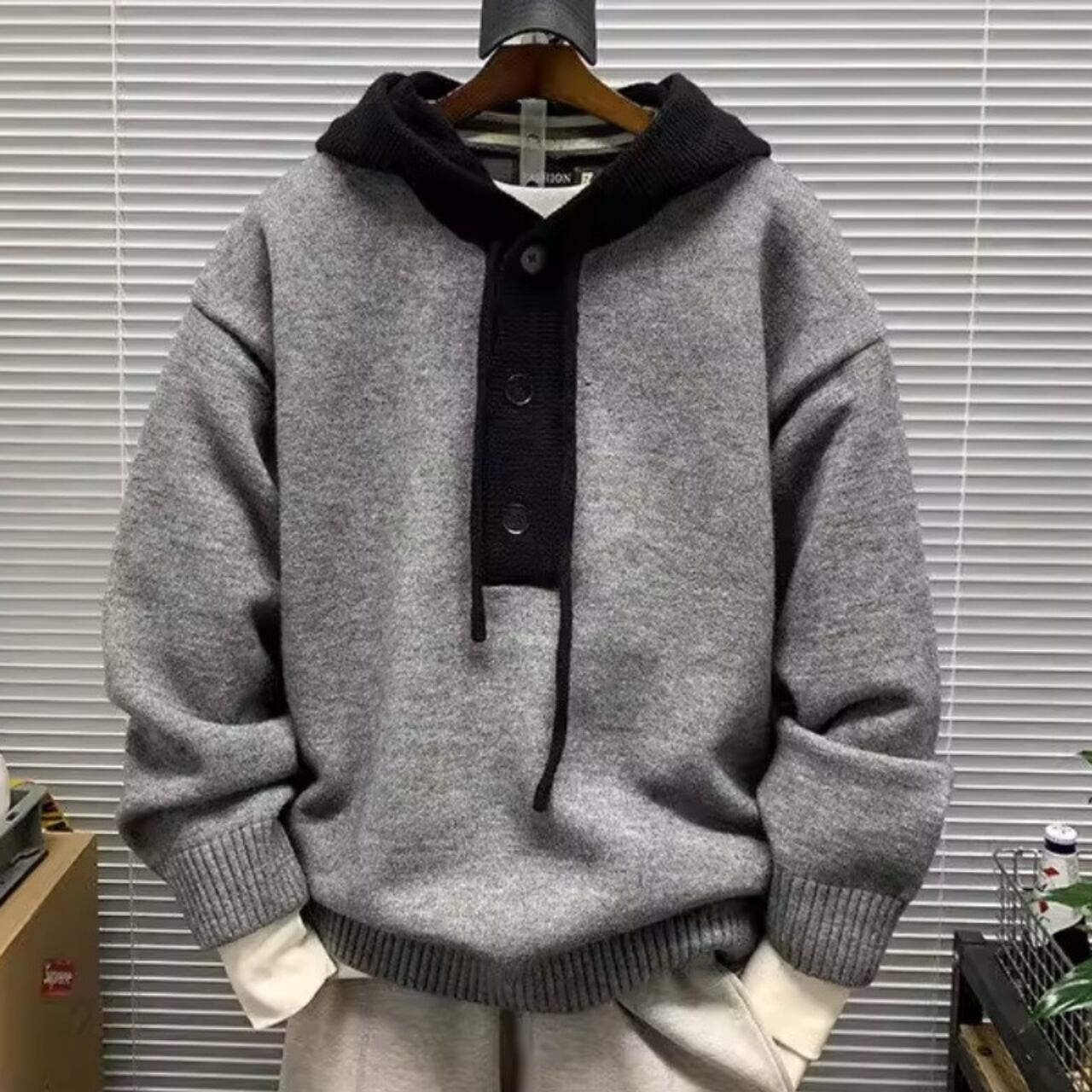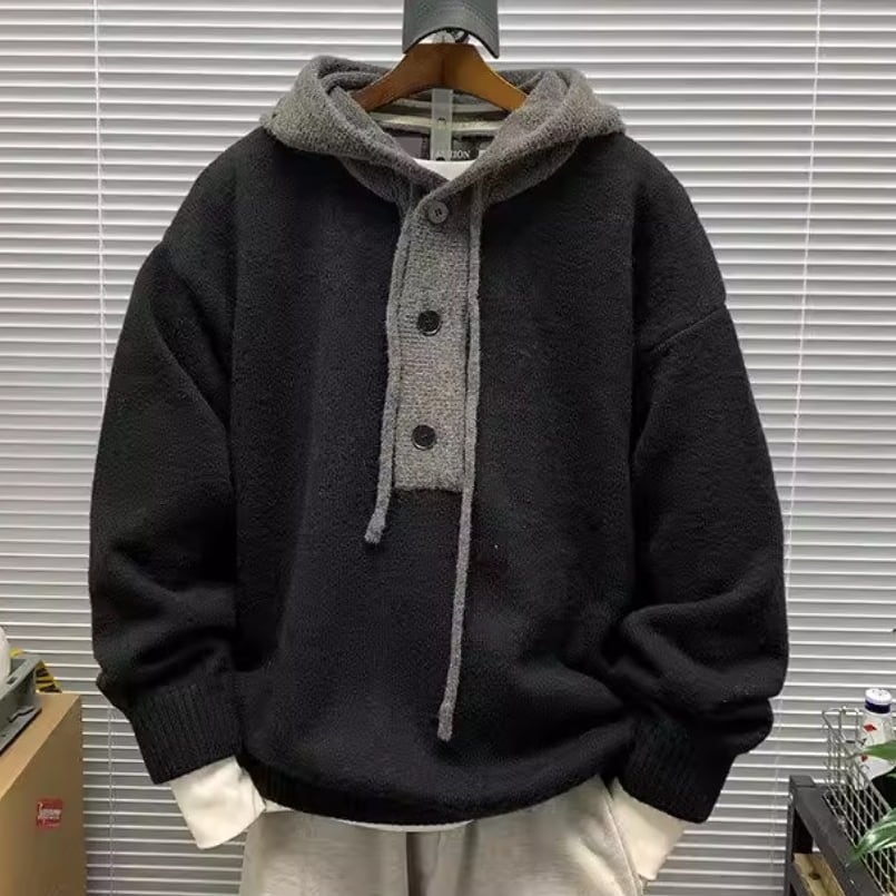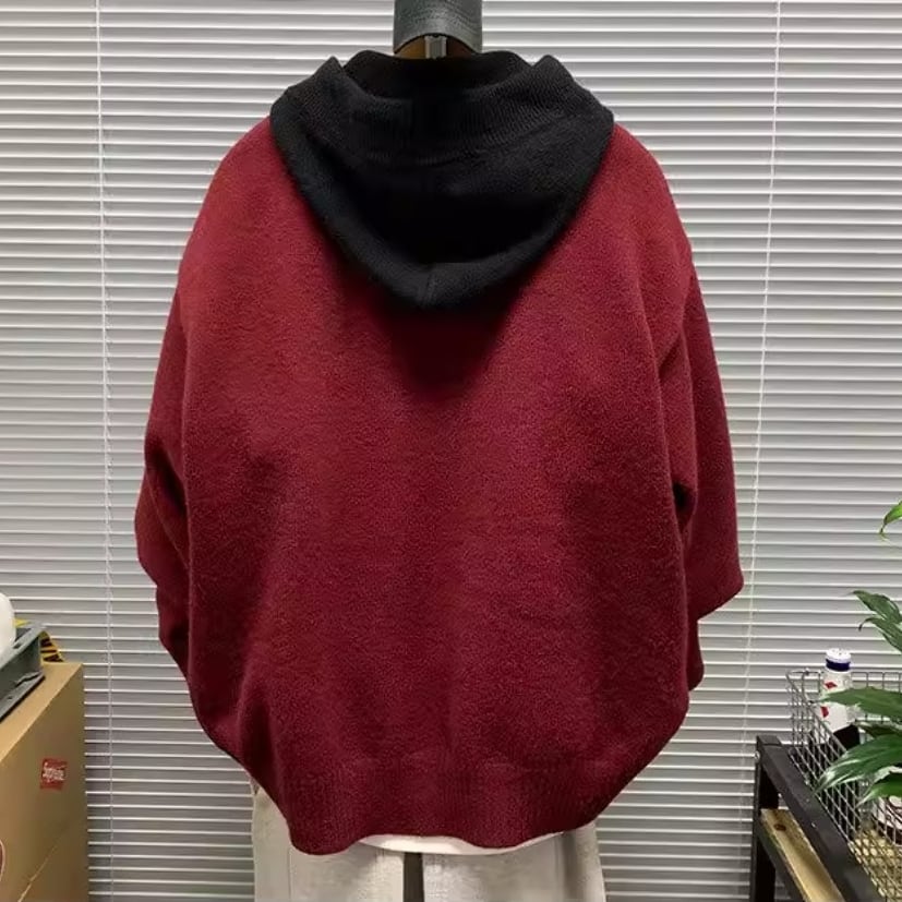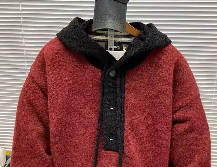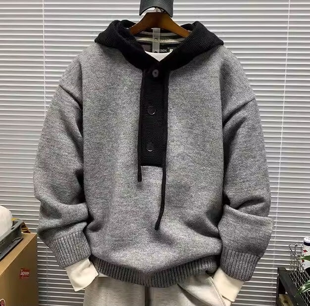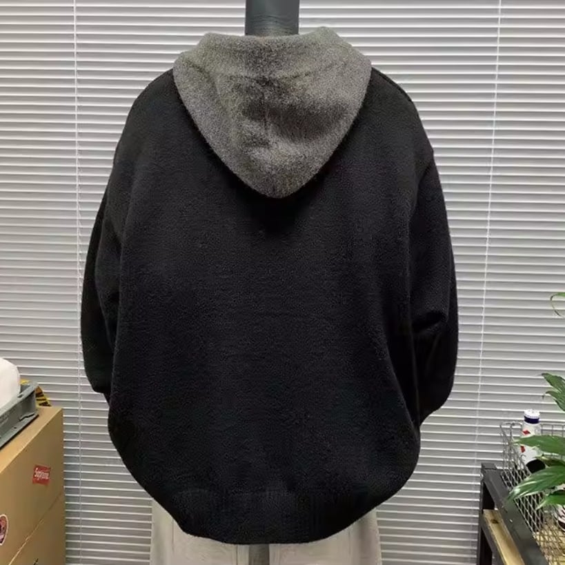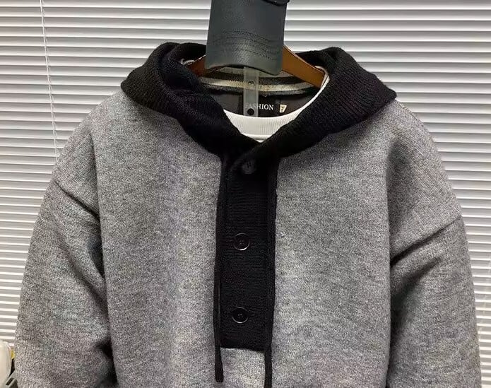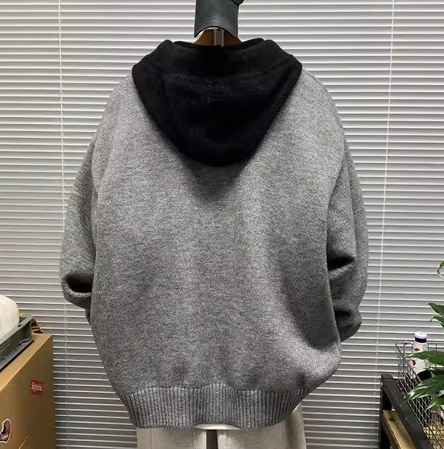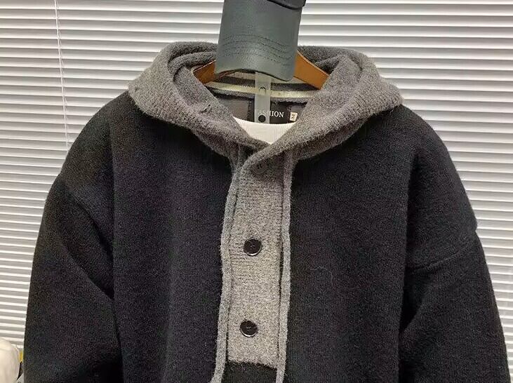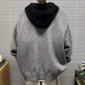 Contrast hoodie knit cardigan ( 3color )
