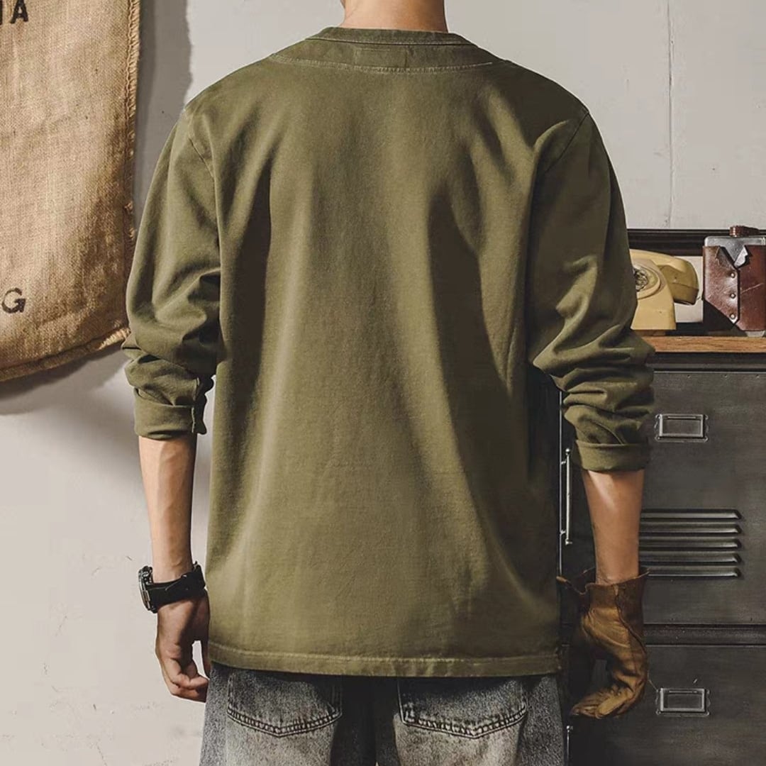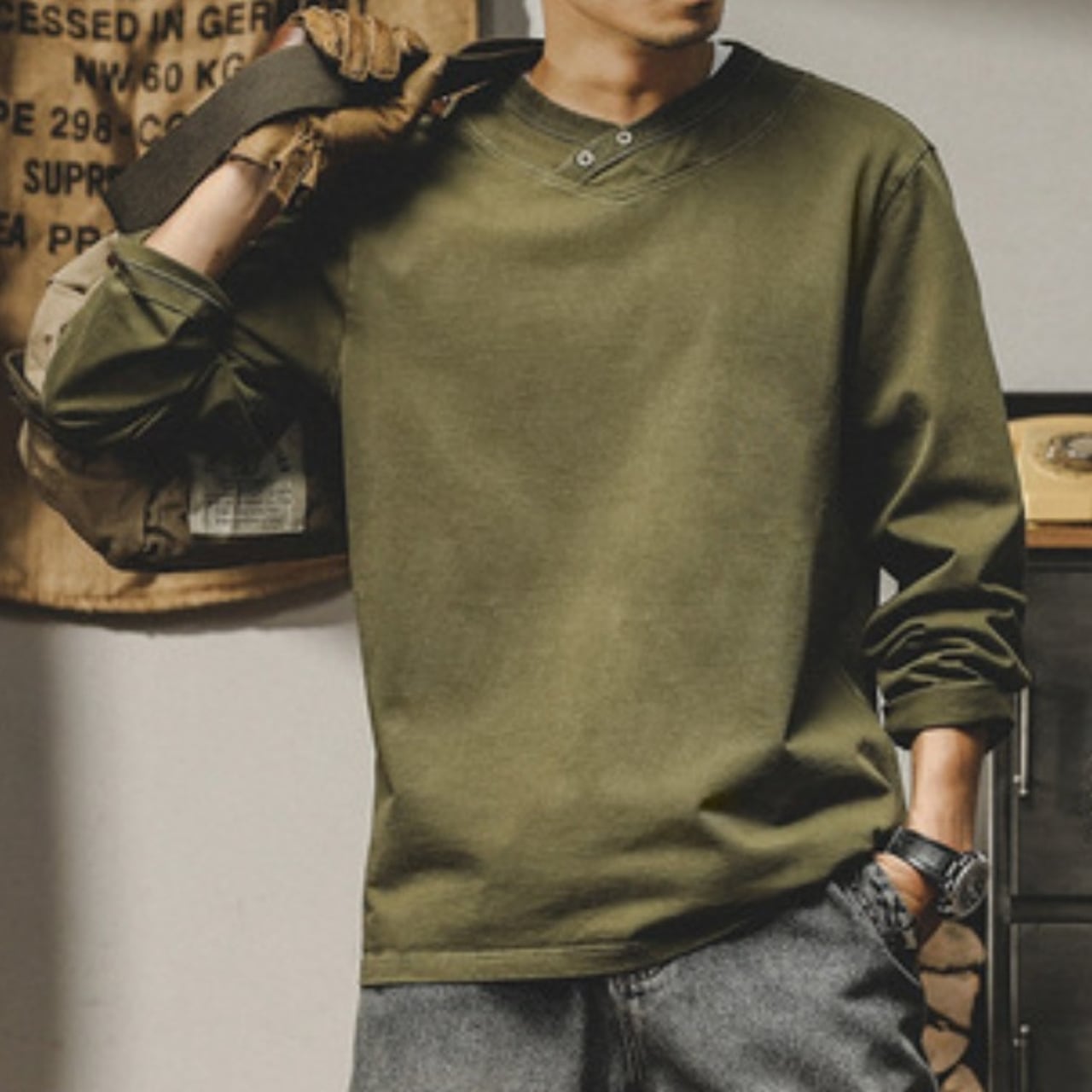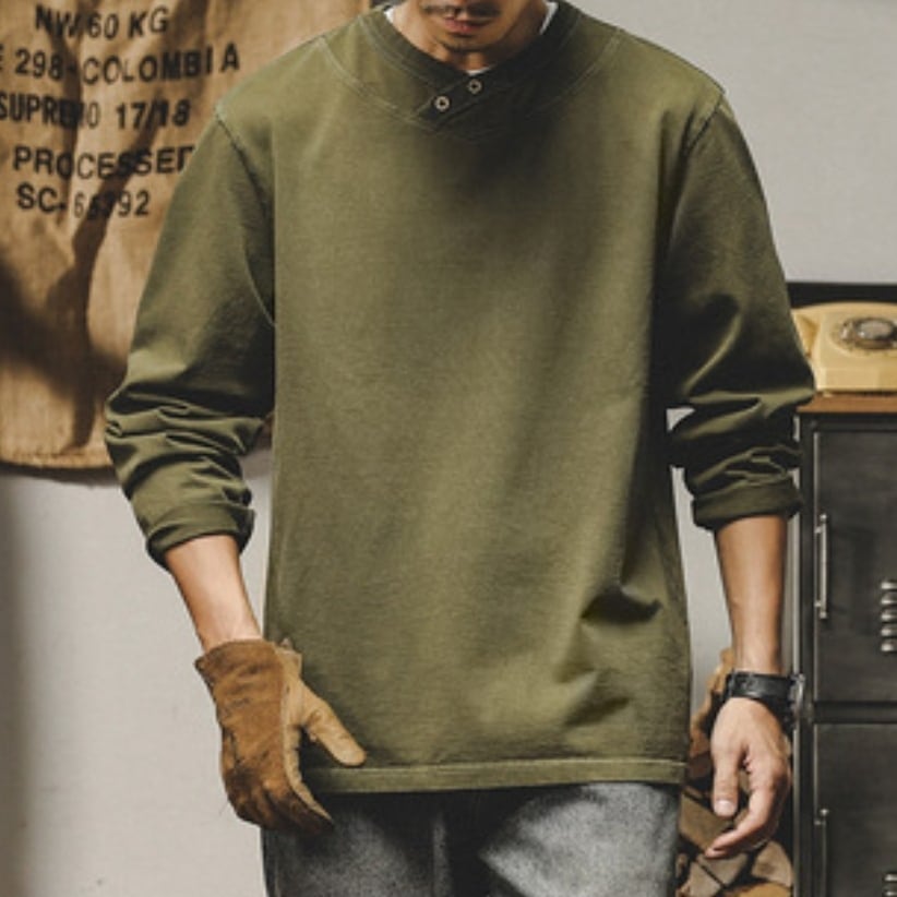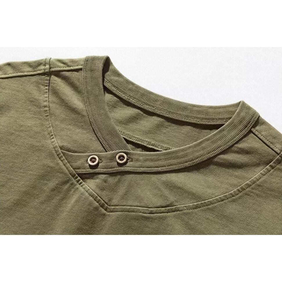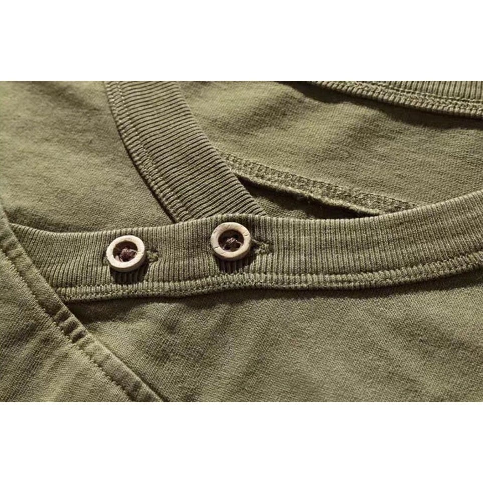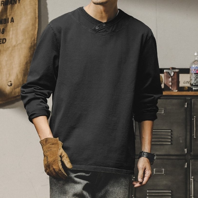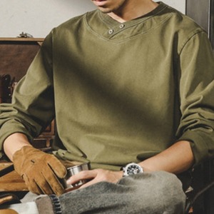 Henley neck heavy long t shirt ( 2color )