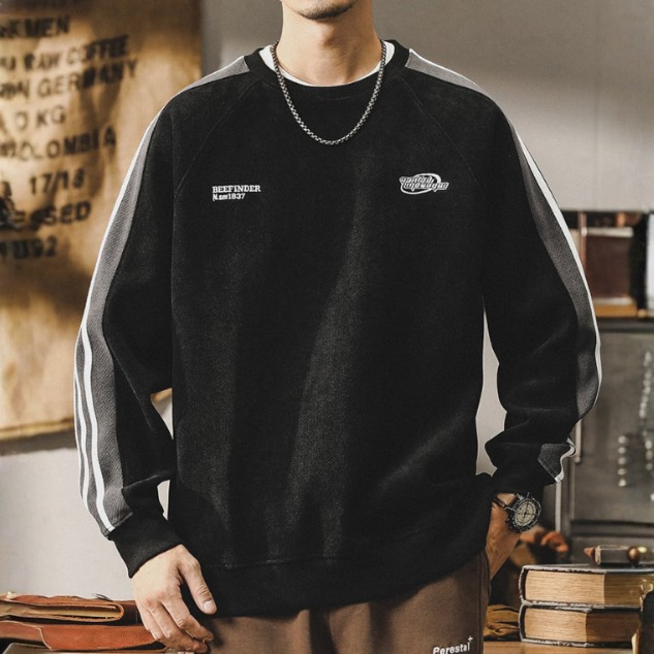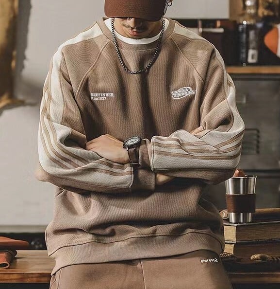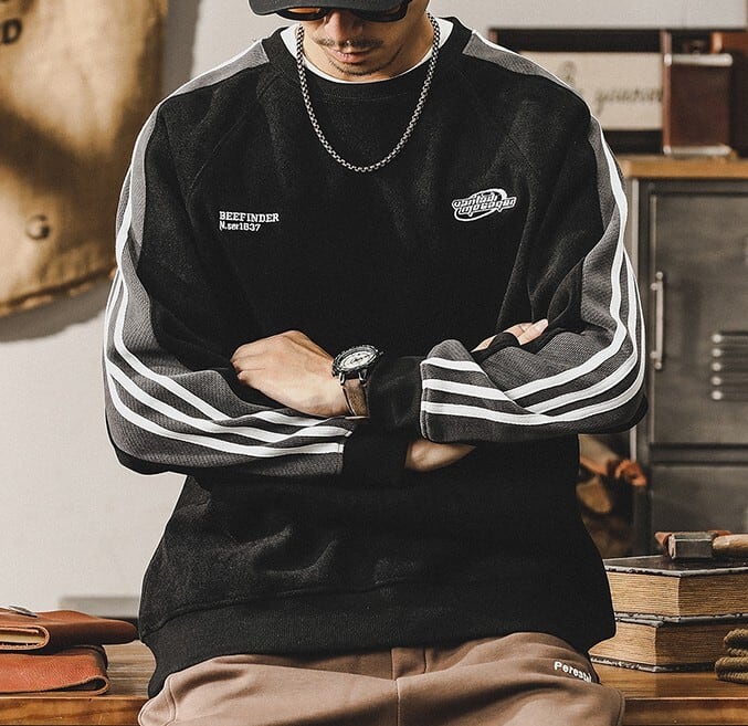 Chest logo retro sleeve line sweat ( 2color )