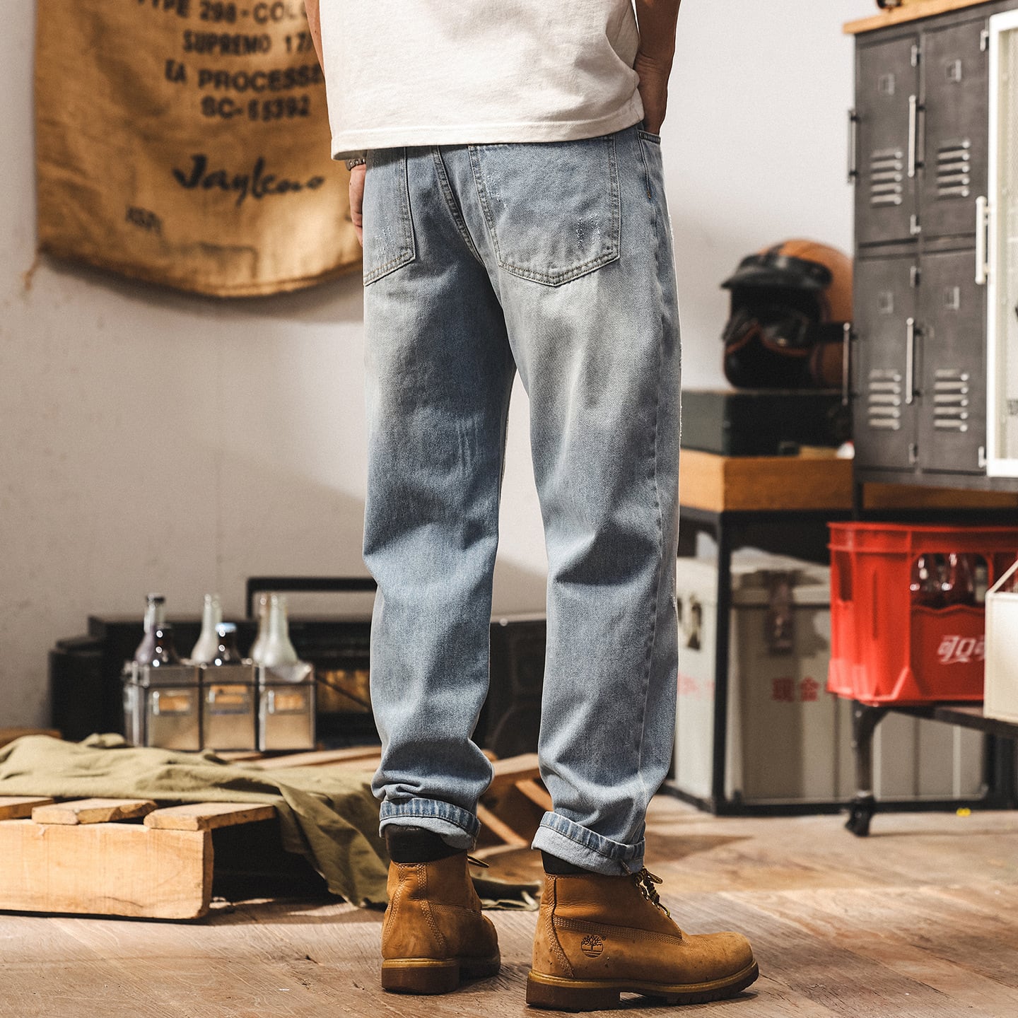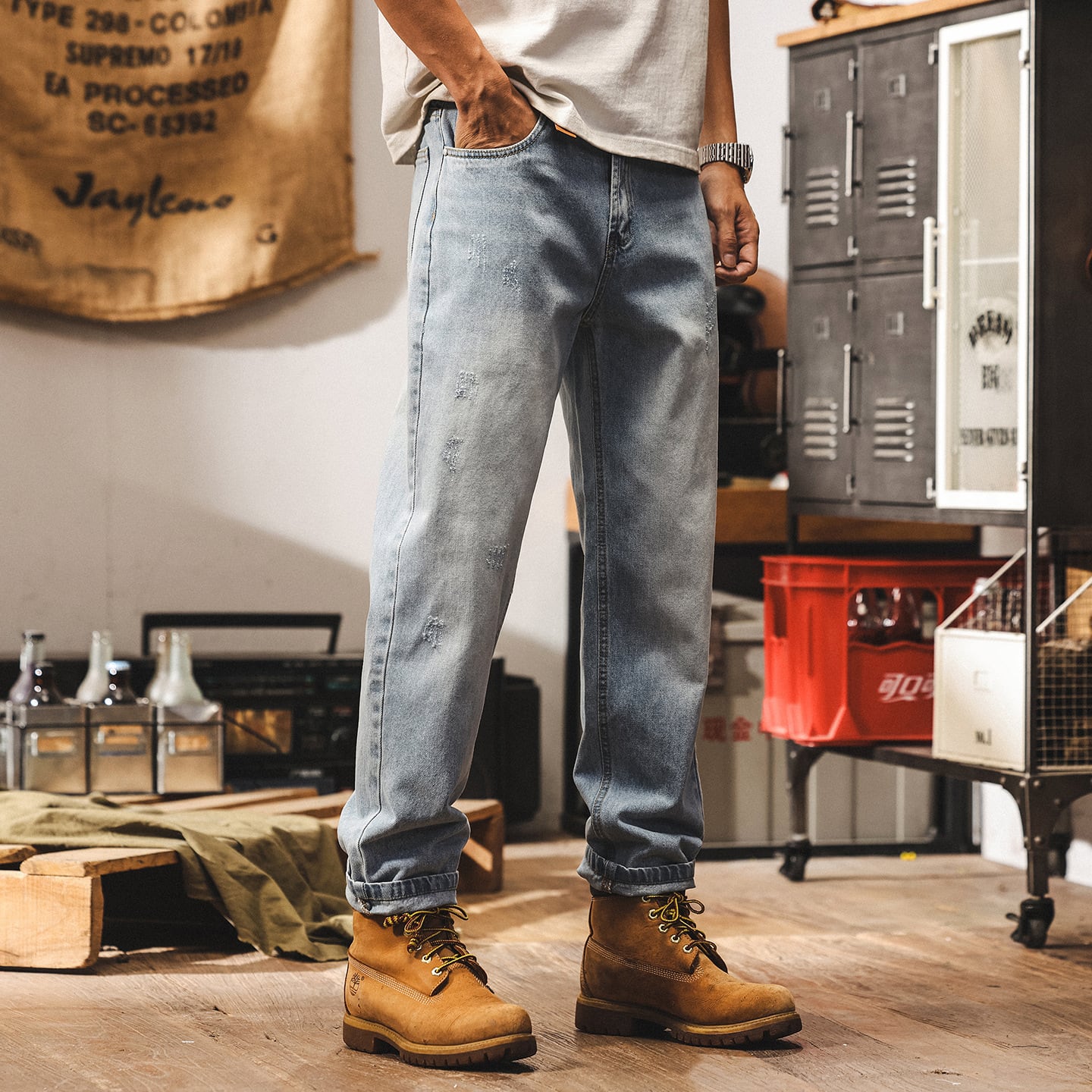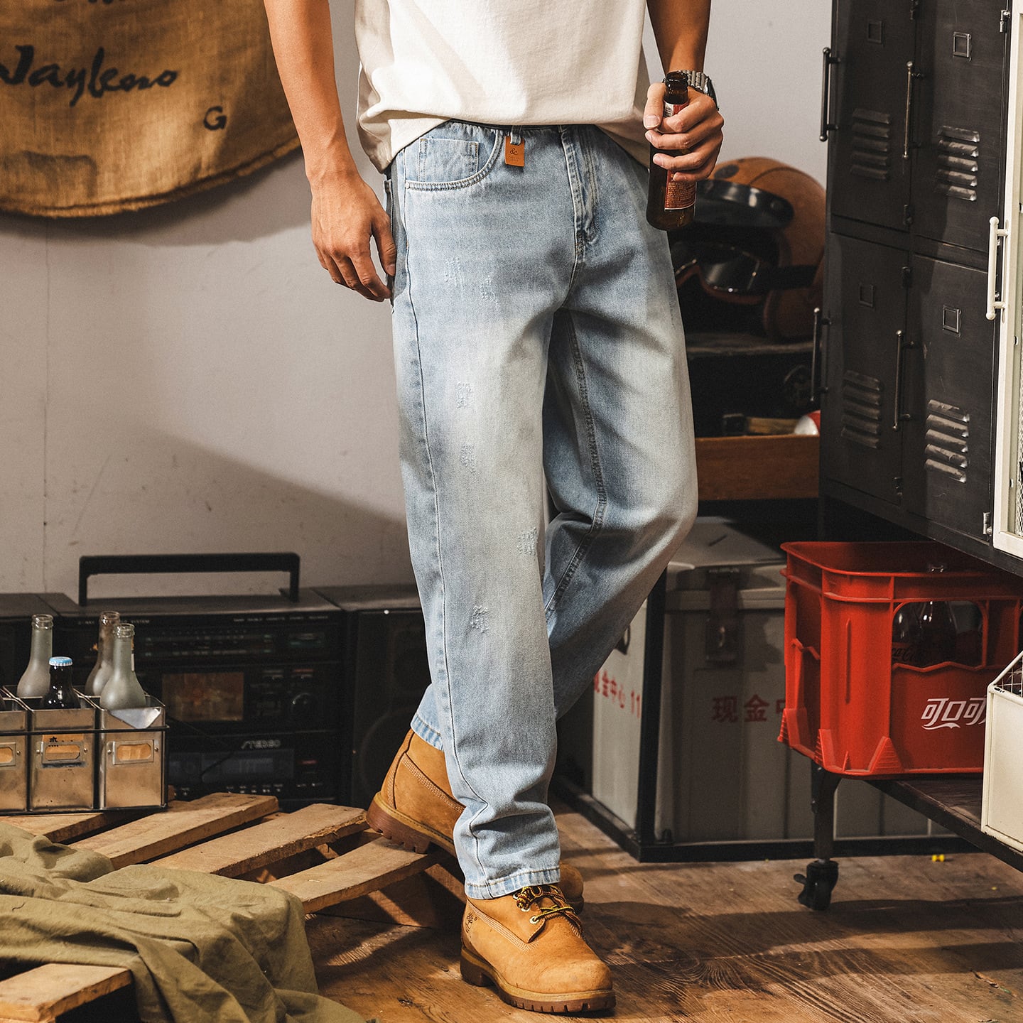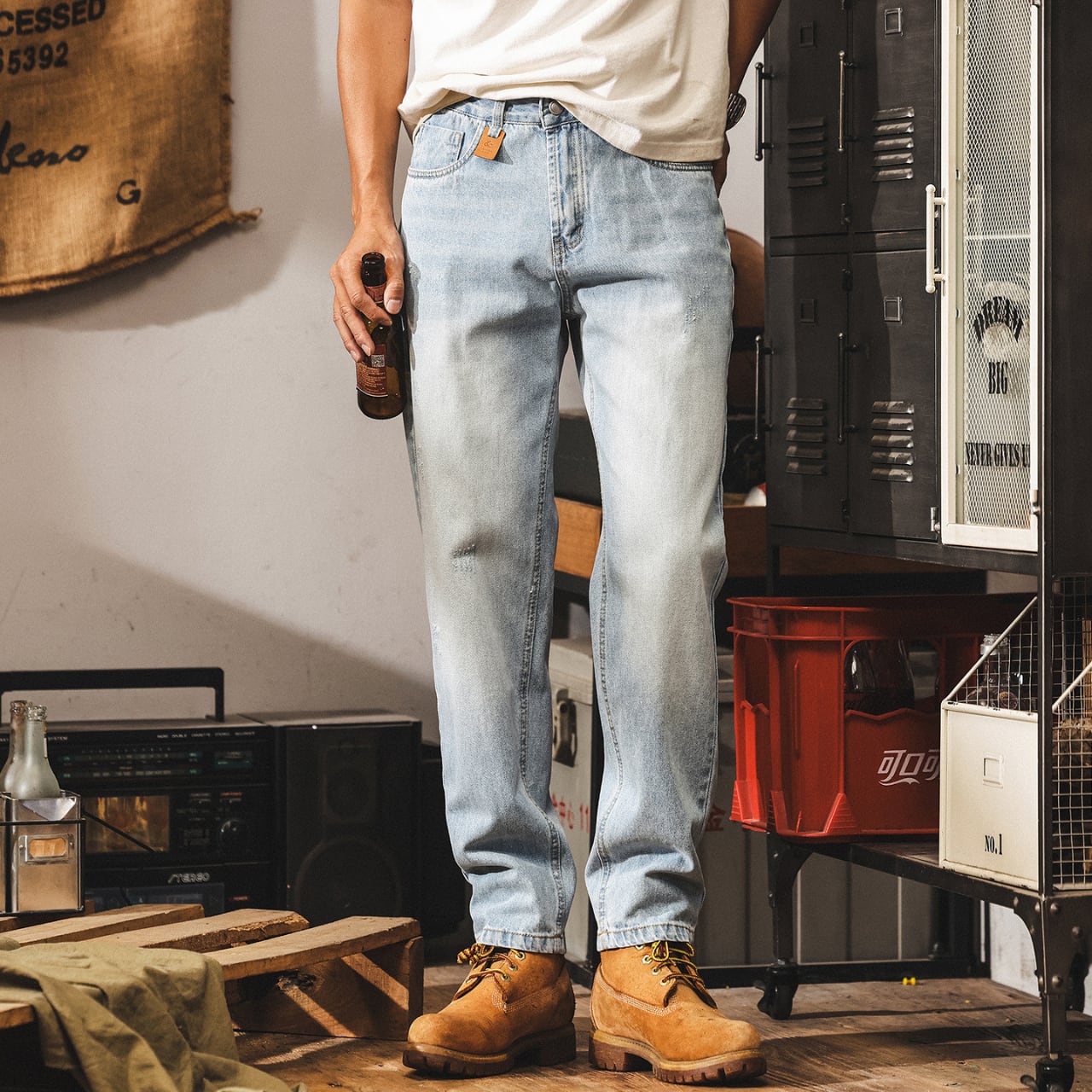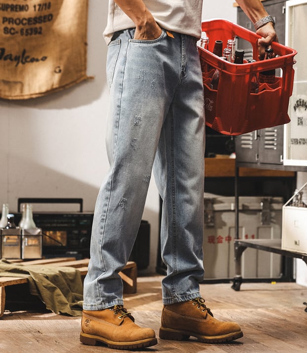 Vintage wash tapered denim