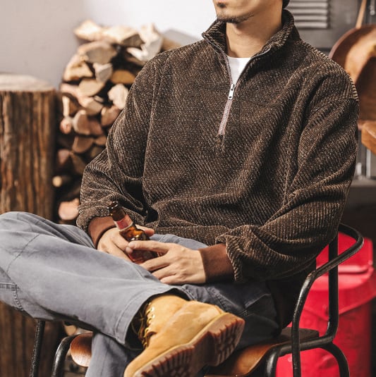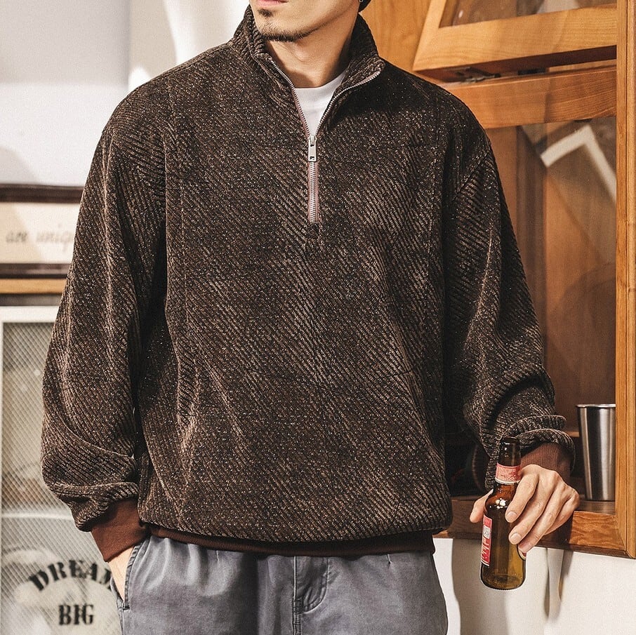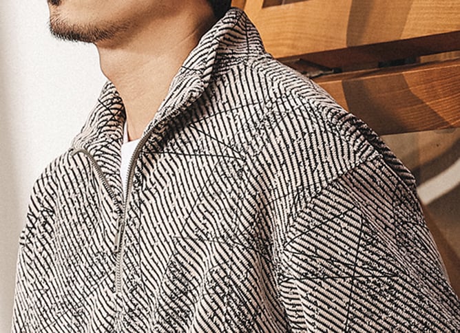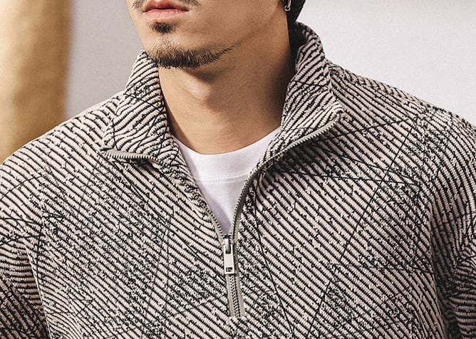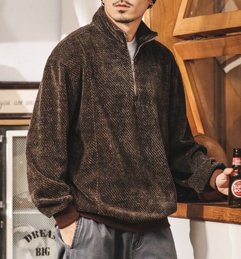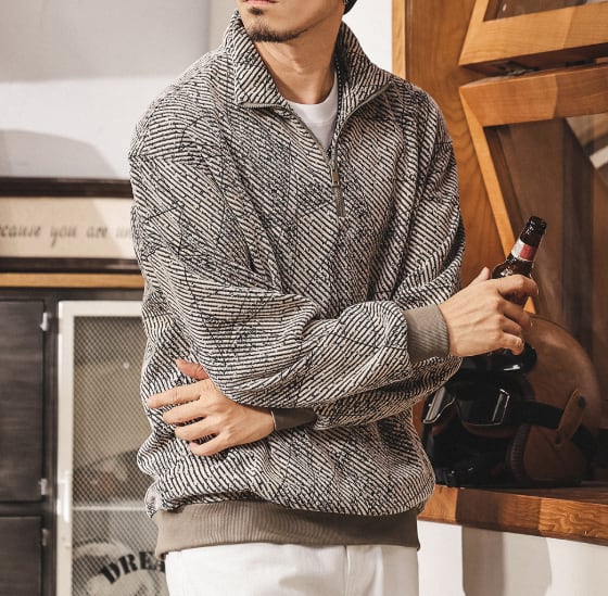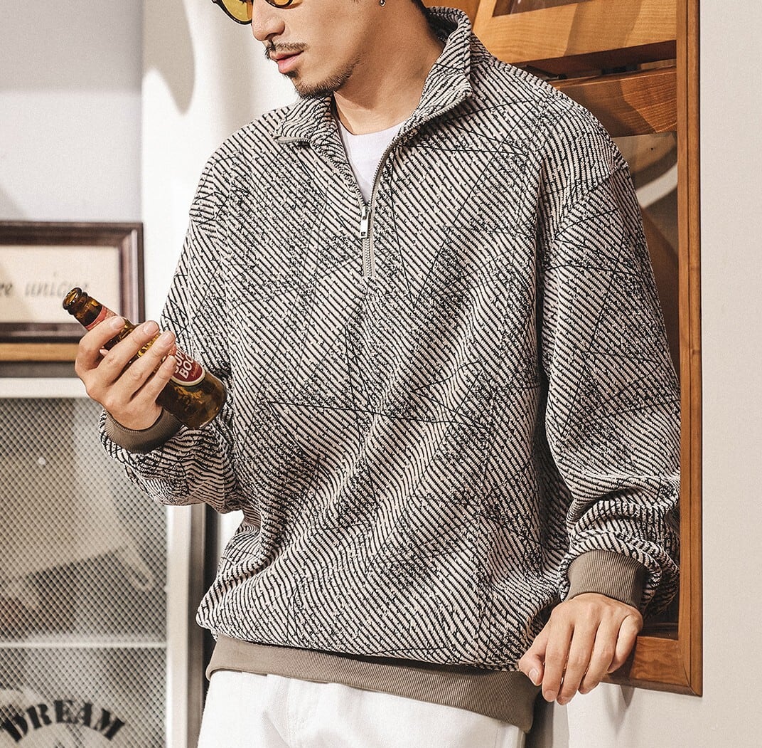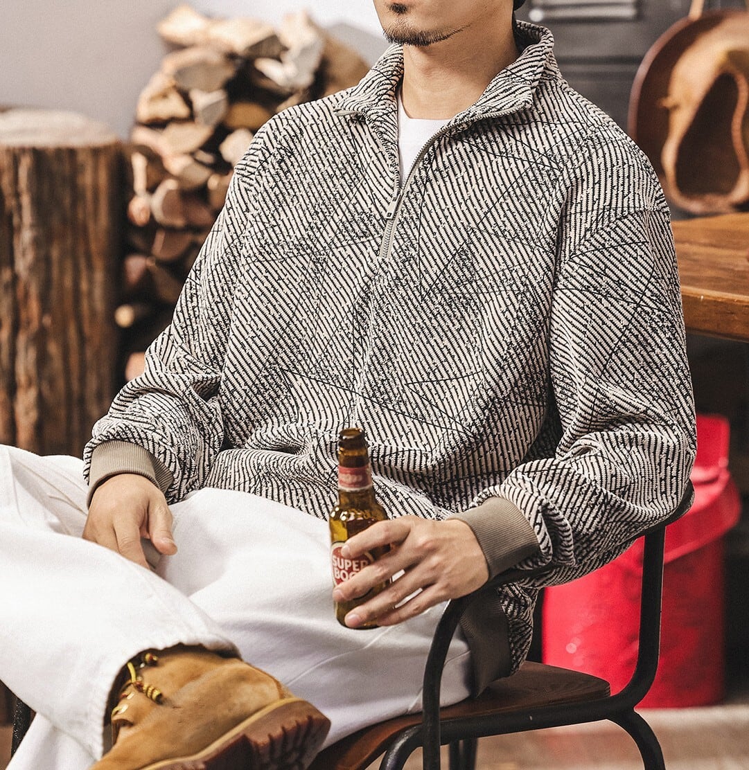 Stand collar half zip jacquard sweat ( 2color )