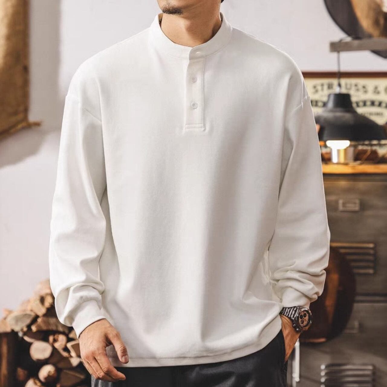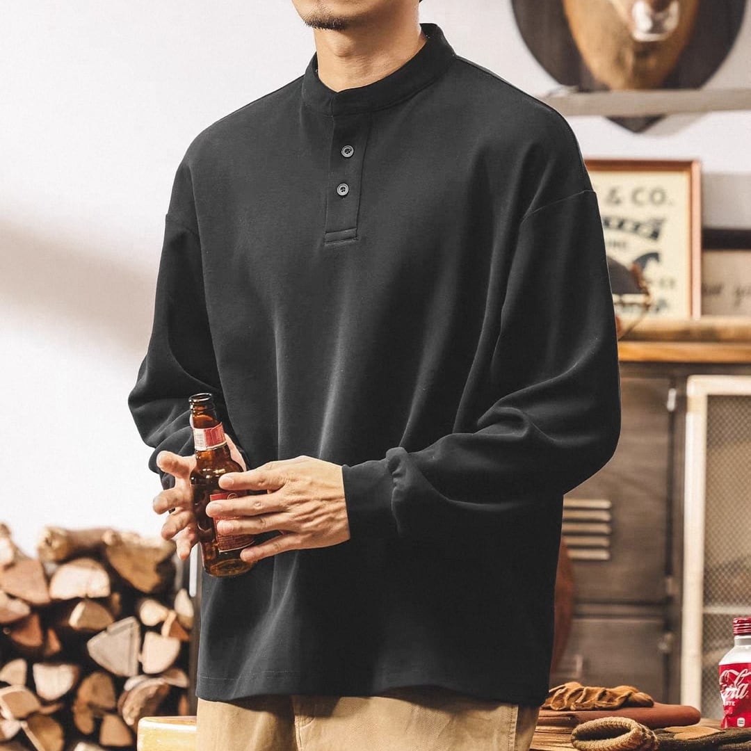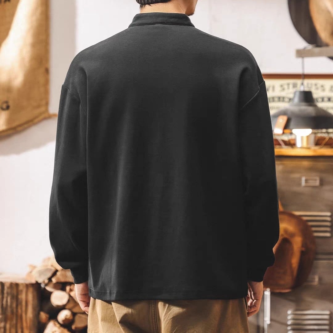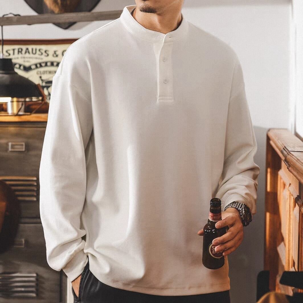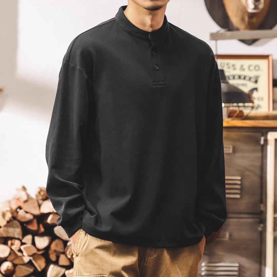 Henley neck vintage heavy long t shirt ( 3color )
