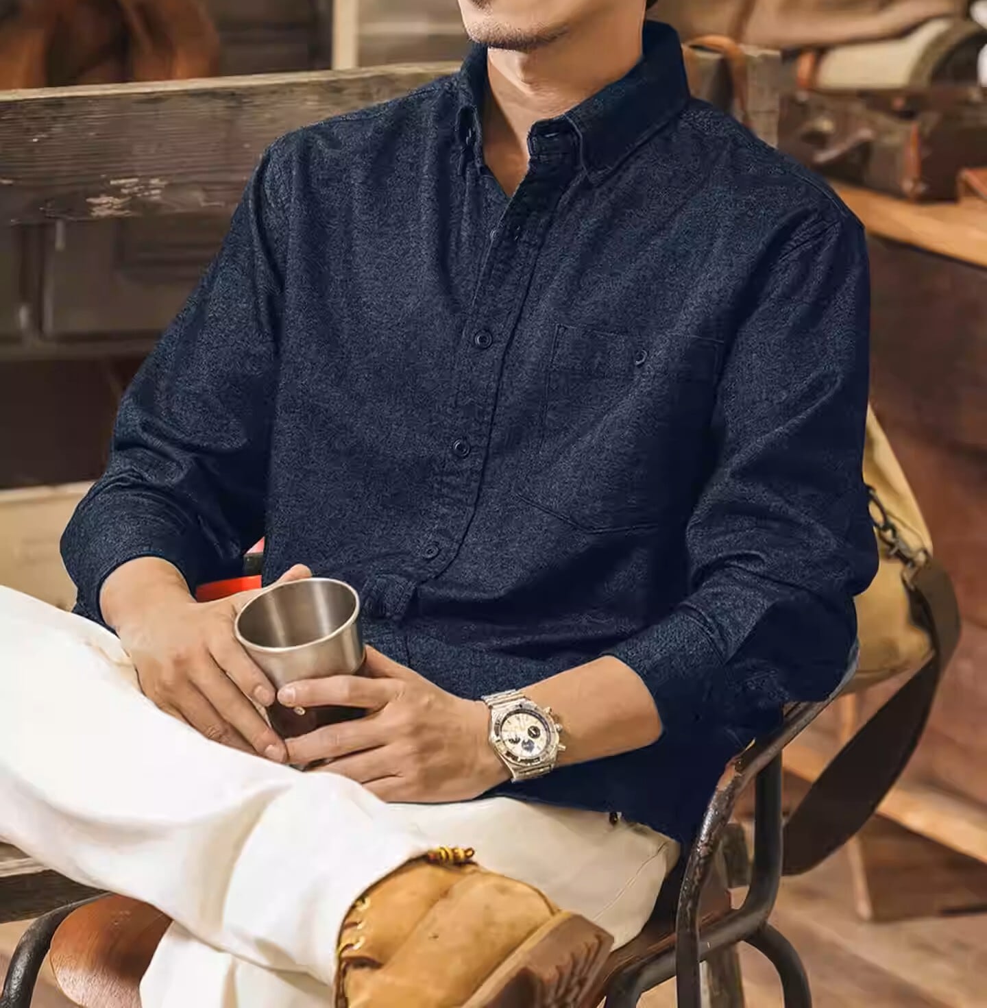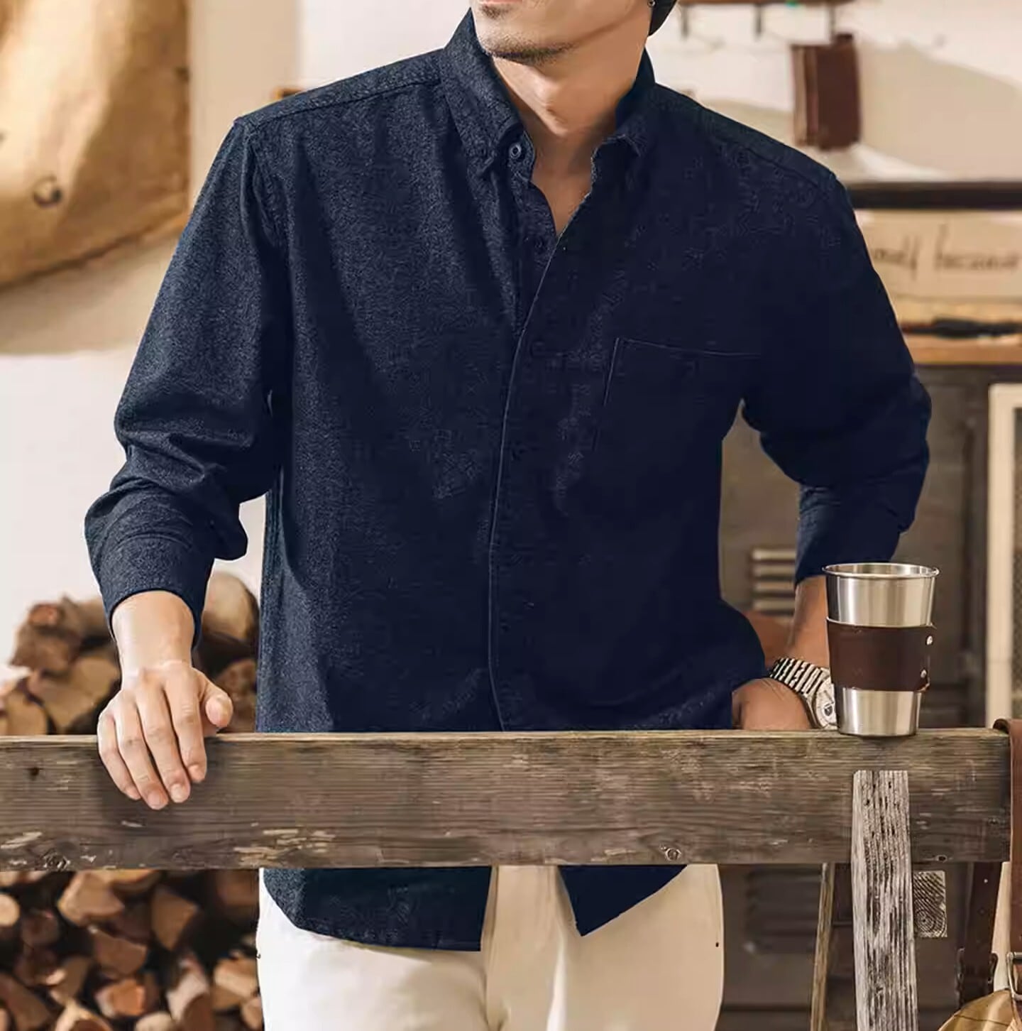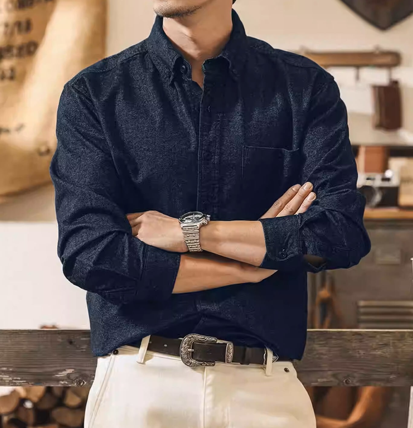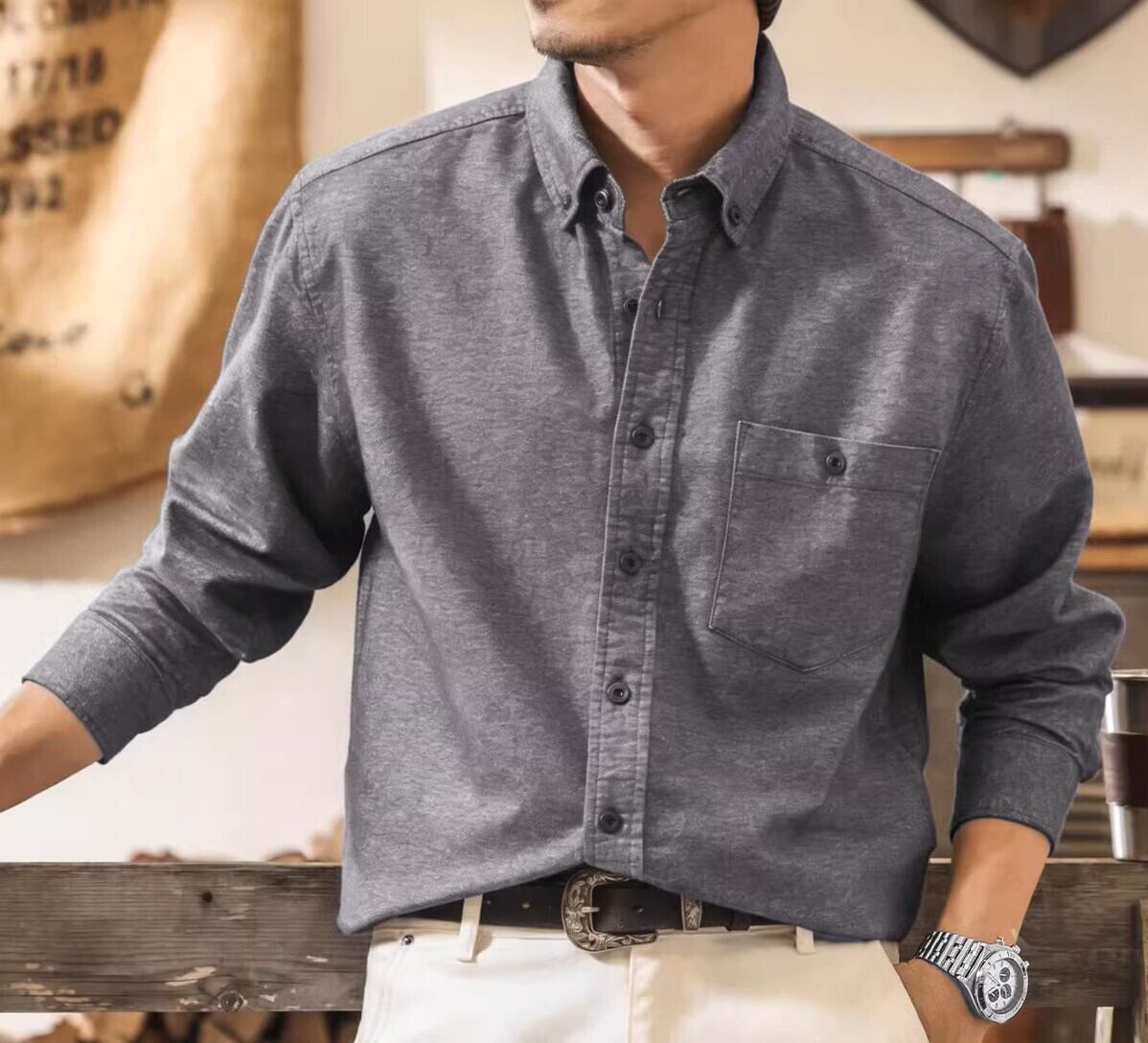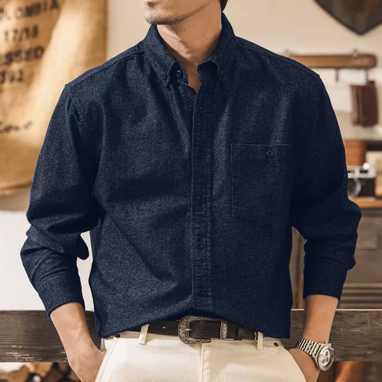 Single pocket vintage soft shirt ( 3color )