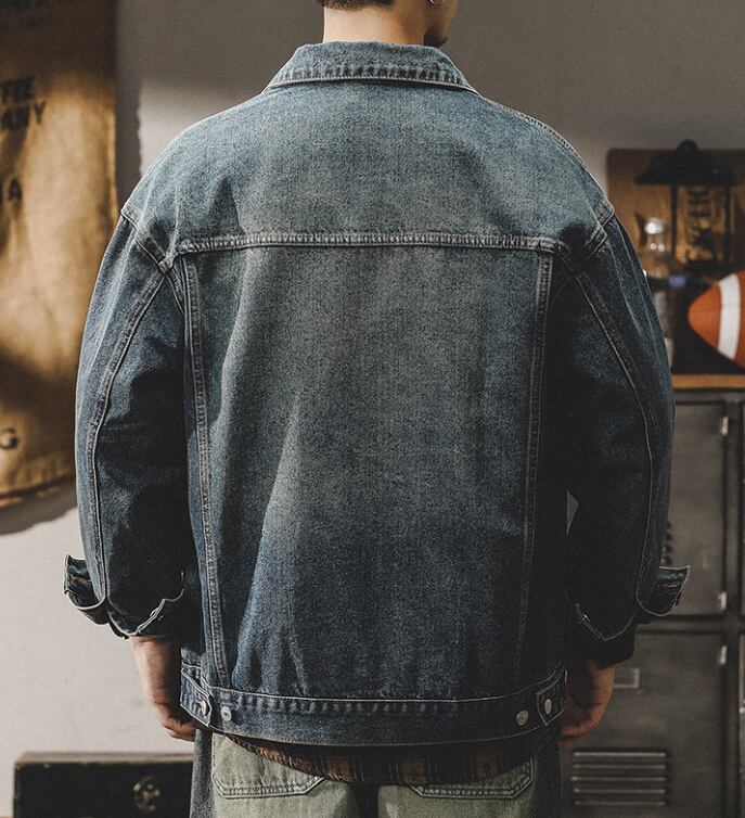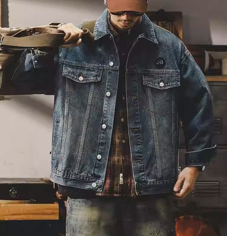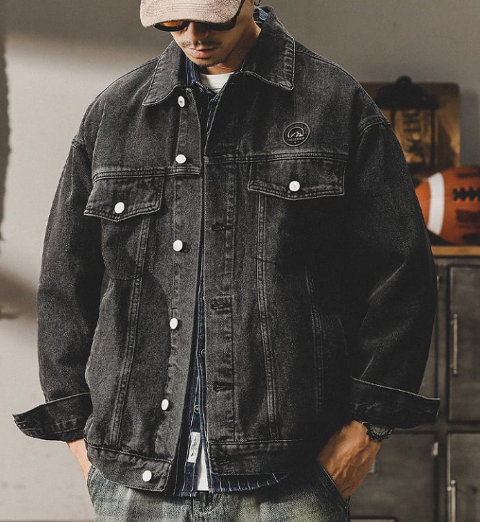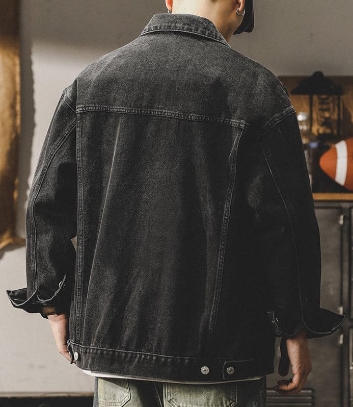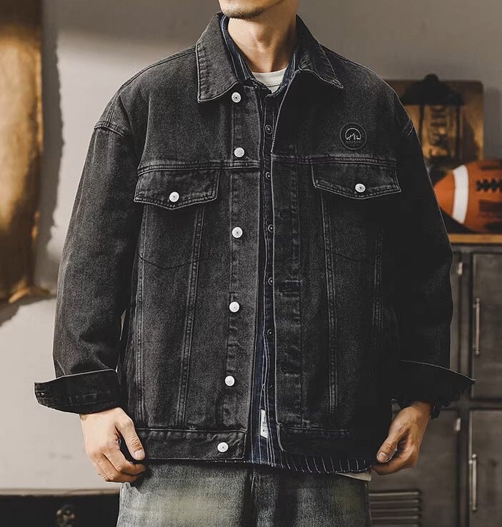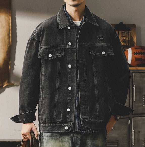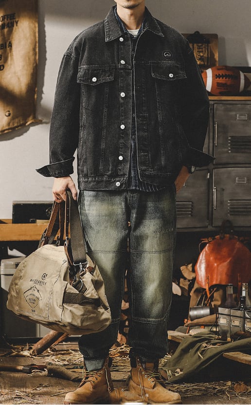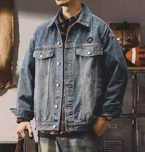 Chest logo vintage denim jacket ( 2color )
