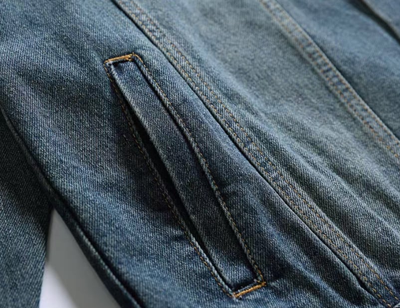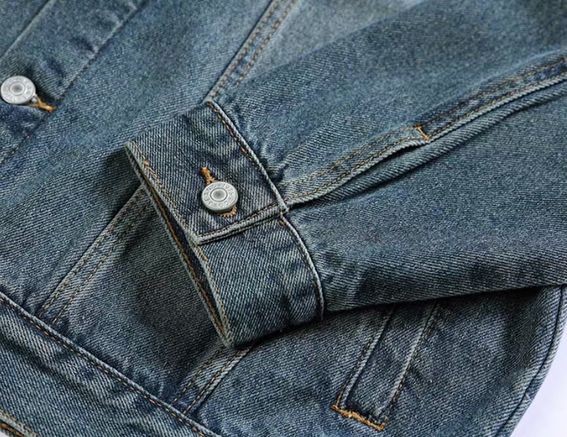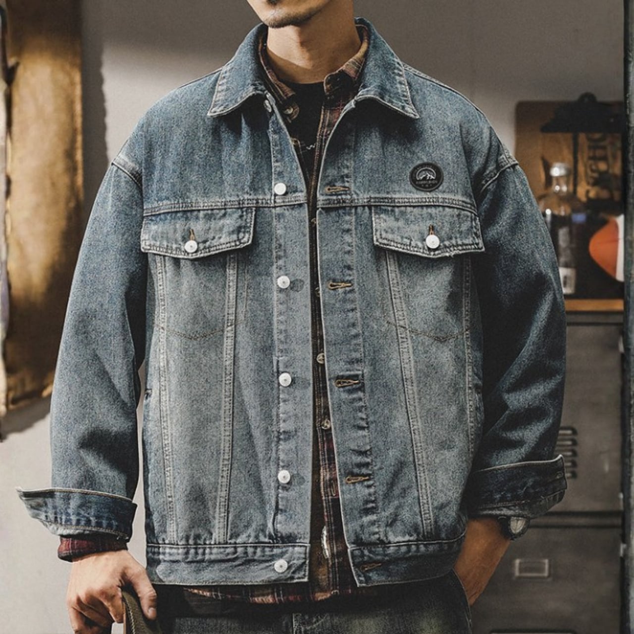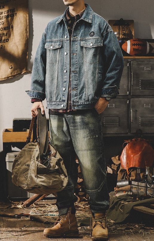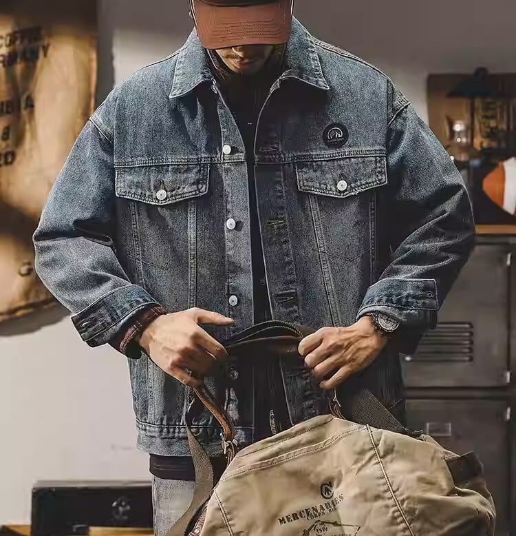 Chest logo vintage denim jacket ( 2color )