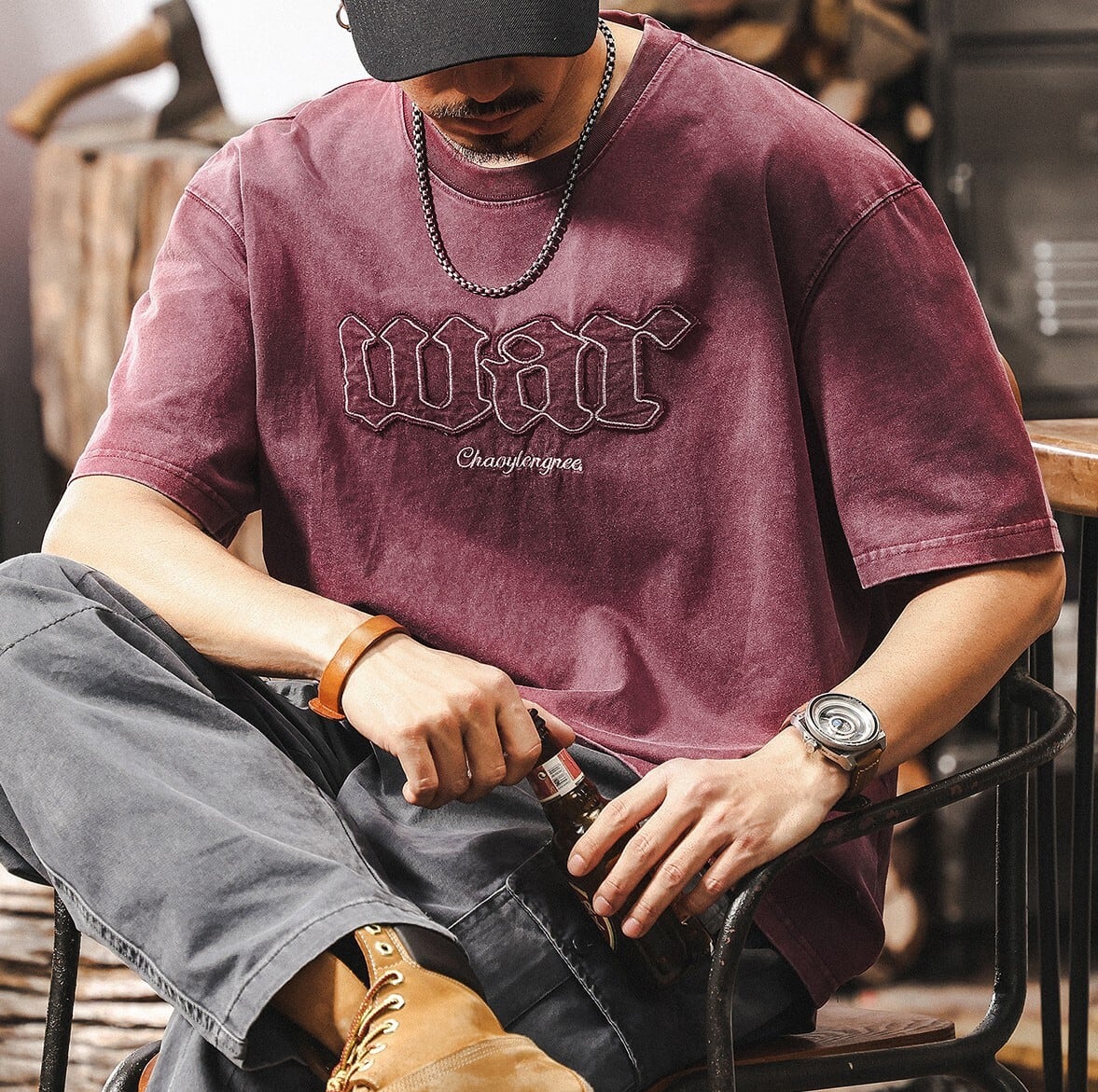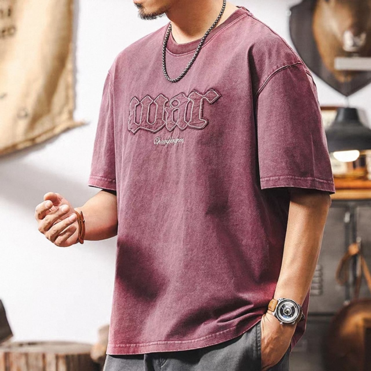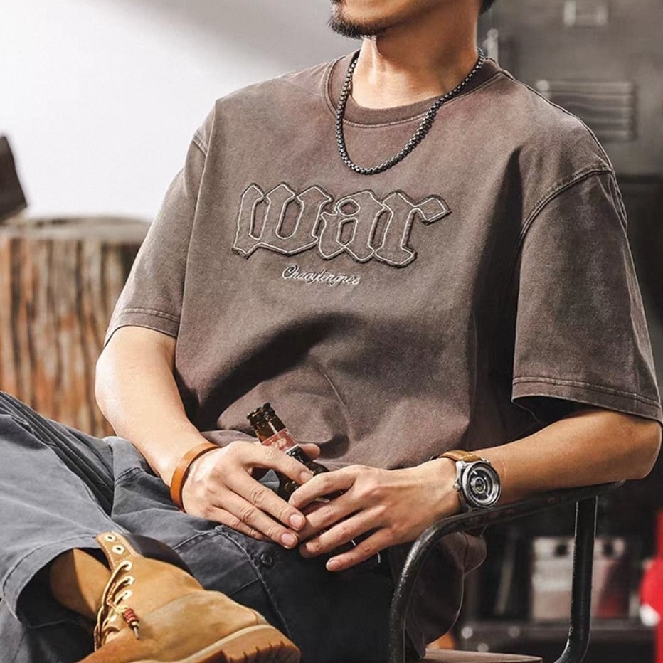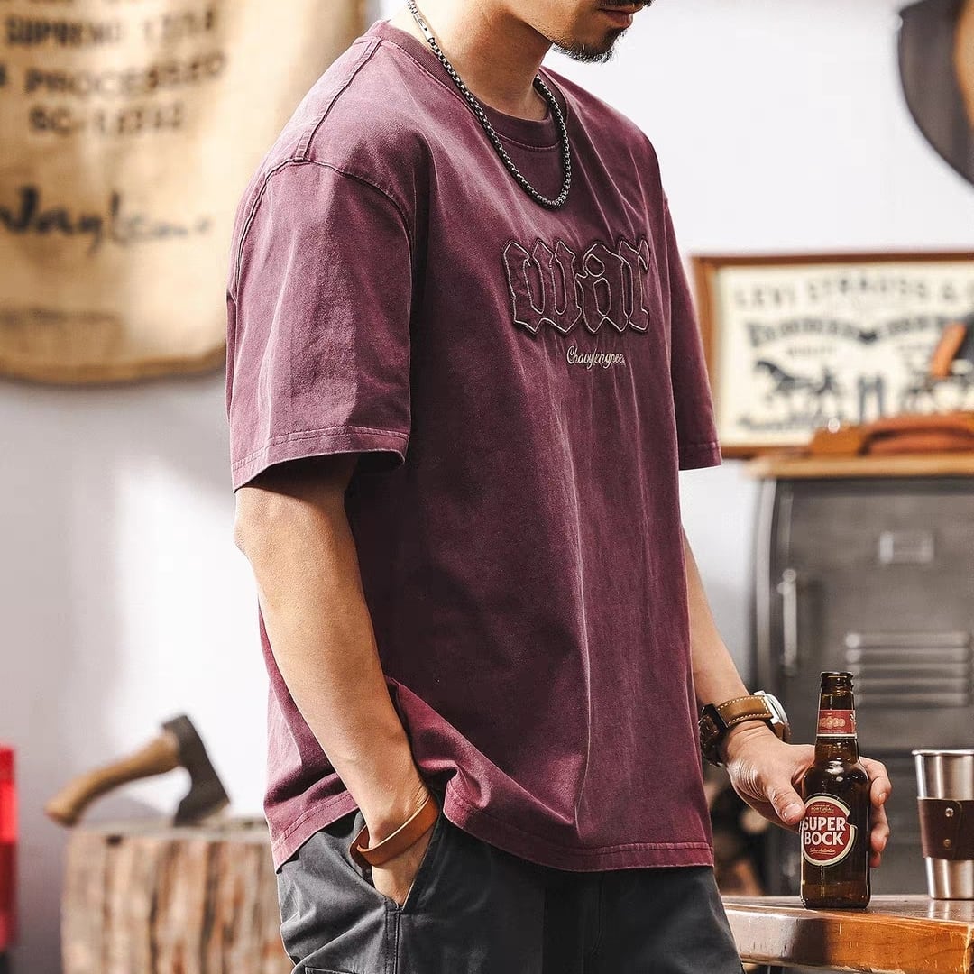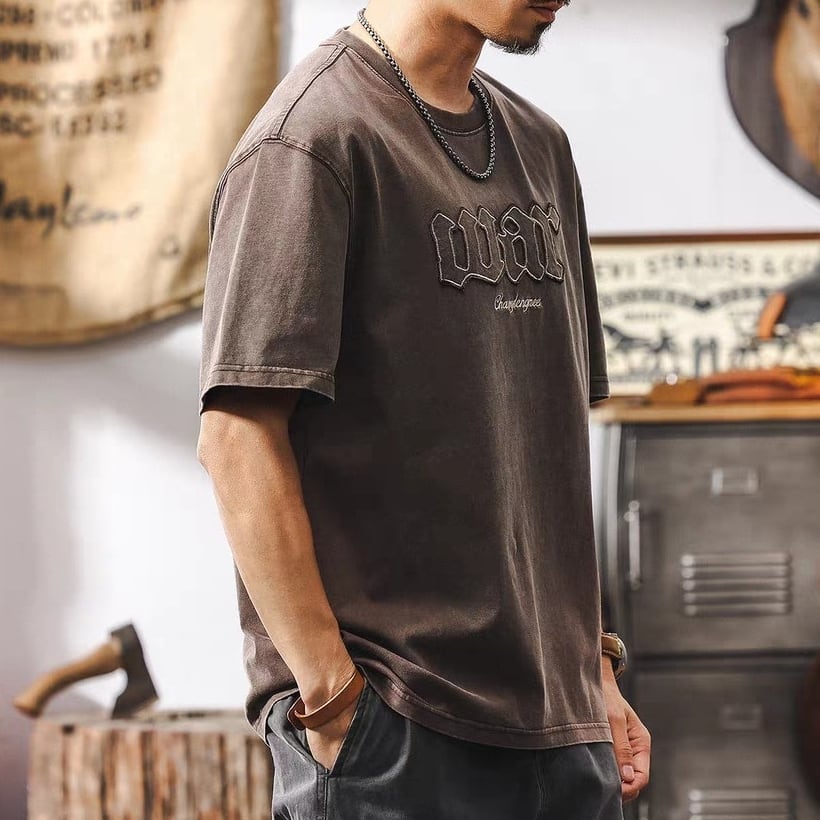 Vintage wash front logo design t shirt ( 3color )