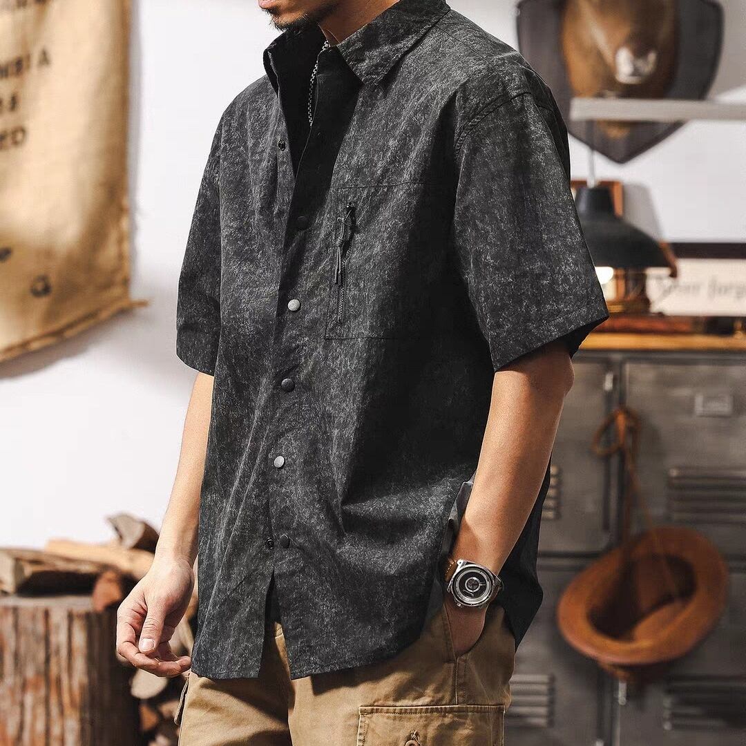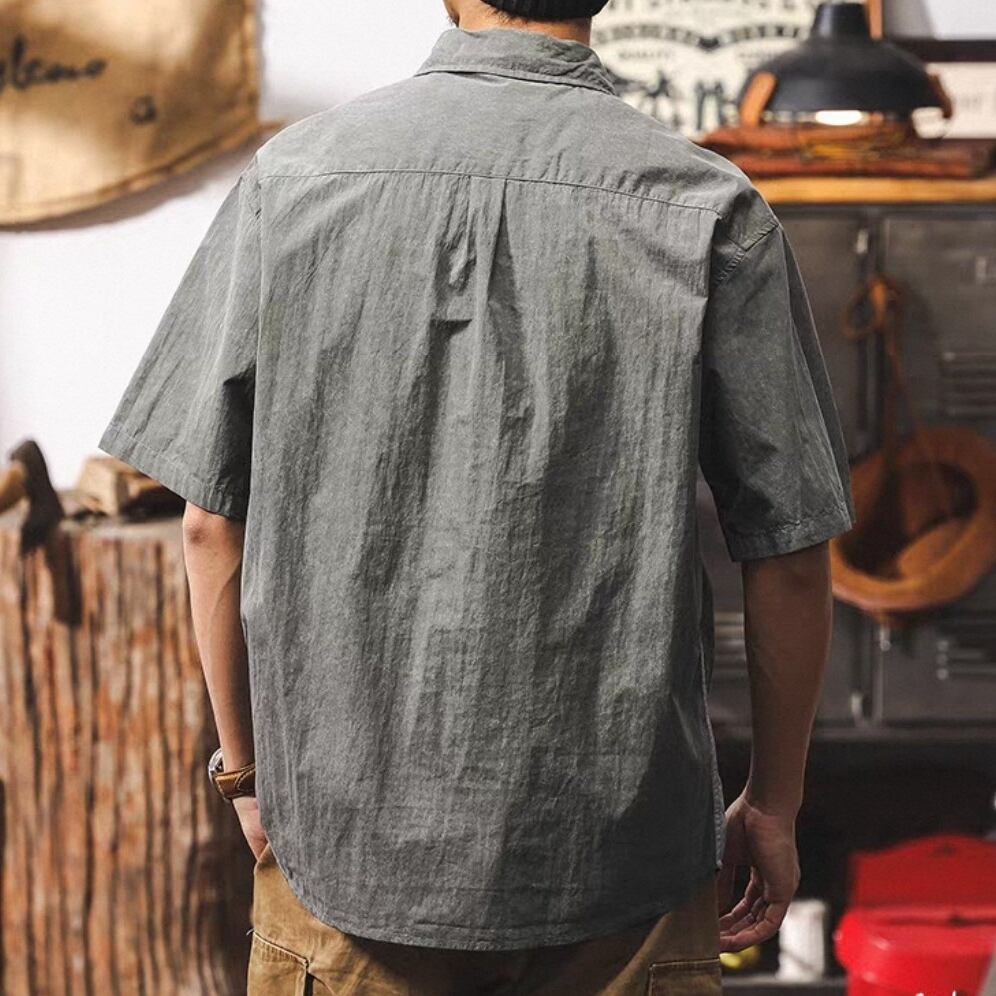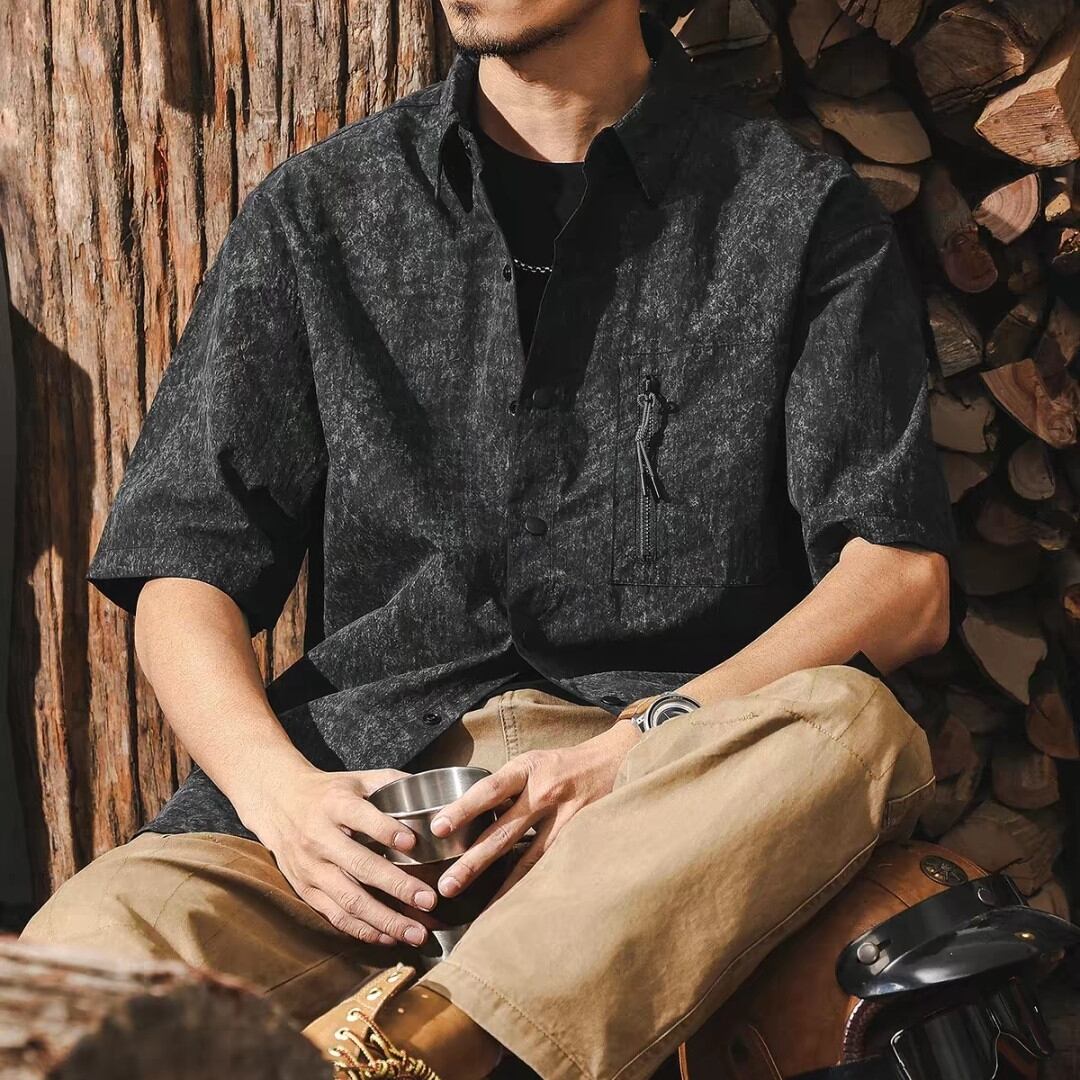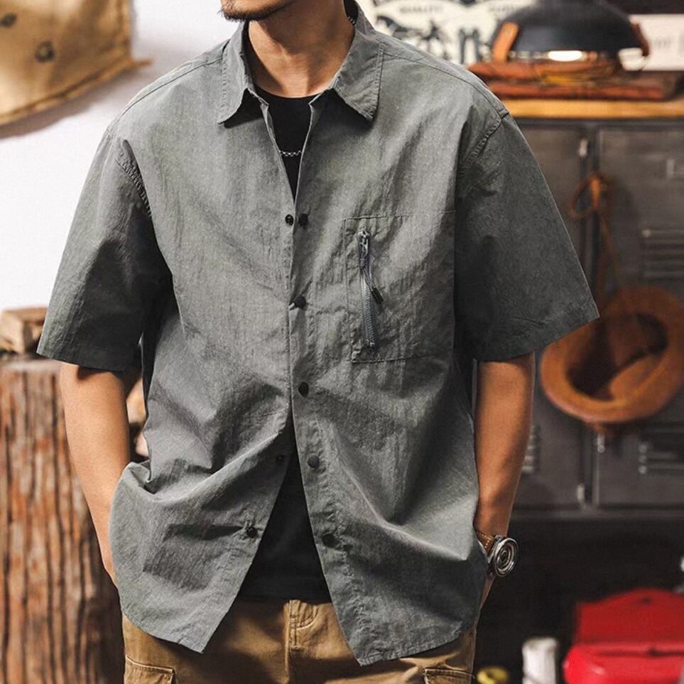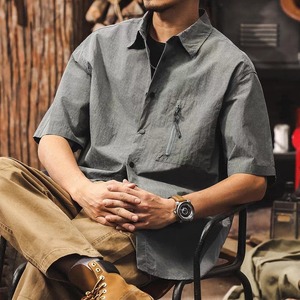 Half sleeve chest zip retro shirt ( 2color )