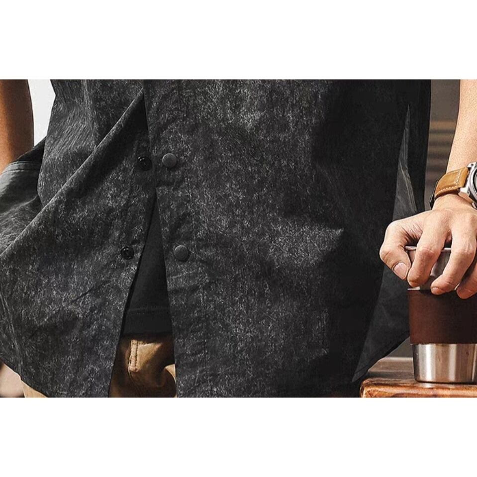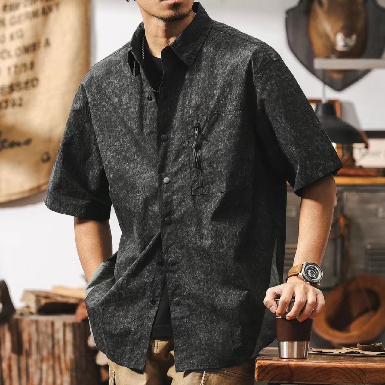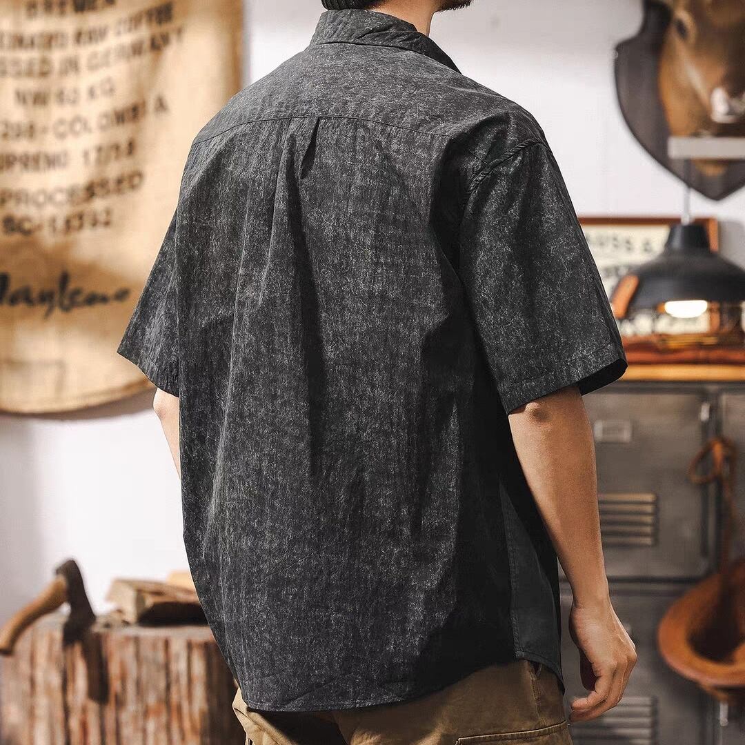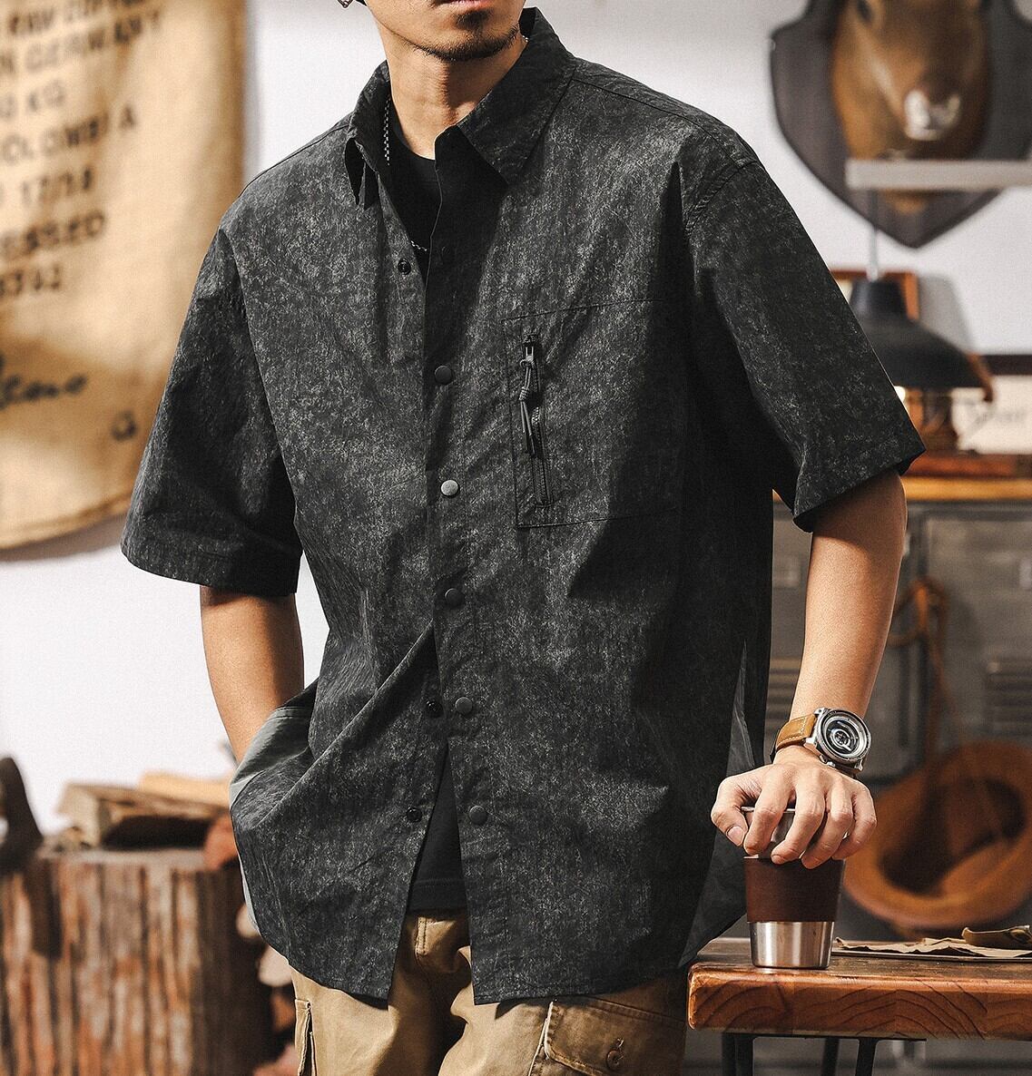 Half sleeve chest zip retro shirt ( 2color )