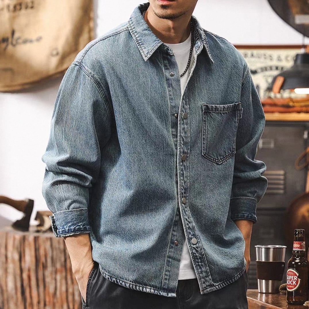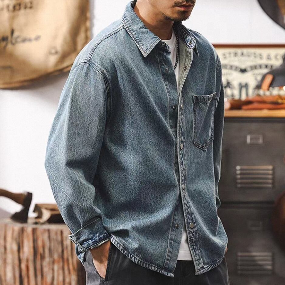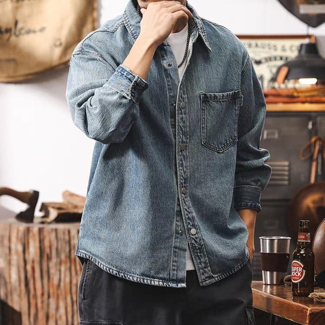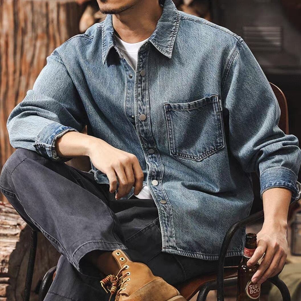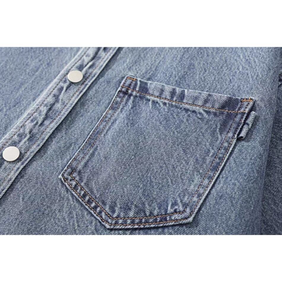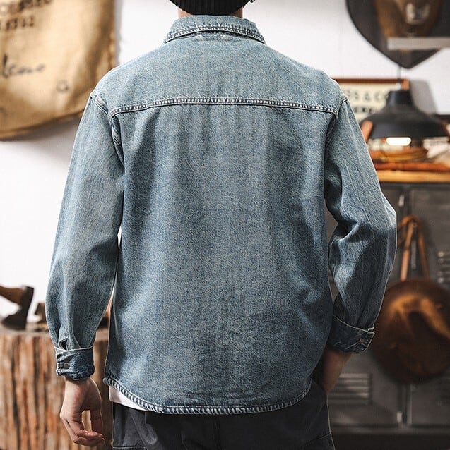Single pocket vintage wash denim shirt