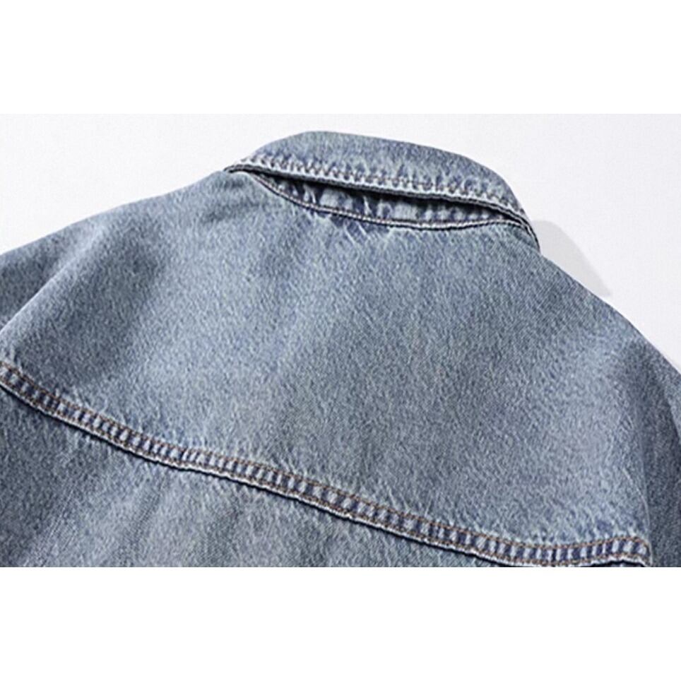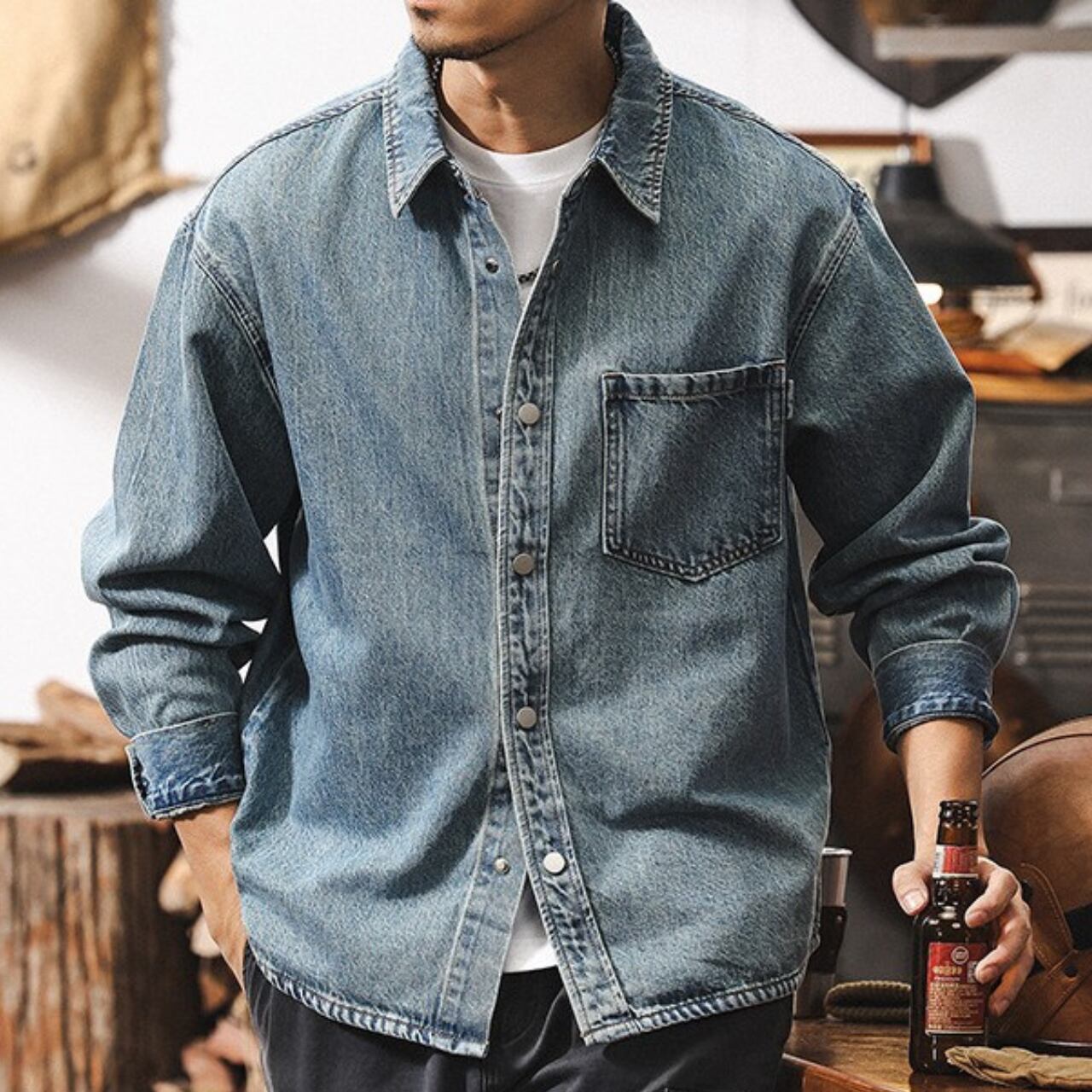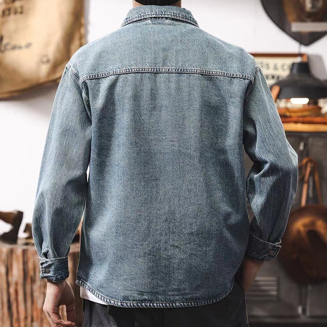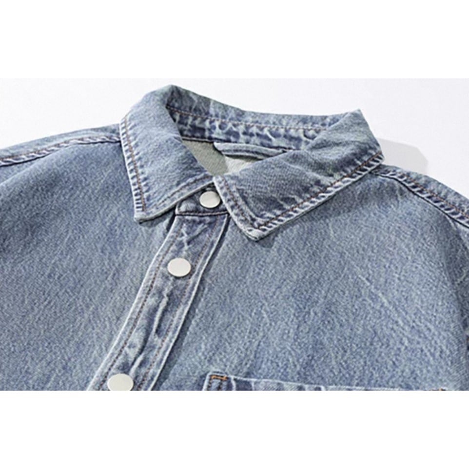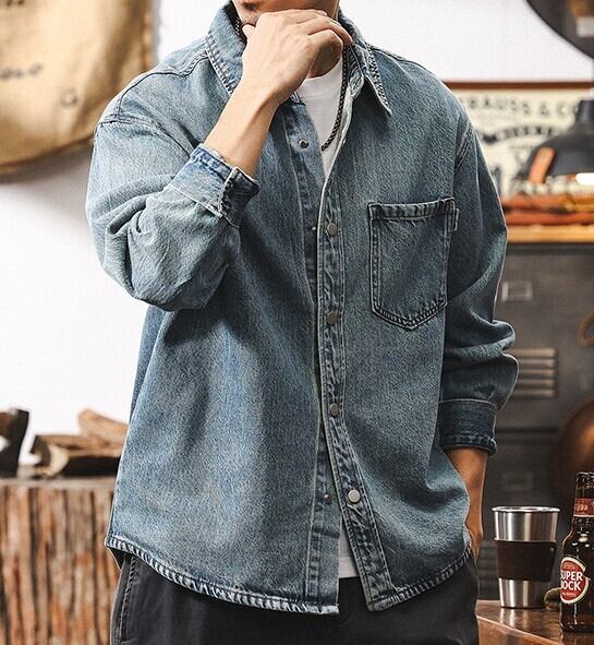 Single pocket vintage wash denim shirt
