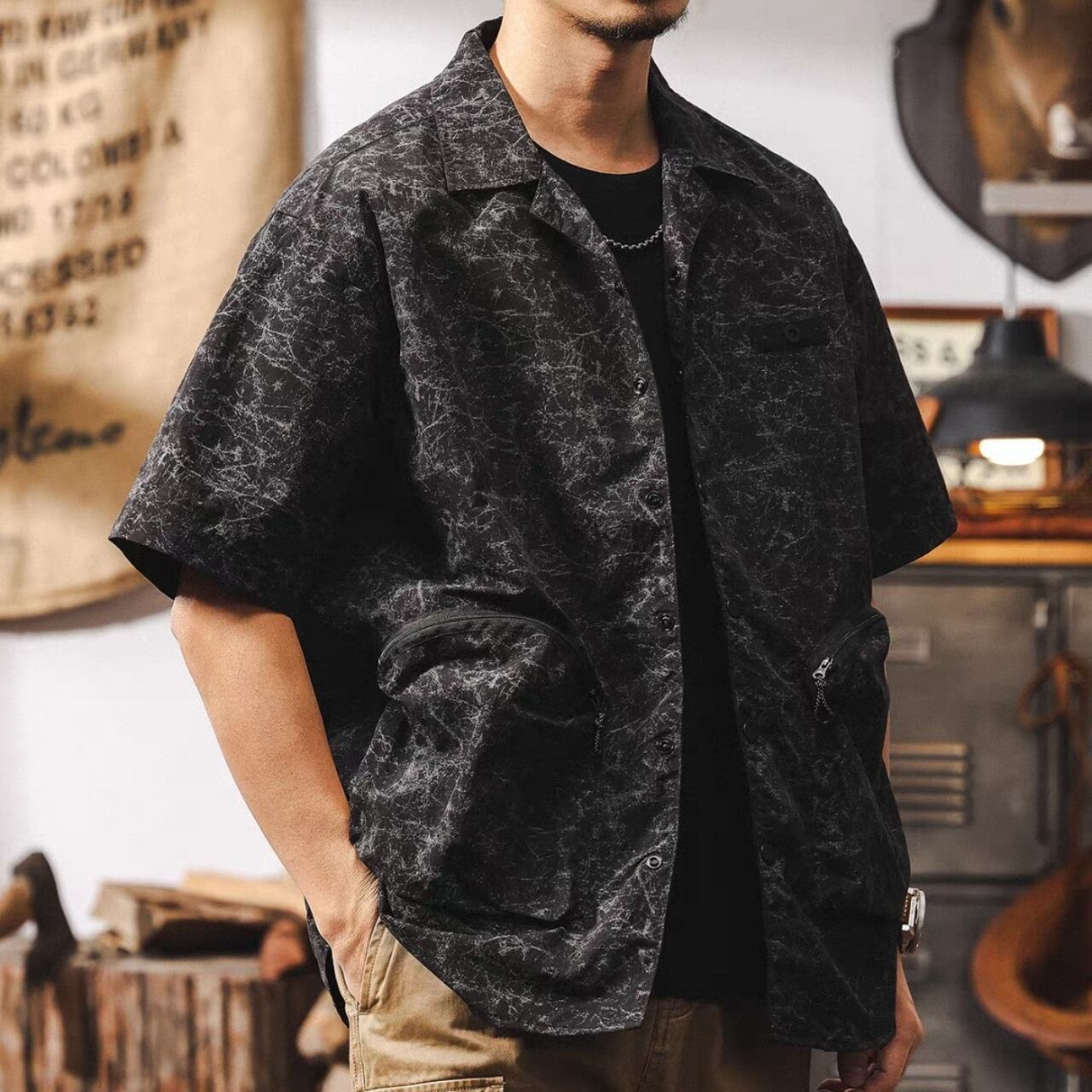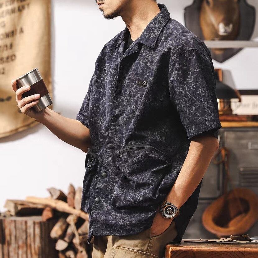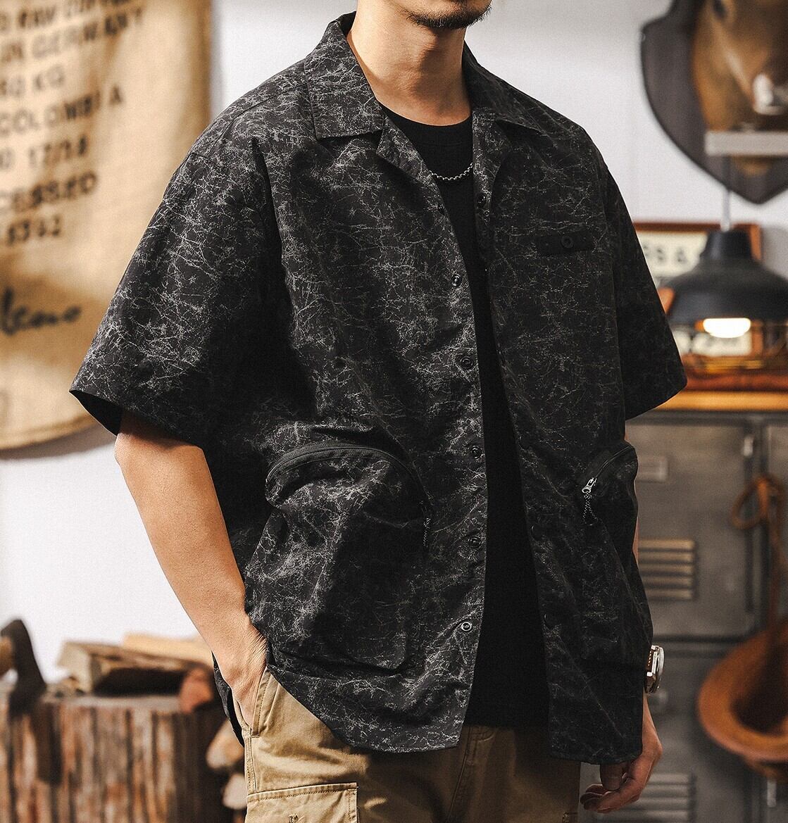 Open collar vintage double pocket shirt ( 2color )