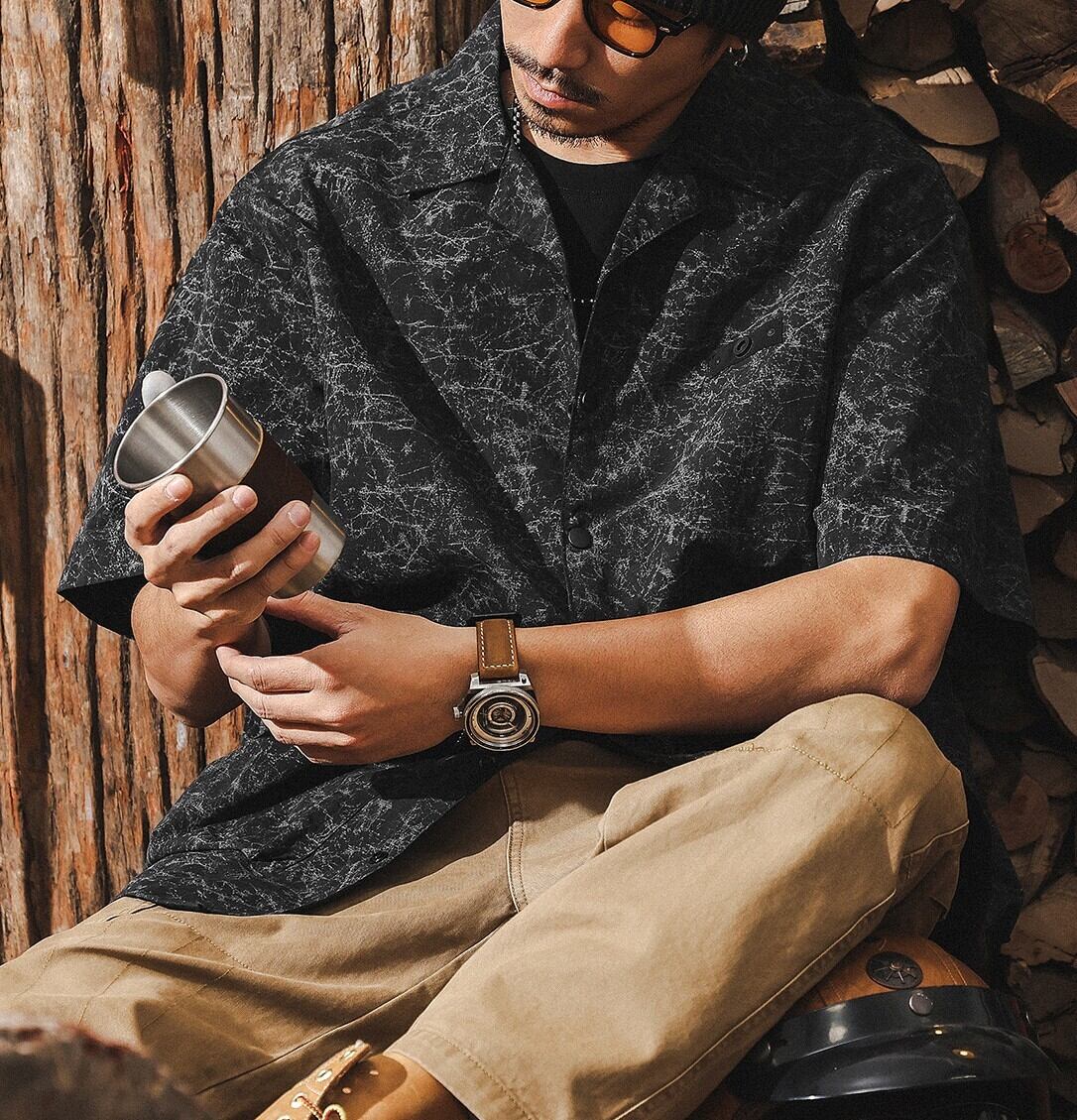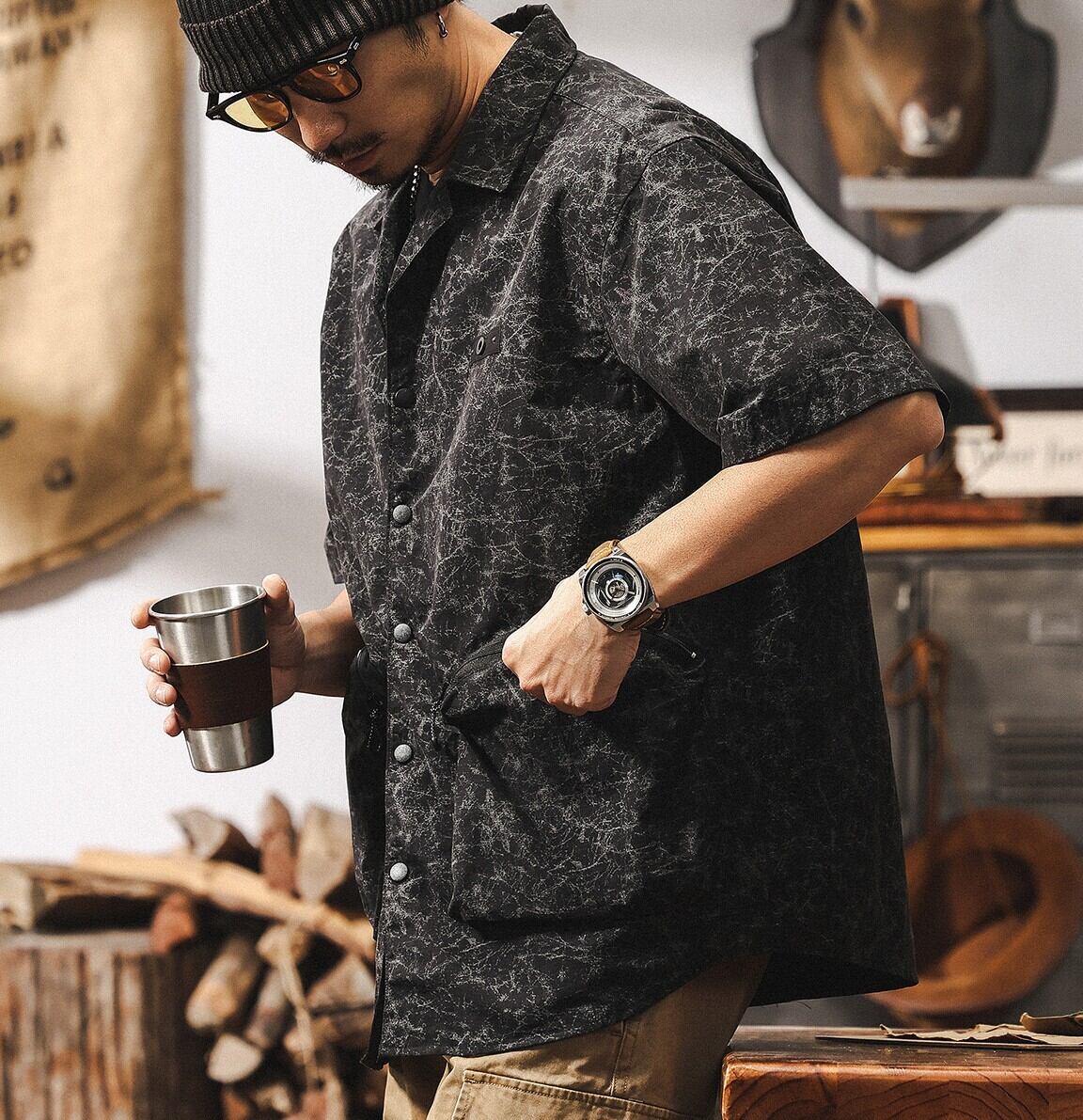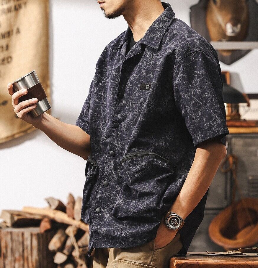 Open collar vintage double pocket shirt ( 2color )