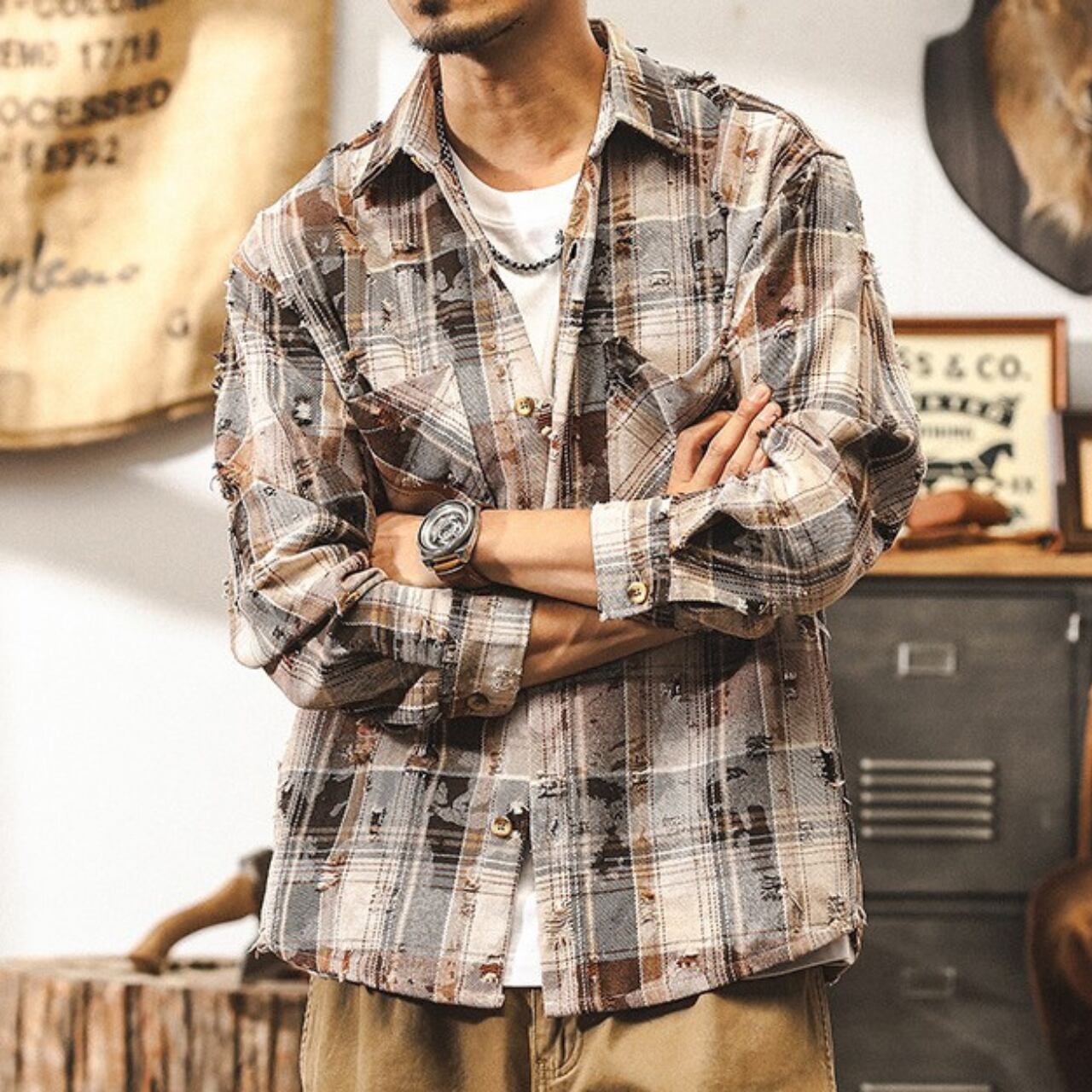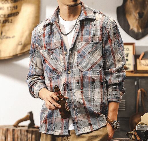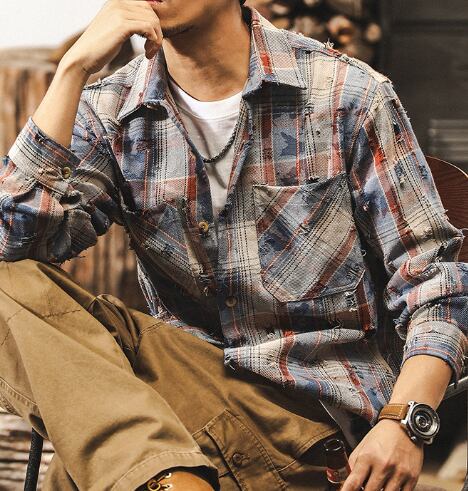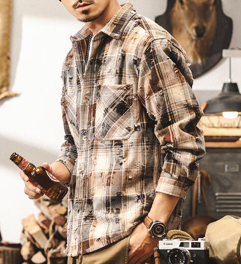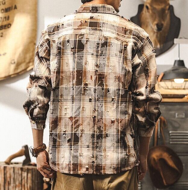 Vintage damage check shirt ( 2color )